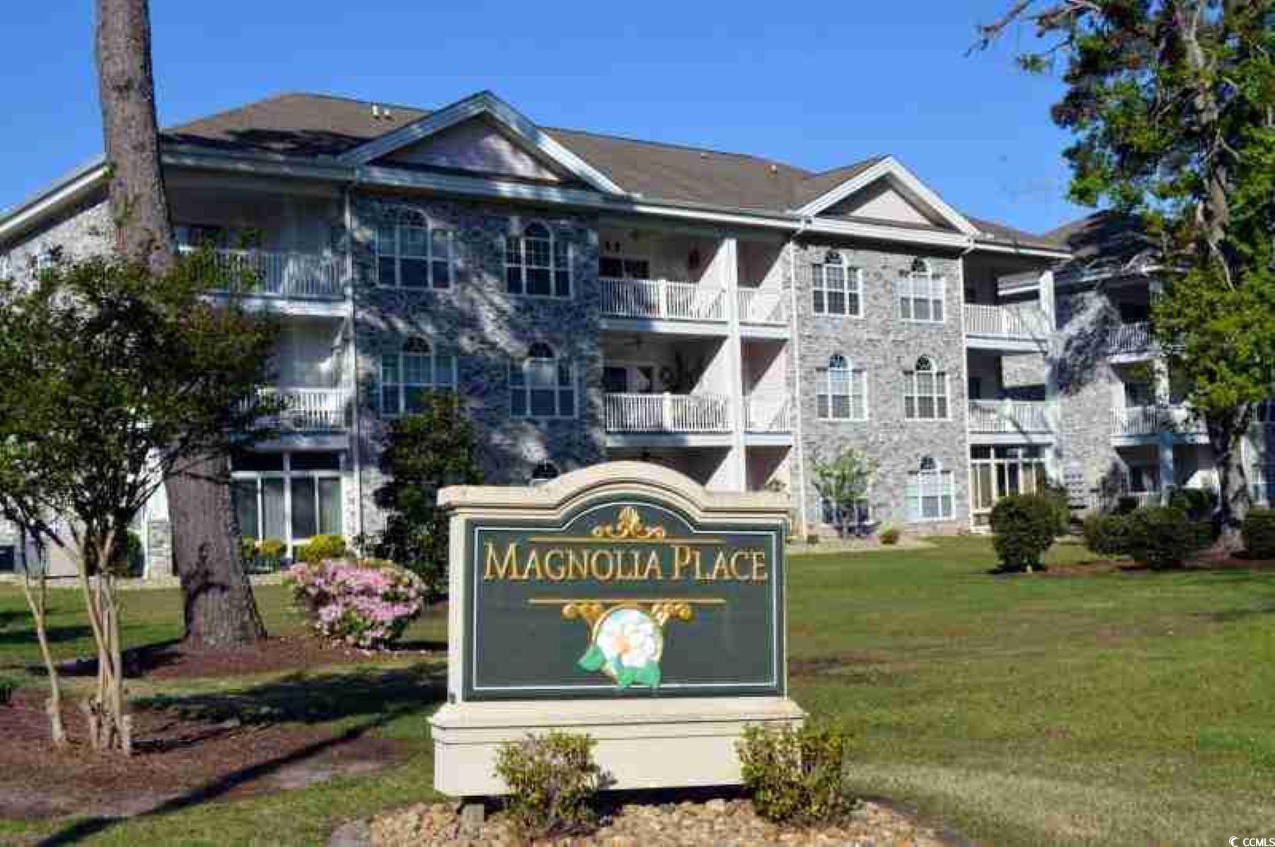 This is not your average Myrtle Beach condo. The location is perfect, offering total privacy surrounded by mature trees and a park-like setting in the heart of Myrtle Beach, in a great area between 38th and 48th Avenues. Magnolia Place is well known for its easy access to the beach, shopping, and airport. The third floor, unit #305 (the building has an elevator), is quiet and well-lit, with the great room/dining room featuring glass on three sides. The kitchen was remodeled with new cabinets (full extension/soft touch and Rev-a-Shelf pull-out organizers) and new kitchen appliances in 2020. Some other improvements are a new custom shower, a new high-boy toilet, and a new vanity. New hot water tank 2024. Perfect Pied-à-terre, retirement bungalow, or first-time buyer. Excellent investment or beach getaway, again very close to the beach, Broadway at the Beach, Grand Strand Mall, airport, and with MyrtleWood Golf course right out your back door, a perfect golf vacation home. Monthly HOA is very reasonable for what's included: water/sewer, pest control/trash removal/cable TV/ internet/building hazard insurance/ building and lawn care/elevator service/pool/parking/ and roaming security.The owner is a South Carolina licensed real Estate Agent