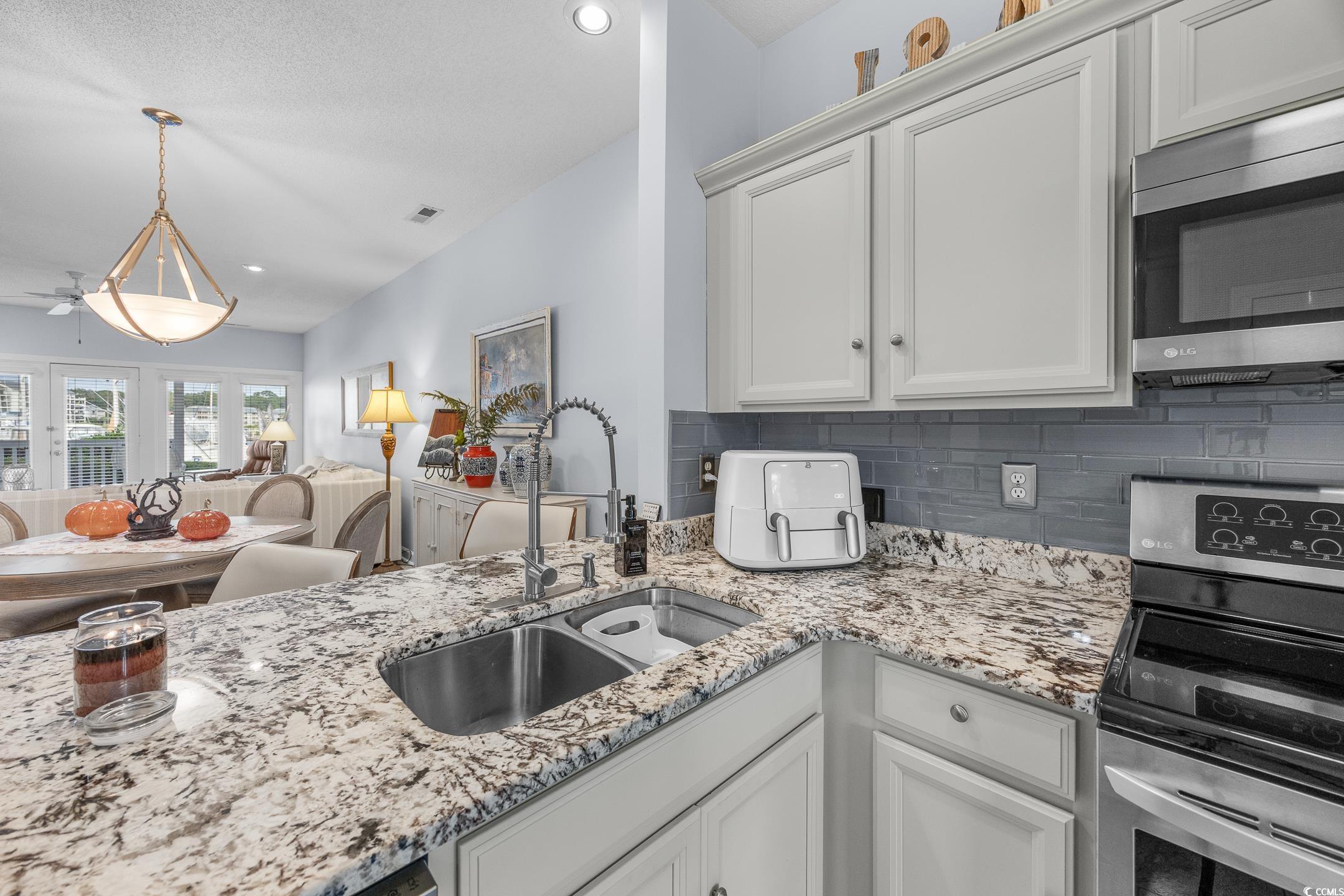 "Unbelievable" will be your first words as you enter into this and remodeled 3BR/2BA FULLY FURNISHED FIRST-FLOOR END unit on the INTRACOASTAL WATERWAY and COQUINA MARINA in the exclusive Lightkeepers Point Community, Little River, SC! PRICED TO SELL AND TURN KEY!! This gem is completely remodeled and redesigned into an open floor plan providing a stunning view of the marina harbour and ICW through tons of rear windows and doors. The kitchen features custom granite countertops and a breakfast bar extension providing an incredible water view! All new paint, crown molding, and travertine tile flooring. Master bathroom has been remodeled with ceramic tile and double vanity with granite counter top. Ceiling fans in all rooms and separate laundry room and all appliances convey with sale. No need to vacation when you're already home! Breath taking direct views of the Coquina Marina & ICW on the wrap around porch provides peaceful sunrises and sunsets as you enjoy morning coffee and maybe a glass of your favorite in the evening! The marina lights and boats provide an unbelievable tranquil peace in the evening! If you want to walk to dinner there are several restaurants on the boardwalk that surrounds Coquina Harbour Marina. Clarks Restaurant and Chop House or membership at the Officer’s Club which promotes local music artist for your entertainment. Historic Little River waterfront & Cherry Grove Beach, North Myrtle Beach are just a short drive away. Let's not forget an opportunity if you're looking for a place to dock your boat so ask about slip availability in the marina. Well, what are you waiting for? Make an appointment to preview this secret in Little River, SC!