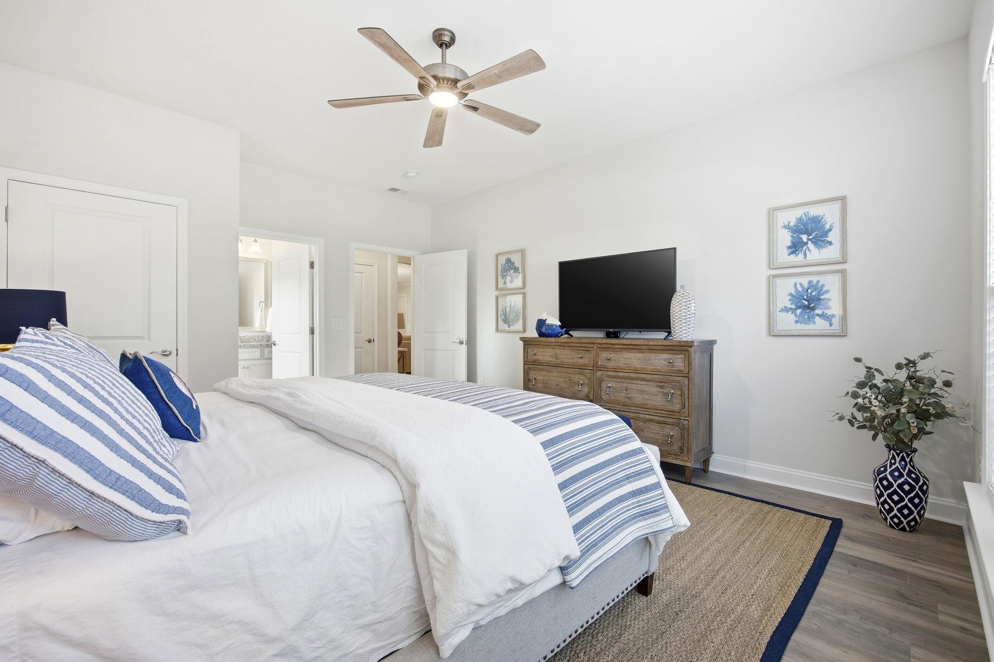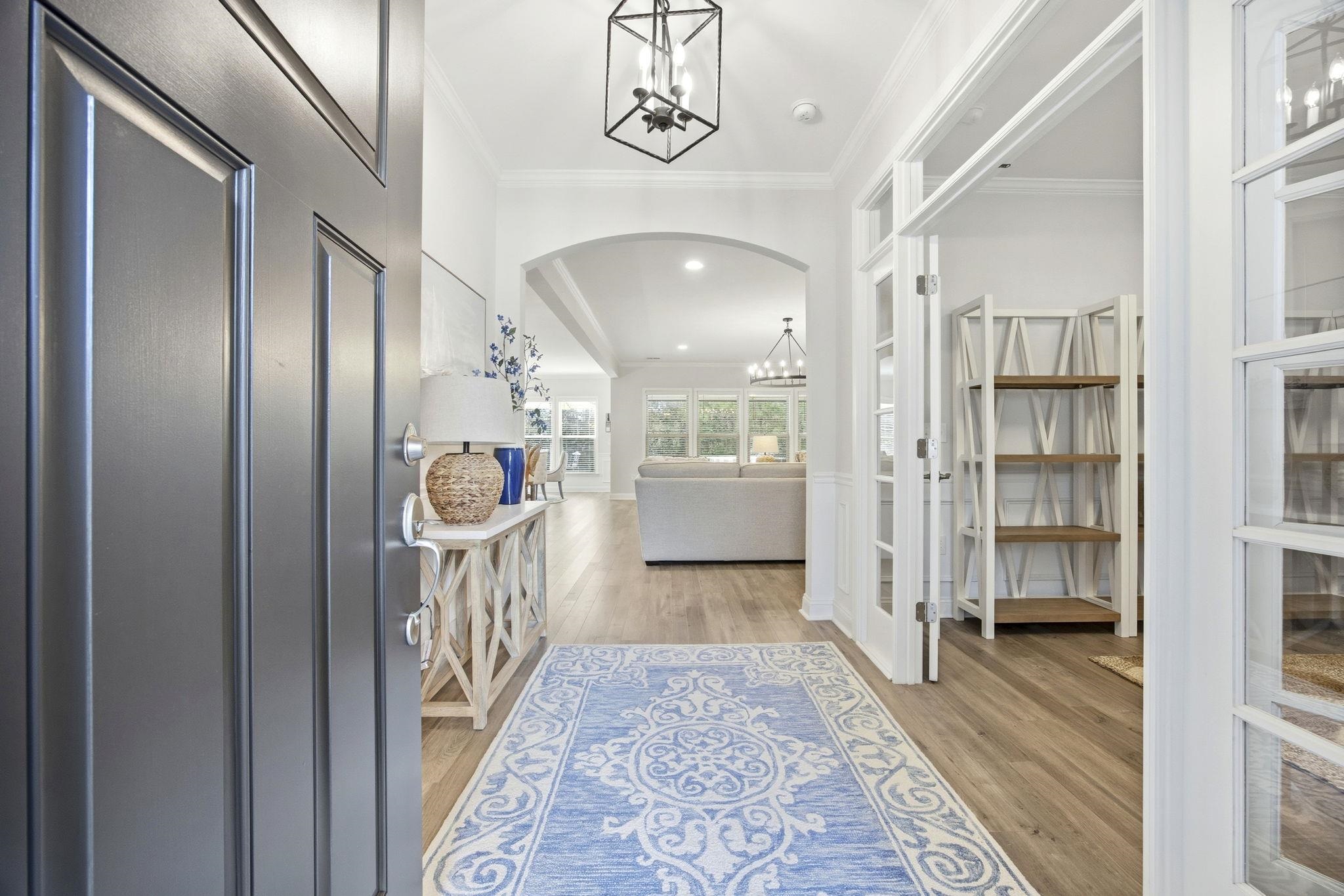 Fall in love the moment you step through the foyer of this stunning 3-bedroom, 3-bath home where thoughtful design meets everyday comfort. This well-maintained home features durable cement fiber exterior, with the exterior freshly repainted in October 2025, offering peace of mind and great curb appeal. Warm LVP flooring flows throughout, leading you into a bright, open-concept living space where a dramatic candle-style ring chandelier instantly steals the show and sets the tone for modern living. Work from home in style in the dedicated office featuring French doors and beautiful wainscoting. The spacious primary suite feels like a private retreat with a tray ceiling, large walk-in closet, and spa-inspired ensuite offering a double vanity and walk-in glass shower. A second bedroom enjoys its own ensuite bath, while the third bedroom and separate full bath provide ideal space for guests or family. The kitchen is designed to bring people together featuring a breakfast bar that doubles as an island, complete with four breakfast bar stools that convey. You'll enjoy the abundant cabinetry, a separate pantry, and a gas range with a hood. The charming dining area with wainscoting opens to a screened back porch with coffered-style trim and a ceiling fan, perfect for morning coffee or evening gatherings. Step outside to a patio and fire up the gas KitchenAid grill which conveys, while enjoying a professionally landscaped, oversized backyard on a rare half-acre lot. Most furnishings are negotiable, offering added flexibility for buyers seeking a move-in-ready opportunity. A well-appointed laundry room with custom built-in storage and a sitting bench adds even more everyday convenience. The 2-car garage plus 1 golf cart space rounds out this exceptional home. Enjoy resort-style community amenities including an extra-large pool, fire pit, and playground. This home doesn’t just check boxes, it creates a lifestyle you’ll be proud to call your own.