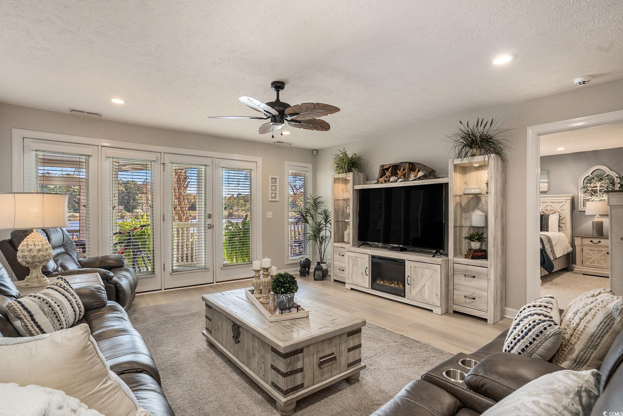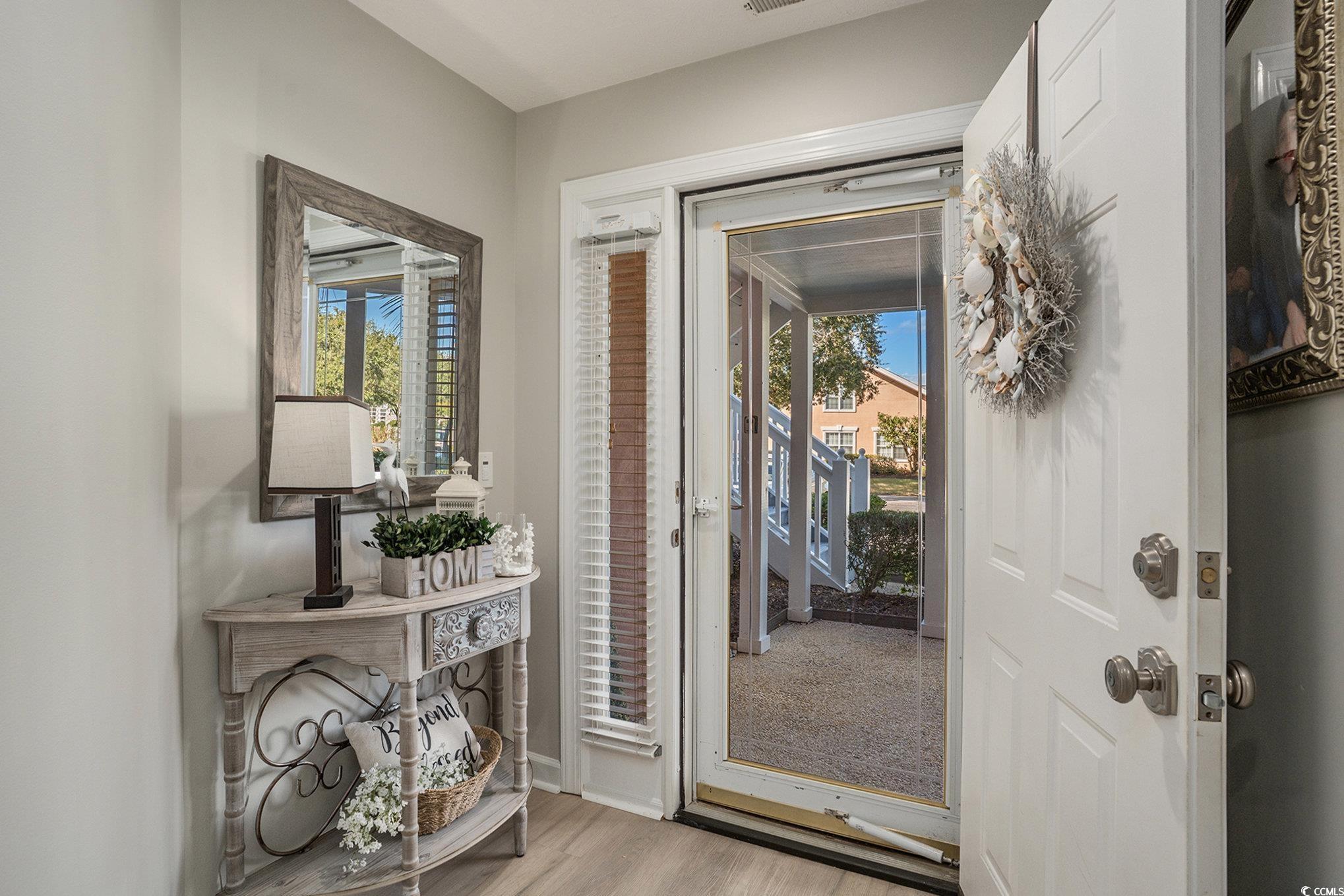 Welcome home to this beautiful coastal retreat located in the pristine community of Lightkeepers Village in Little River, home to the Governor's Lighthouse. This first floor, 2 bedroom, 2 bath condo offers stunning views of the intracoastal waterway. Step through the front door to the spacious open layout boasting a full height window wall in the great room showcasing breathtaking ICW views. Enjoy tranquility and relaxation on the screened verandah, a perfect space for entertaining and watching boats and jet skis cruise the waterway. A storage closet is also conveniently located on the porch to hold beach chairs and accessories. The beautiful open-concept floor plan is introduced by a welcoming foyer. Other features of this unit include stainless steel kitchen appliances, granite counters, eat-in breakfast bar, pantry cabinets for extra storage, separate dining space, spacious great room, tile, carpet and LVP flooring. The owner's suite faces the waterway with direct access to the screened porch. Primary bath is a split-plan bathroom offering a cultured marble double-sink vanity, walk-in closet and distinct area for the walk-in tiled shower and toilet. The private guest bedroom retreat offers ample space with a full guest bath. Dedicated oversized laundry room, side-by-side washer and dryer, upper laundry shelving and plenty of space to add more shelving or built-ins for extra storage. Neighborhood amenities include a community clubhouse and large pool situated along the intracoastal and next to the community lighthouse. Enjoy a relaxing stroll down the 2-mile-long boardwalk that wraps around both Lightkeepers and Coquina Harbor communities where you can enjoy beautiful harbor and coastal views. This community is centrally located close to the best the beach has to offer with the Little River waterfront, great for fishing, dining and festivals, or Cherry Grove for a day on the beach, shop at local restaurants, or enjoy the nightlife. Head a little farther north to Calabash known as "The Seafood Capital of the World." Make beach life your best life with this beautiful coastal condo!
