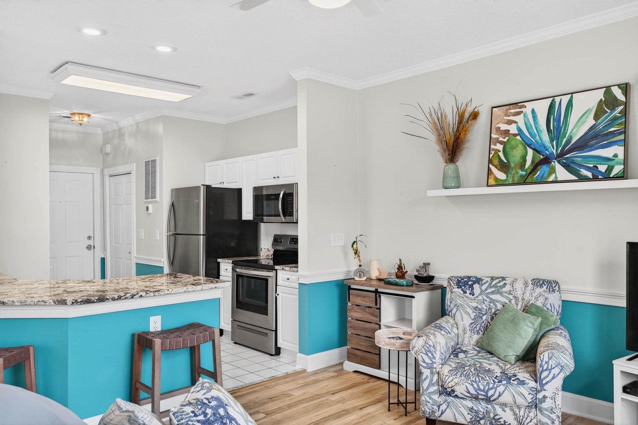 Welcome to 4773 Wild Iris Dr, Unit 5-101—an updated first-floor end-unit condo located in the highly sought-after Magnolia Place community, just minutes from the beach and everything Myrtle Beach has to offer. This bright and inviting 1-bedroom, 1-bath home features an open-concept layout with abundant natural light, enhanced by a charming arched window and coastal-inspired finishes throughout. The kitchen is equipped with granite countertops, stainless steel appliances, and a breakfast bar, while luxury vinyl plank flooring flows seamlessly through the main living areas—ideal for both relaxing and entertaining. The spacious bedroom offers a comfortable retreat, and the full bathroom has been updated with new shower and sink fixtures, lighting, and ample storage. Enjoy your morning coffee or unwind in the evening on the private porch with a partial golf course view, complete with new outdoor carpet. Conveniently located on the first floor, this end unit provides easy access and is just steps from the community pool, surrounded by beautifully maintained grounds. Magnolia Place offers a prime central location near Broadway at the Beach, golf courses, shopping, dining, and a short drive to the ocean. Whether you're seeking a primary residence, vacation getaway, or investment opportunity, this condo offers a perfect blend of comfort, convenience, and coastal living. ***Short and long term rentals are allowed!