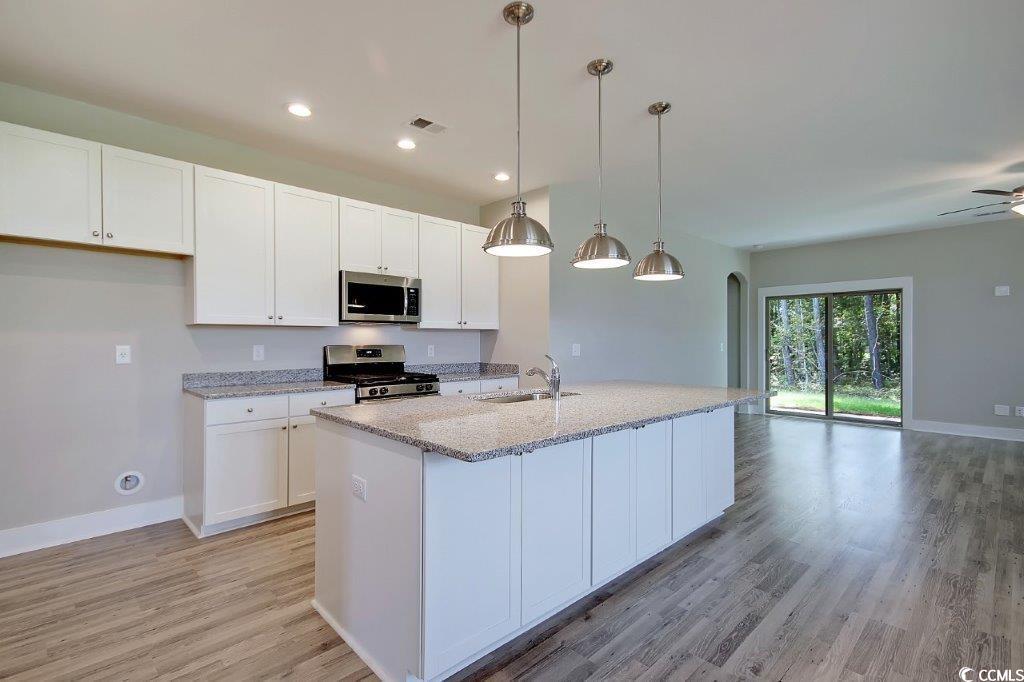 Welcome to Huckleberry Estates - where our Coastal Farmhouse Series brings a blend of charm and modern comfort to spacious half-acre homesites. Located 15 minutes from the heart of historic downtown Conway, residents can explore the Conway Riverwalk, unique local dining, and the scenic Conway Marina on the Waccamaw River. Plus, Coastal Carolina University is just a quick 20-minute drive away, making this an ideal location for homeowners seeking tranquility with easy access to local attractions. Just 40 minutes from the beaches of Myrtle Beach, Huckleberry Estates offers room to spread out, with plenty of space for storing boats, trailers, or any of life’s essentials. The Keeneland maximizes 1,890 square feet of space in a single story home. A welcoming family room is the central hub and features an eat in breakfast, over sized kitchen island and ample windows that invite an abundance of natural light into the space. 2 bedrooms are situated at the front of the home (opposite to the master suite located at the rear) with an option to have one of them be a flex space perfect for an office, den or study. **Photos are for representational purposes.**