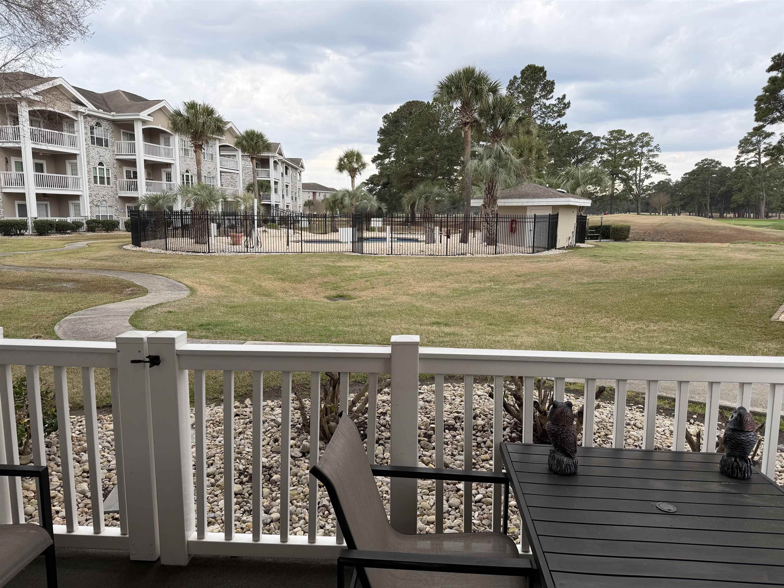 Welcome home to this golf course view condo located in the highly desirable Myrtlewood Golf Course community. Best of all, it's a first-floor end unit! This beautifully maintained unit features neutral colors, elegant crown molding, and chair-rail accents that add a touch of charm throughout the space. Modern LVP flooring throughout the unit. Fully furnished making this condo truly move-in ready. Whether you are looking for a primary residence, vacation getaway, or investment property, this unit offers excellent flexibility and appeal. Step out onto the private back porch and enjoy relaxing sunsets while overlooking the pool area and scenic golf course views. The first-floor location provides easy access and convenience, making this a rare opportunity in Myrtlewood. Don’t miss your chance to own this beautiful golf course view condo in one of Myrtle Beach’s most convenient locations!