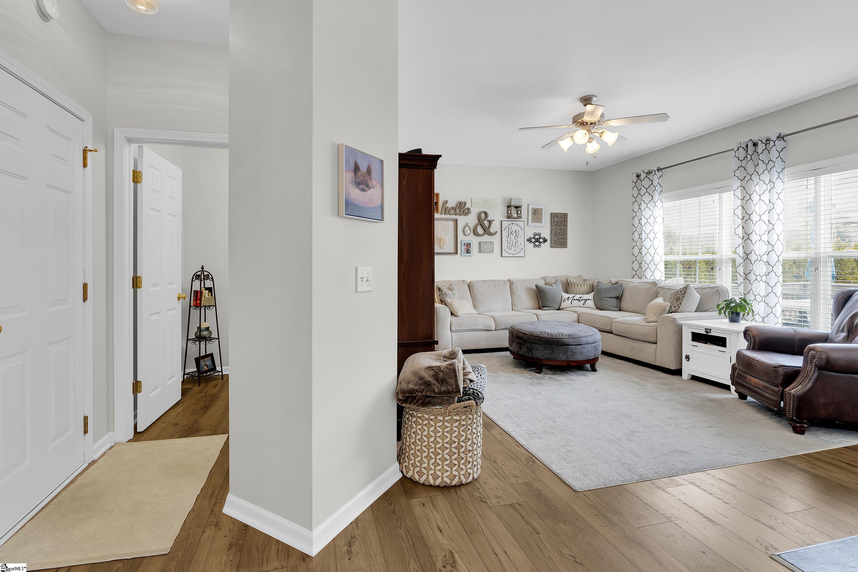 Located in the Sweetwater Hills Subdivision, this 4 BR 2.5 BA home boasts over 2300sf and is positioned on a quiet cul-de-sac lot tucked deep into the community. Zoned for sought-after schools, this home is located conveniently to I-85 making commutes to Greenville and Spartanburg a breeze. Instant curb appeal welcomes you home, along with a wonderful two-story entry that is flooded with natural light. The living room, kitchen and breakfast area flow perfectly and are anchored by a charming two-sided fireplace. This open floor plan is also highlighted with a seating nook that overlooks your expansive backyard and your 16 x 12 deck, perfect for outdoor dining and grilling. The kitchen has been upgraded with full height cabinets to the ceiling, and is highlighted by your large central island with bar seating. The formal dining room is very generously sized and accented with wainscoting trim. The first floor is rounded out by a conveniently placed powder room, with all flooring having been upgraded to luxury vinyl plank - upstairs and down, zero carpet to be found! The second level has a large master bedroom with a spacious en-suite bath with dual vanities and separate garden tub and step-in shower, along with a large custom shelved primary closet. The upstairs is rounded out by a walk-in laundry room, two secondary bedrooms with a shared hall bath, along with a large 4th bedroom that the current owner enjoys as a bonus room. The flexibility of this floor plan allows for any number of options. Sweetwater Hills is a great established neighborhood and enjoys a community gym and pool for these warm summer months that are around the corner. Schedule your private showing today!
