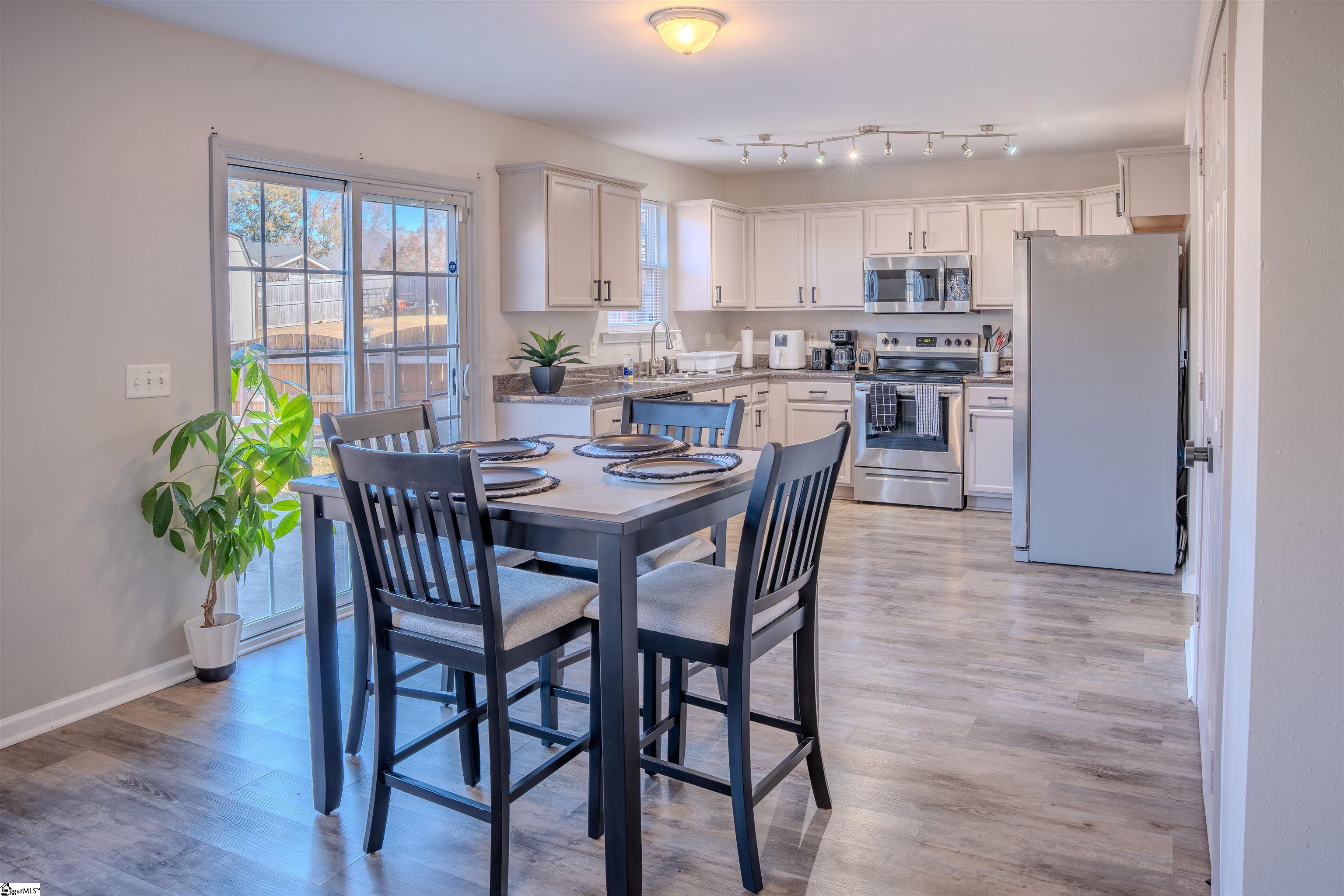 Welcome home to this charming, move-in ready two-story offering 3 bedrooms & 2.5 baths, just steps from the new Swamp Rabbit Trailhead in the heart of Fountain Inn, SC! With a desirable split floor plan & all bedrooms located on the second level for added privacy. Freshly updated with brand-new paint throughout & luxury vinyl plank flooring, this home delivers a warm, modern feel from the moment you step inside. The main level features an open, functional layout ideal for everyday living & entertaining. A convenient half bathroom on the main floor adds practicality for guests. Just off the dining area, a versatile flex space provides endless possibilities—perfect for a home office, library, playroom, or creative space. The kitchen is equipped with stainless steel appliances, ample cabinetry & flows seamlessly into the living and dining areas. Upstairs, retreat to the spacious primary bedroom featuring a walk-in closet, Jack-and-Jill dual sinks & vanities & a private en-suite bath complete with a separate garden tub — creating a relaxing escape at the end of the day. Secondary bedrooms are both generously sized & share a Jack-and-Jill bathroom with dual sinks & vanities as well. Step outside to enjoy the level, fully fenced backyard, ideal for pets, play, or entertaining & unwind around the fire pit—perfect for cozy evenings & gatherings. Additional highlights include an attached 2-car garage, security system, & a brand-new HVAC system installed Summer 2025. Best of all, this home has NO HOA. Country Chase is a FRIENDLY NEIGHBORHOOD with an active Facebook page, EXCERCISE park & WALKING TRAIL that will take you over to the new high school. Conveniently located near downtown Fountain Inn, shopping, dining, schools & major highways I-385+SC-418. 48 Brisbane Dr blends thoughtful upgrades, functional living spaces & undeniable charm—an excellent opportunity you won’t want to miss.