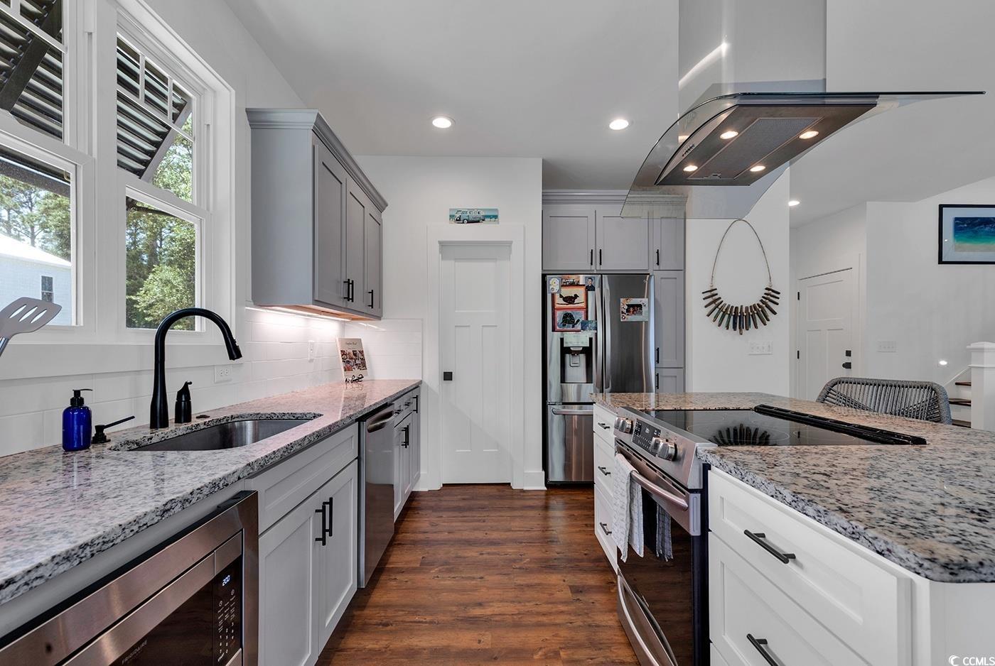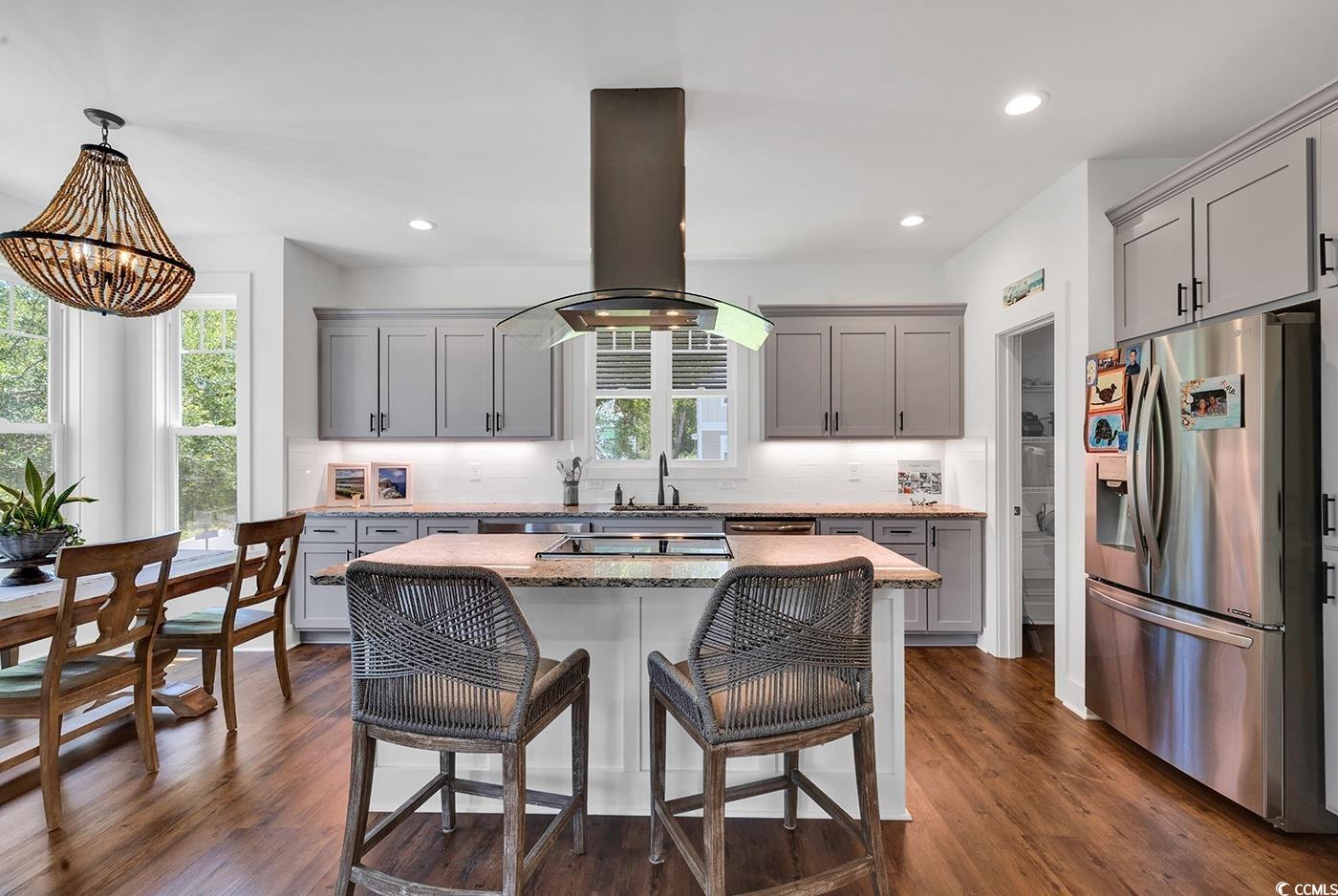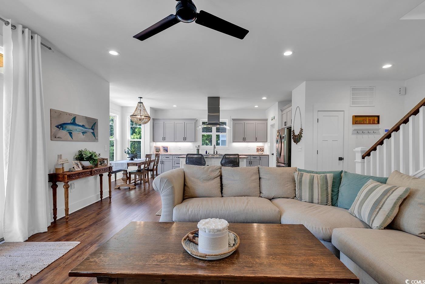Tucked away in a small enclave at the edge of the marsh, surrounded by majestic live oaks draped in Spanish moss, 48 Halfshell Court in Marshland Park offers a serene Pawleys Island retreat. This raised beach home, thoughtfully designed by a local builder, features a fully enclosed ground level with two garage doors, ample storage for kayaks and beach gear, and a shaft ready for potential elevator installation. Upstairs, the main level welcomes you with a stunning open-concept kitchen and living area—ideal for entertaining—along with porches where you can relax and enjoy the coastal breeze and the soothing rustle of the trees. With 4 spacious bedrooms and 3 full bathrooms, the home is beautifully appointed and perfectly laid out for comfort and style. Only four years old and used exclusively as a second home, this property is in immaculate condition. Don’t miss your chance to own a Pawleys Island mainland oasis—just minutes from award-winning restaurants, boutique shopping, and the pristine beaches and golf courses of Litchfield and Pawleys Island.