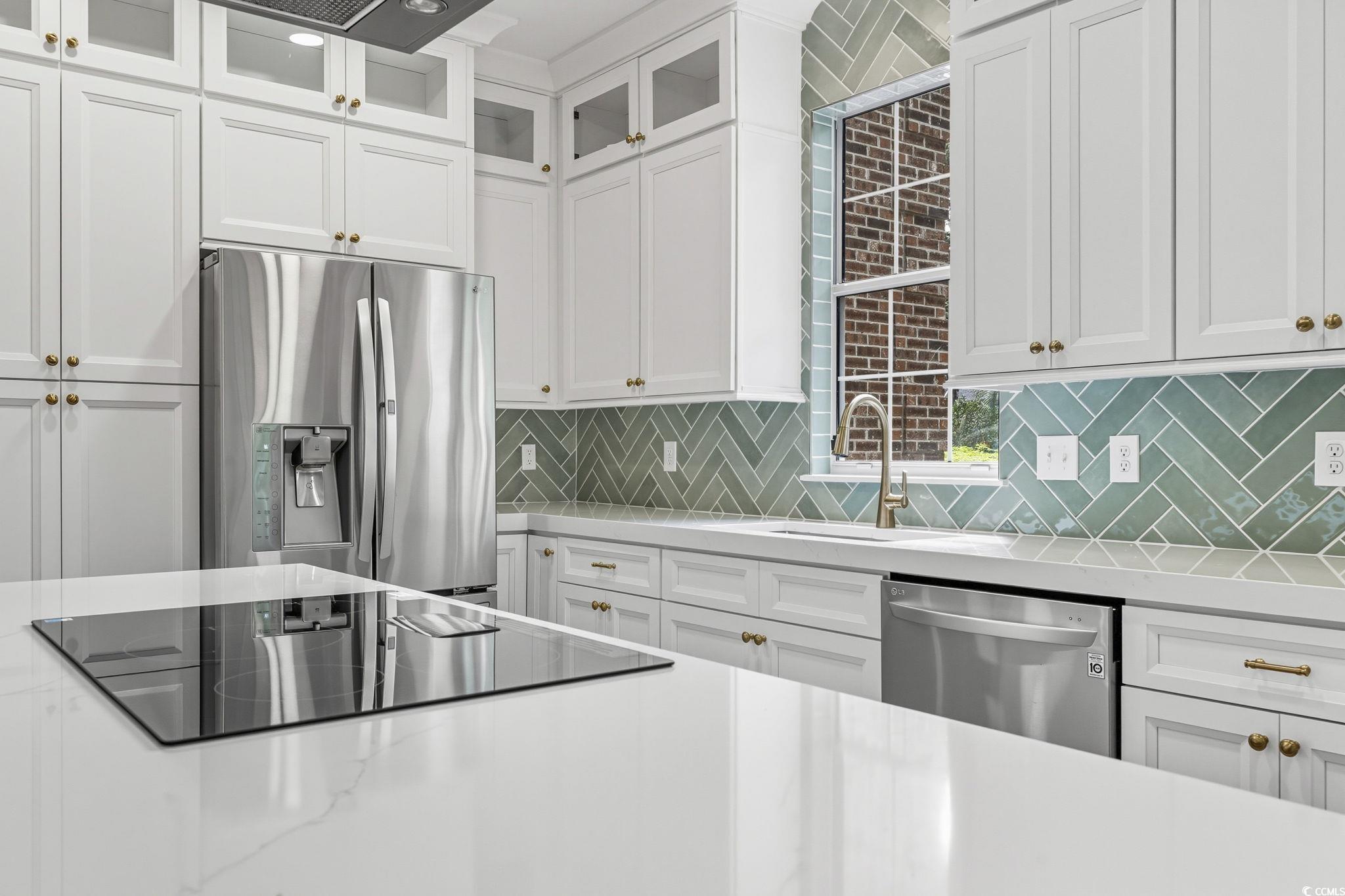 Back on the market with no fault of the sellers!! Absolutely stunning fully renovated home in Waterford Plantation. This is not your standard renovation, but a complete remodel with high end custom finishes throughout. Located on a quiet cul-de-sac end lot, this all brick and Hardi exterior home sits on almost a full quarter acre. Enter the home to soaring ceilings, exquisite trim work everywhere you look, and a very open well thought out design. A chefs dream kitchen that is sure to wow your guests. Featuring double thick quartz tops, custom cabinetry, stainless appliances, and a large island with cooktop. Beautiful first floor primary suite with vaulted ceilings and walk in closet with wood shelving. Spacious primary suite bathroom with double sinks, fully tiled shower, and quartz countertops. An additional two bedrooms and two full bathrooms located on the main floor. Both bathrooms featuring tiled showers and quartz tops. Head upstairs to a large bonus room and full walk-in closet. No carpet to be found in this home, with all Luxury Vinyl, porcelain tile floors, and wood tread stairs. Venture out back to a fully tiled covered porch with wood inlaid ceilings and built in kitchen. You are located just a short block away from the wonderful Waterford Plantation amenities. Featuring a large swimming pool, full basketball court, tennis court, two pickleball courts and a bocce court. Waterford Plantation is located in the heart of Carolina Forest with close proximity to shopping, dining, the Tanger Outlets, golf courses, and minutes from the beach. All square footage is approximate and not guaranteed.