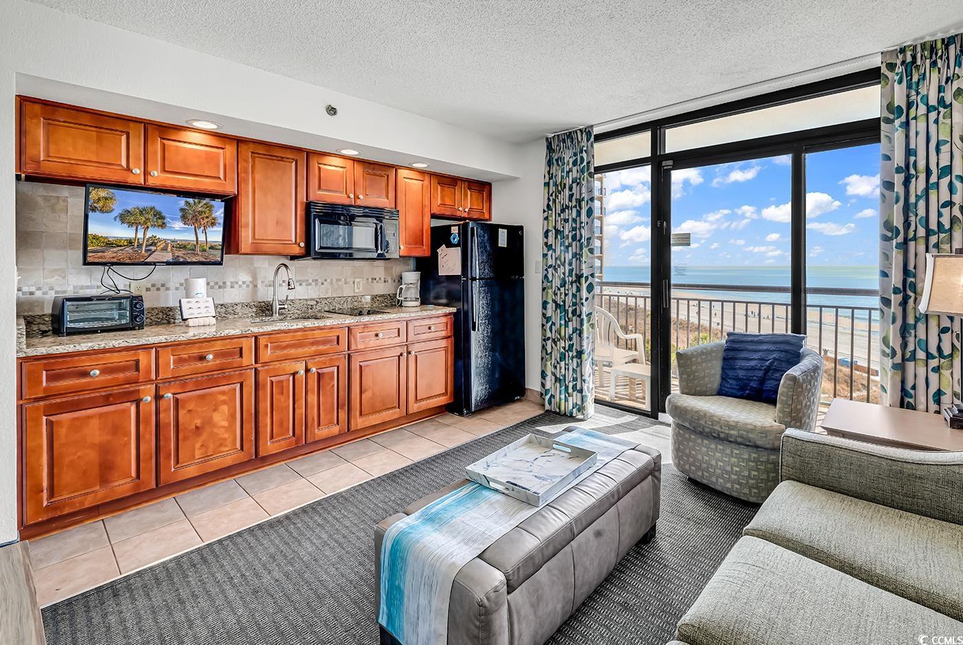 Back on the market at no fault to the seller! Well maintained one-bedroom direct oceanfront condo at Beach Cove in North Myrtle Beach. This furnished 5th floor unit has exceptional views but also plenty of updated features inside such as an updated an kitchen with tile backsplash and granite countertops, tile flooring in the living room and bathroom, flat screen televisions, and a recently replaced refrigerator in 2024. This luxurious resort offers three outdoor pools, an indoor pool, hot tubs, a game room, an onsite bar and grill, and immaculate landscaping. Beach Cove is located close to Barefoot Landing, Tanger Outlets, plenty of restaurants, attractions, and more! Schedule a showing today!