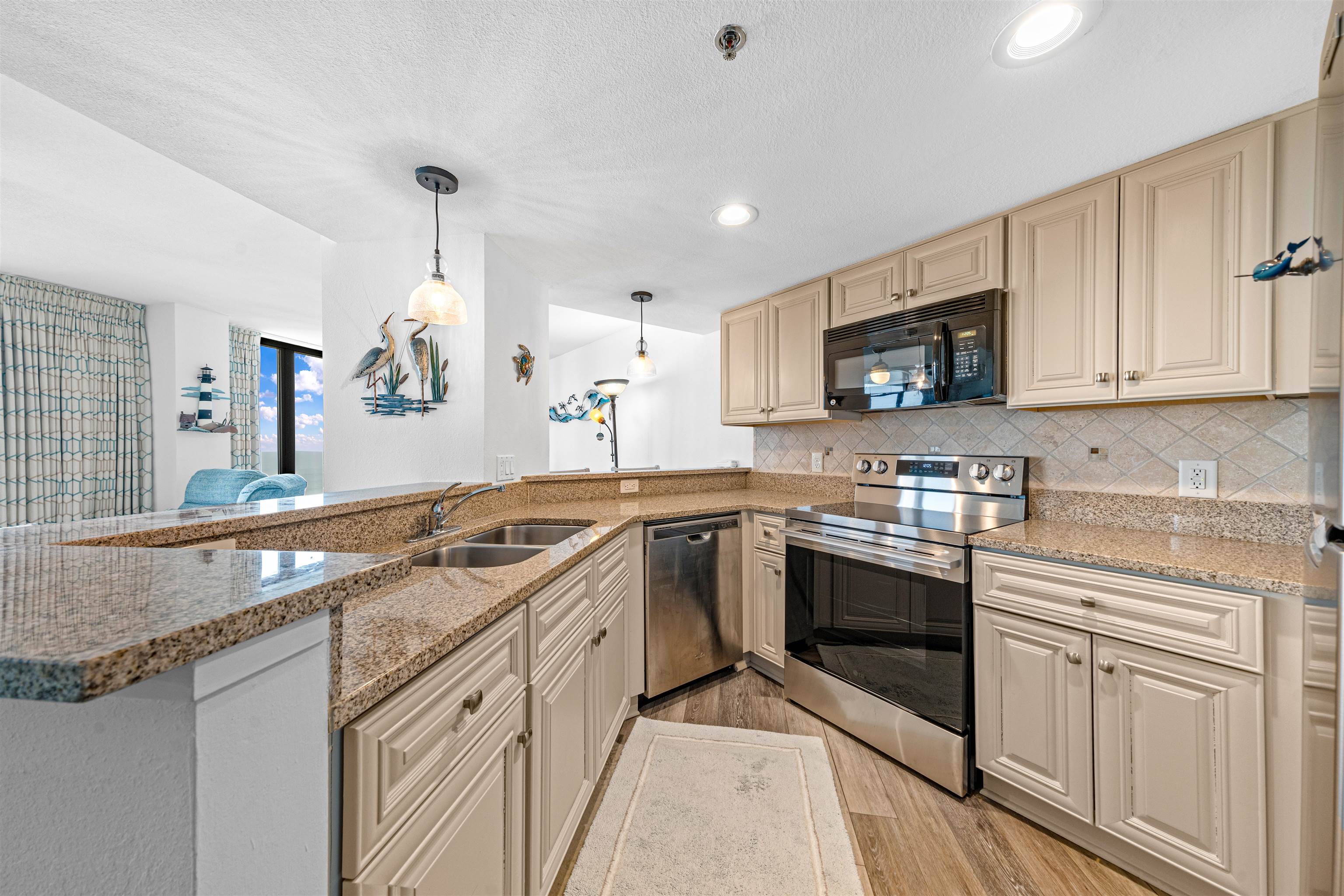 Wake up to endless ocean views in this stunning two-bedroom, two-bath direct oceanfront condo located at the highly sought-after Beach Cove Resort in the desirable Windy Hill section of North Myrtle Beach. This beautifully designed residence features a rare and spacious floor plan with floor-to-ceiling windows throughout, flooding the space with natural light and delivering breathtaking panoramic views of the Atlantic from nearly every room. Step out onto the oversized private balcony, the perfect spot to enjoy your morning coffee while watching spectacular sunrises, dine alfresco, or unwind to the soothing sound of waves just below. Inside, the bright open-concept layout seamlessly connects the living, dining, and kitchen areas, each thoughtfully positioned to maximize the oceanfront setting. This larger two-bedroom floor plan offers approximately 1,100 heated square feet and features luxury vinyl plank flooring throughout, granite countertops, and a custom tile shower. The primary bedroom, living room, and dining area all boast floor-to-ceiling windows, creating an expansive, airy feel that lives even larger than its square footage. Both bedrooms are generously sized with ample closet space and well-appointed bathrooms, making this property ideal as a primary residence, vacation retreat, or high-performing investment. Beach Cove Resort offers some of the most desirable amenities in North Myrtle Beach, including nearly a dozen indoor and outdoor pools, a restaurant, video arcade, racquetball court, and more. Enjoy a cocktail on your balcony, grab dinner downstairs at the on-site restaurant, or take a short stroll to local favorites like Hamburger Joe’s or Joe’s Bar & Grill or all that Barefoot Landing has to offer. Conveniently located near golf, shopping, dining, and entertainment, this oceanfront gem delivers the ultimate coastal lifestyle. This is a vacation home for the seller, not a rental unit. It has a brand-new LG stove (purchased Dec 2025) and Refrigerator/Freezer (Aug 2023 with 5 additional year warranty). New kitchen faucet (Jan 2026). New bed and dresser (never used) in the guest bedroom, less than three-year-old living room and deck furniture (couch, chairs, end tables, and deck furniture). All measurements, features, and figures are approximate and not guaranteed. It is the responsibility of the buyer to verify.