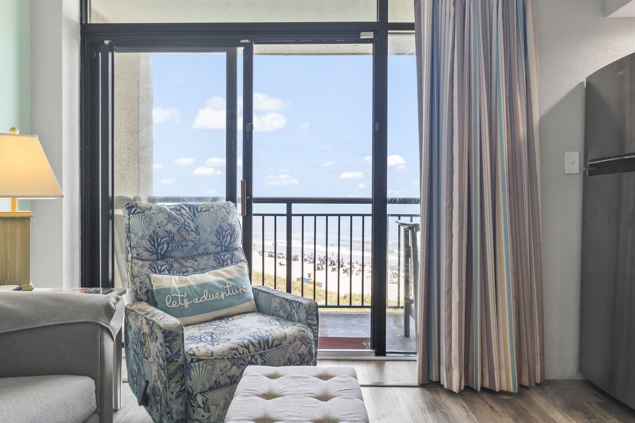 Welcome to your fully renovated, head-to-toe oceanfront sanctuary at 4800 S. Ocean Blvd #520 in North Myrtle Beach's coveted Beach Cove Resort! This stylish 1-bedroom, 1-bath condo sleeps six comfortably with two queen beds and a sleeper sofa, making it the perfect family retreat. Professionally remodeled in 2023, it features durable and beautiful vinyl flooring throughout, sleek solid surface countertops, and modern finishes that blend comfort with coastal charm. Step outside to enjoy resort-style living with a heated outdoor pool, hot tubs, a tropical pool deck, plus an indoor pool, lazy river, and sauna for year-round relaxation. Stay active with a game room, fitness center, and racquetball court just steps away. Whether you're sipping morning coffee with breathtaking ocean views or grilling at the oceanfront bar, this turnkey condo offers more than a getaway- it's your dream lifestyle by the sea. Don't miss the chance to own one of the finest units in Beach Cove! Note: The property has already been appraised for the sale price