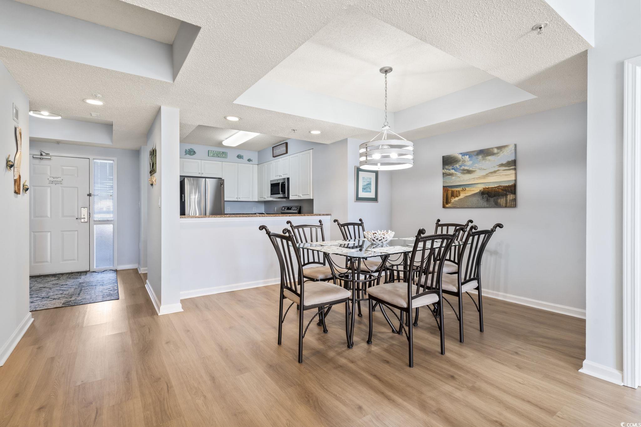 Step into the open-plan living space where light floods in through full-height glass sliding doors opening to a generous balcony overlooking the gorgeous pool and intracoastal waterway. The decor is upscale yet relaxed with soft coastal tones. This fully furnished beautiful condo boasts 3 bedrooms, 3 full baths with brand new appliances, flooring and paint. Located in the heart of the popular Barefoot Landing in North Myrtle Beach, convenient to restaurants, shopping, the famous Alabama Theatre, and so much more! Golf Carts are allowed, so you can conveniently get to all attractions, shopping, etc.. without having to gas up your car. Come enjoy the coastal lifestyle in this amazing and upscale condo community! *square footage is taken from public records*