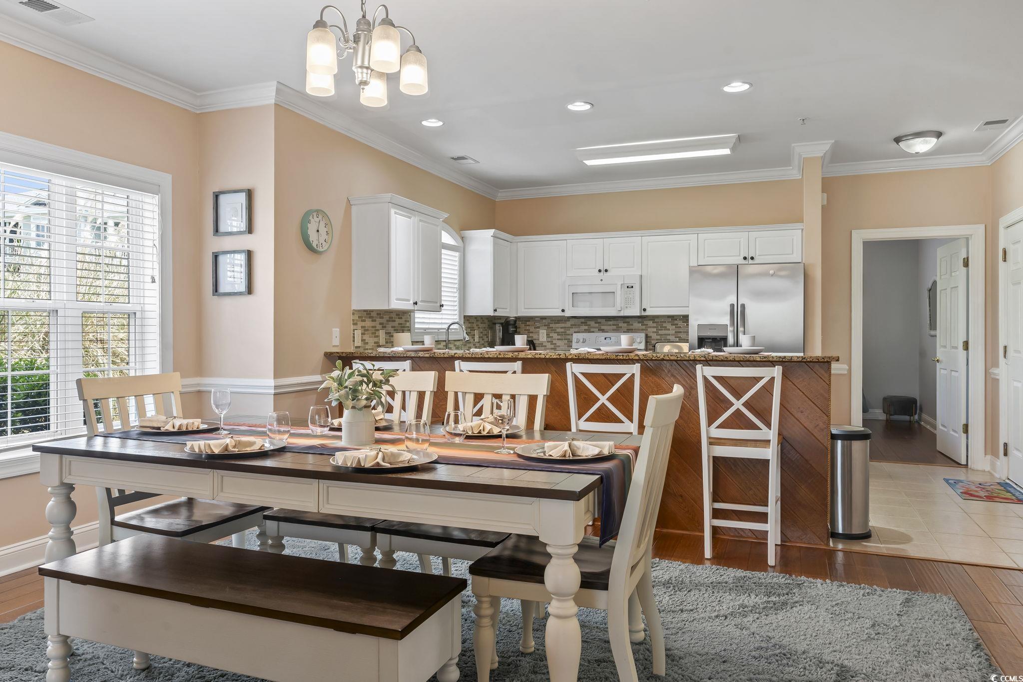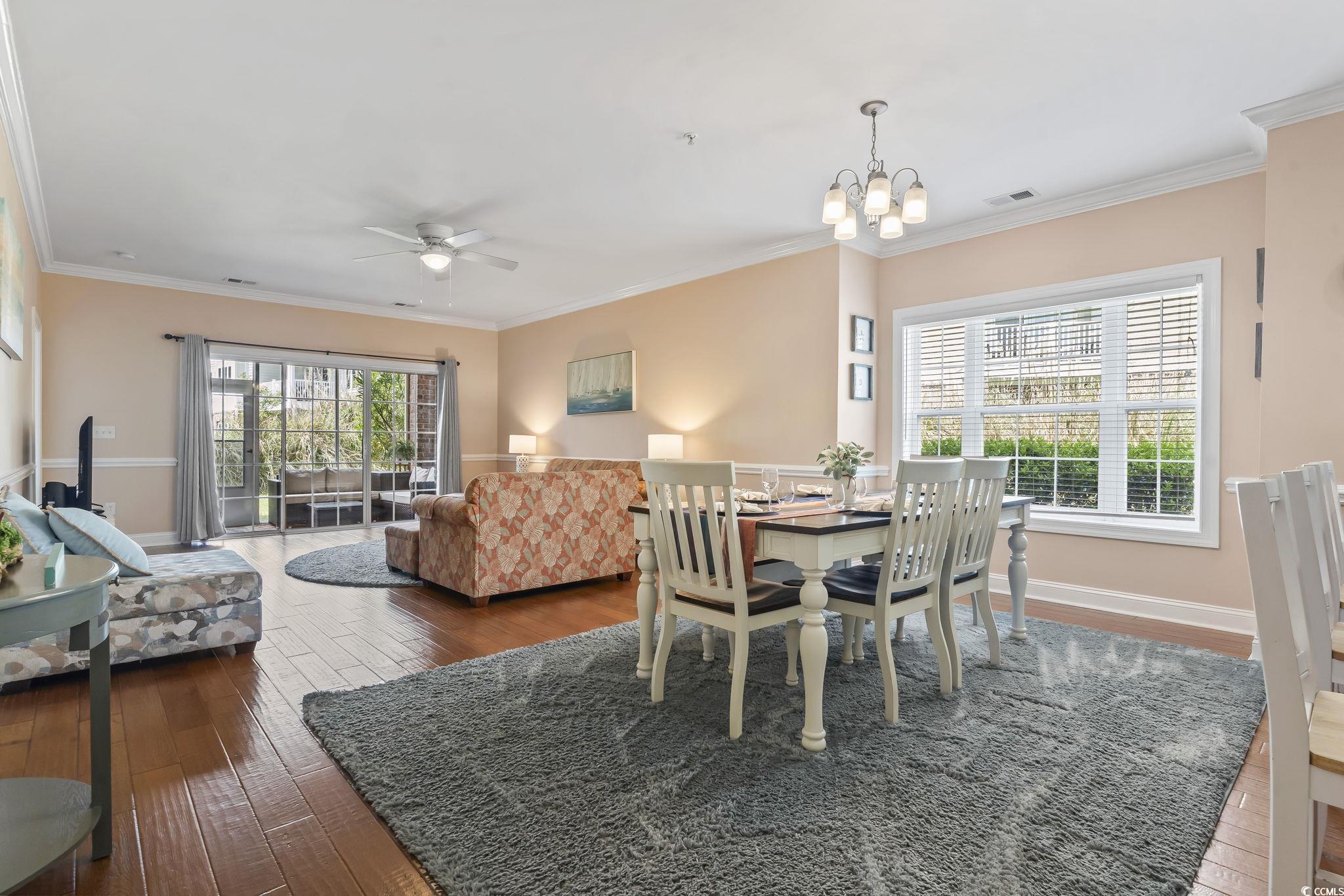 Attention Golfer & Beach Lovers!!! This tastefully updated and fully furnished 3-bedroom, 2-bathroom FIRST FLOOR CORNER END UNIT is your opportunity to own a turnkey condo in one of the most desirable and convenient locations in Myrtle Beach. Just a 5-minute drive to the ocean, this spacious unit blends comfort, style, and coastal living all in one. This meticulously kept unit has New HVAC w/ ultra violet light air/mold protection system, new stainless steel refrigerator & patio furniture set. The natural light pours in, accentuating the luxury vinyl plank flooring, fixtures, and chic coastal look throughout. Relax in the spacious living room which extends out to a fully screened in porch for entertaining guests.The kitchen is outfitted w/ granite countertops, tile backsplash, all appliances and opens to the dining area, making everyday living and hosting a breeze. Whether you're looking for a primary residence, vacation getaway, or investment property, you'll love being in Magnolia Place East, a golf course community known for its peaceful setting and proximity to all the best of the Grand Strand. You're just minutes from sandy beaches, top-rated golf courses, premier shopping, world-class dining, and Broadway at The Beach. With Myrtle Beach International Airport only 15 minutes away, getting here - and enjoying every moment - is easy. Don't miss your chance to own this unit in the heart of Myrtle Beach. Schedule your showing today and experience coastal living at its finest!