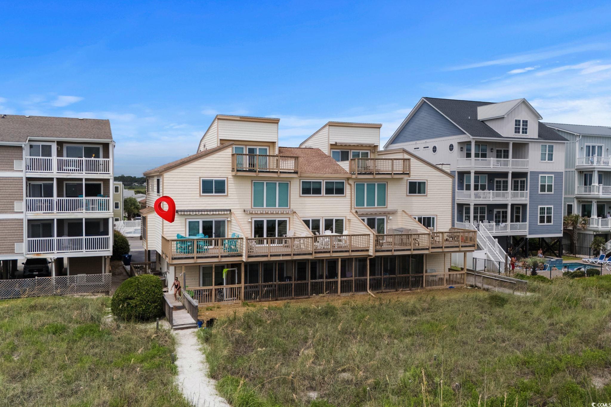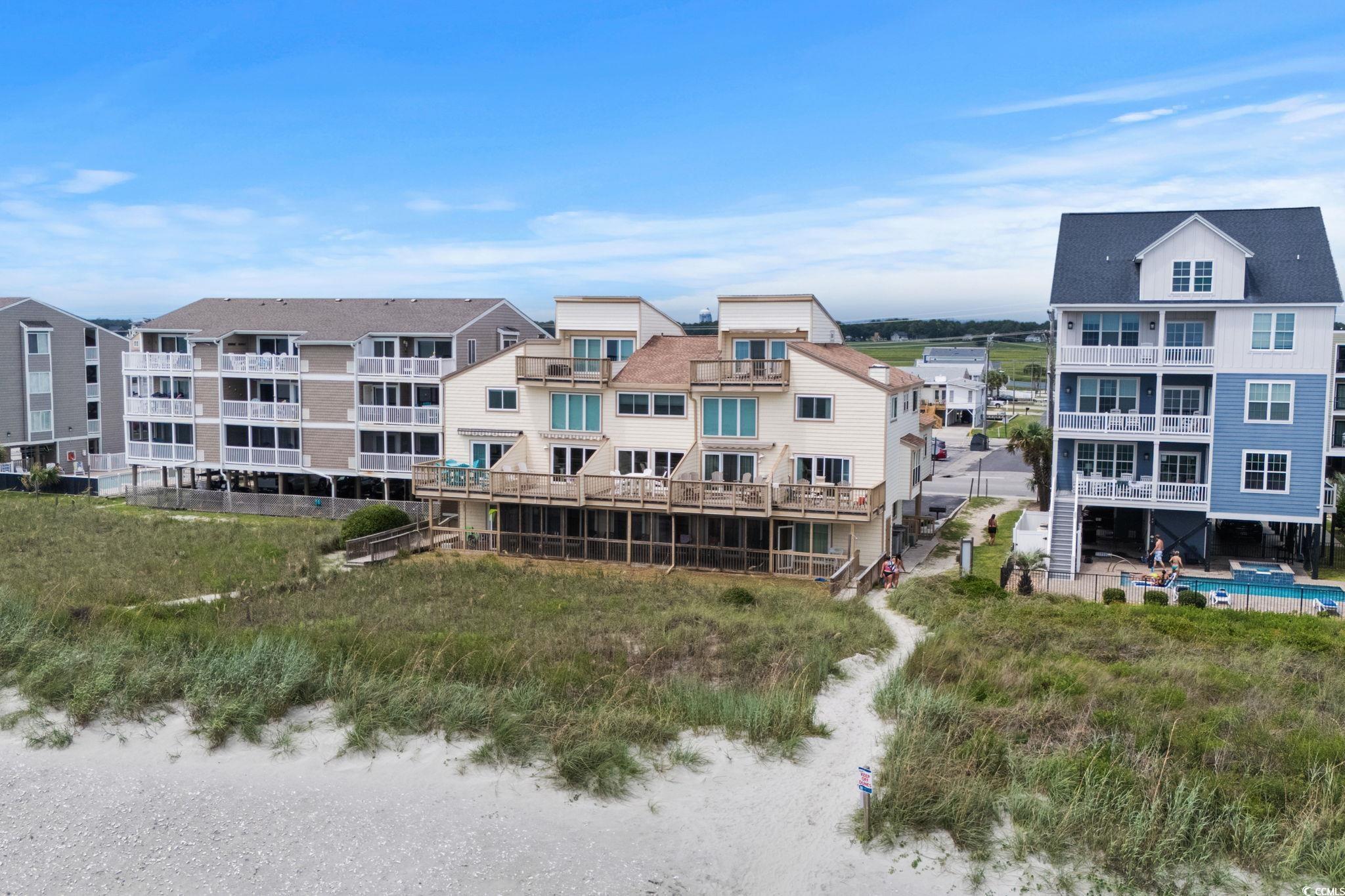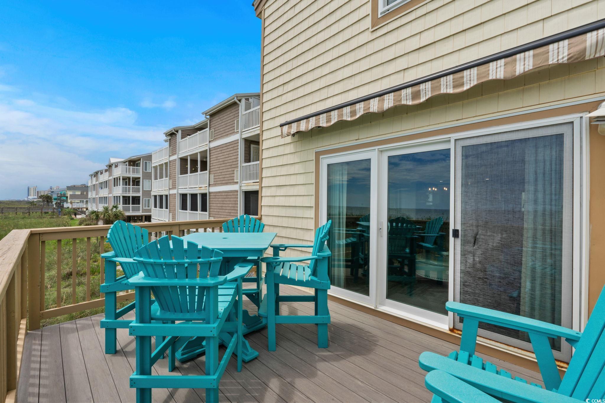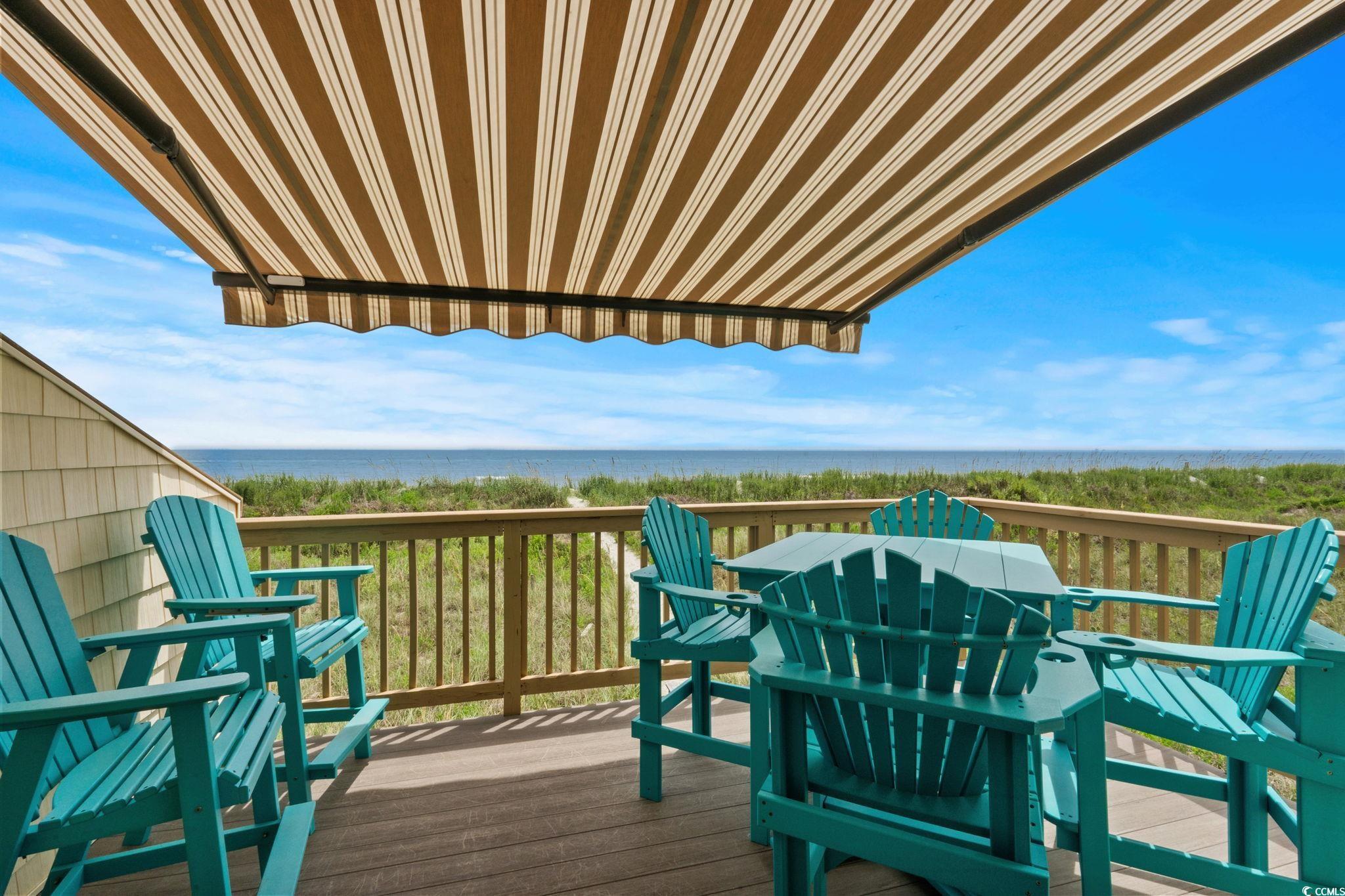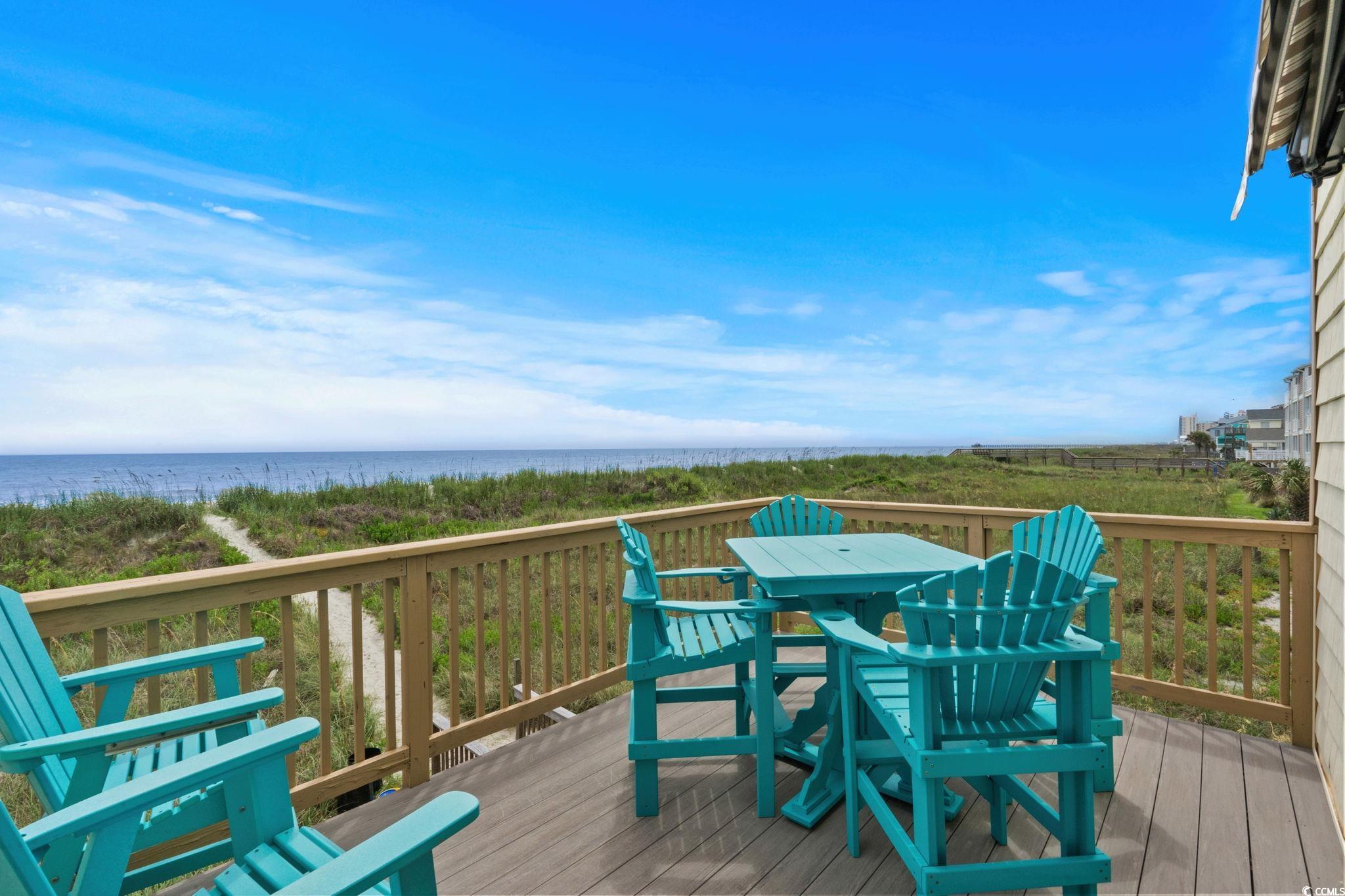 Are you looking for a small complex that only has seven units in the building? This is what you have been waiting for. A DIRECT OCEANFRONT three bedroom three bath furnished townhouse style unit in the lovely Cherry Grove area of North Myrtle Beach. This unit has been used only as a primary residence and offers every upgrade imaginable. The homeowners have completely custom remodeled this unit and have utilized every bit of space you could imagine. The kitchen features custom kitchen cabinets with custom pull out drawers, spice drawer, stainless steel appliances (new refrigerator this year), tiled backsplash, corian countertops and more. Dining room features hurricane resistant windows and custom trim that were just added this year. As you walk up to the second level, you will enter in into the master bedroom that has a gorgeous view of the Atlantic Ocean. The master bathroom features a custom oversized shower with luxury showerheads and a heavy duty glass door. The master bedroom also offers THREE nice size closets. The entire unit was just freshly painted this year and has a central vacuum system throughout. Be sure to notice the luxury vinyl plank flooring as soon as you enter the unit. HVAC is only a year new, hot water heater three years new, new sliding glass door and master bedroom windows only five years new. Sit on the private deck which features composite deck flooring and a retractable awning with a wind sensor and watch the dolphins all while enjoying the gorgeous view of the Atlantic Ocean.
