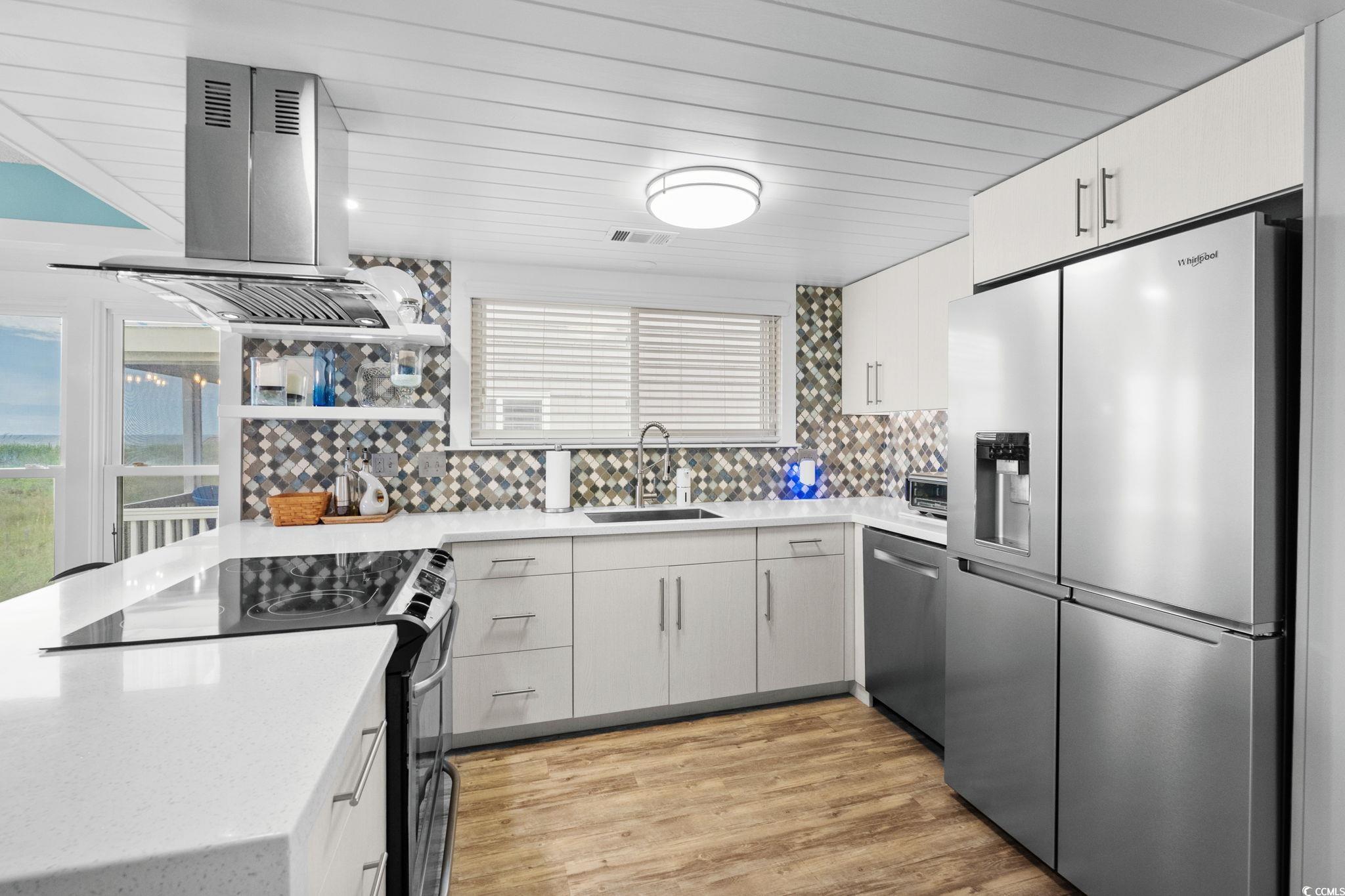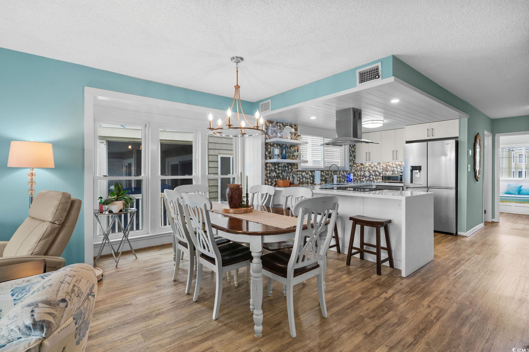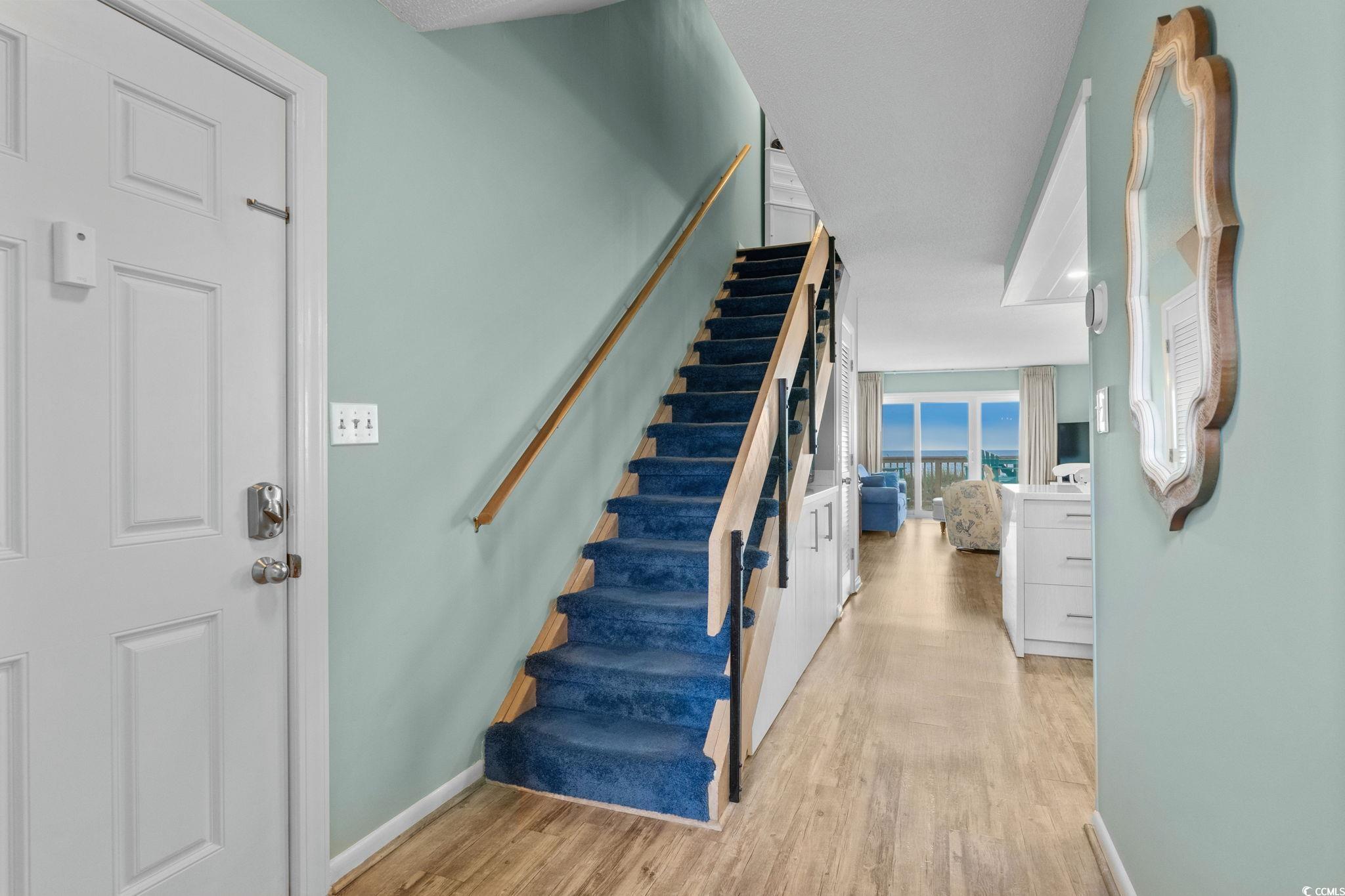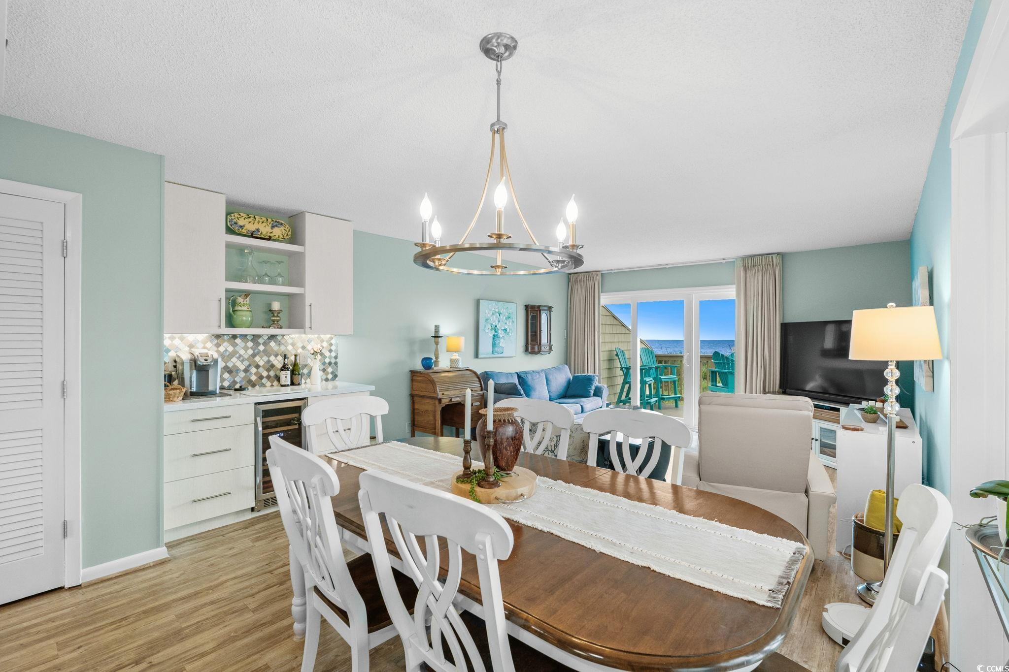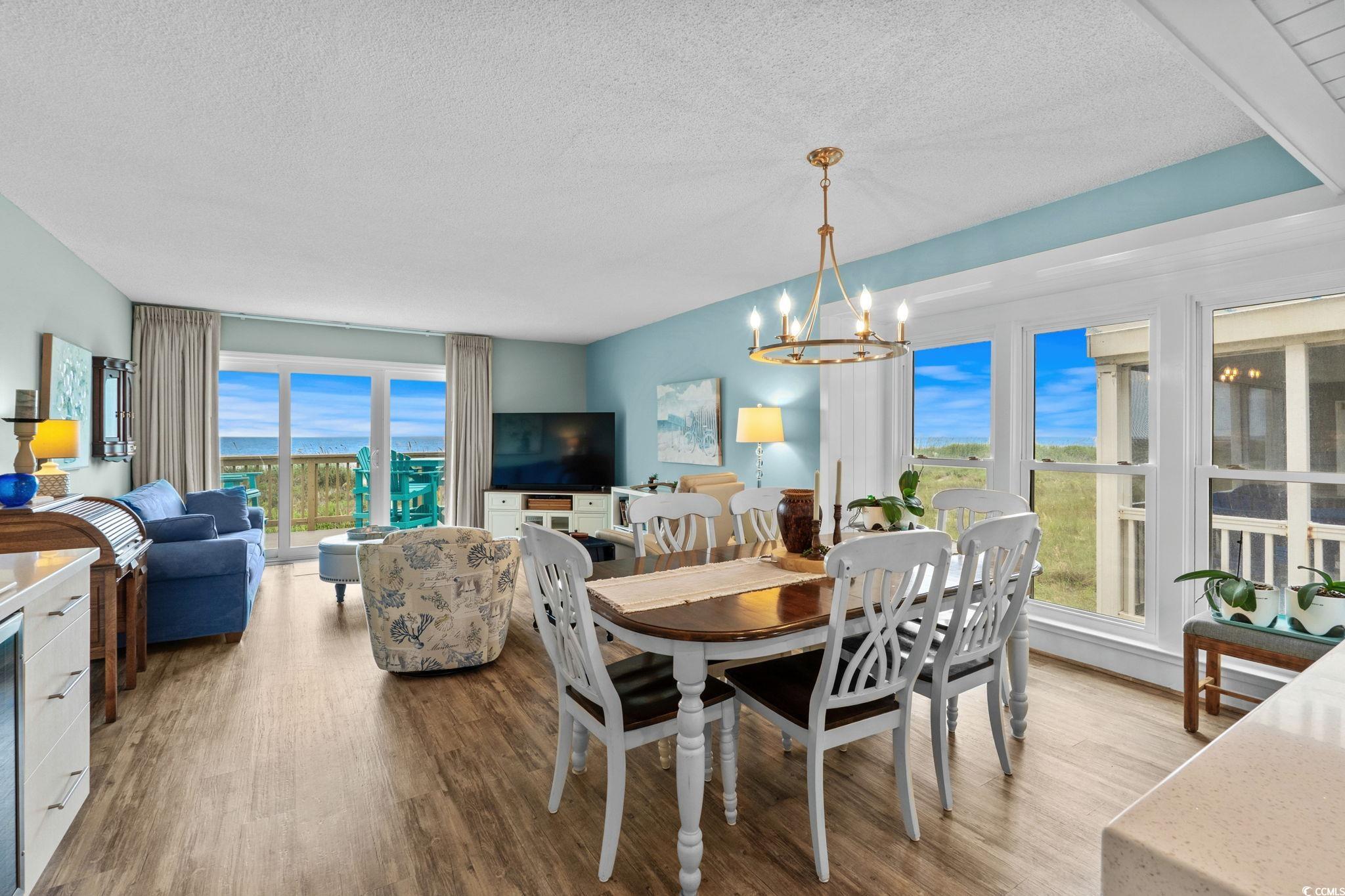 Are you looking for a small complex that only has seven units in the building? This is what you have been waiting for. A DIRECT OCEANFRONT three bedroom three bath furnished townhouse style unit in the lovely Cherry Grove area of North Myrtle Beach. This unit has been used only as a primary residence and offers every upgrade imaginable. The homeowners have completely custom remodeled this unit and have utilized every bit of space you could imagine. The kitchen features custom kitchen cabinets with custom pull out drawers, spice drawer, stainless steel appliances (new refrigerator this year), tiled backsplash, corian countertops and more. Dining room features hurricane resistant windows and custom trim that were just added this year. As you walk up to the second level, you will enter in into the master bedroom that has a gorgeous view of the Atlantic Ocean. The master bathroom features a custom oversized shower with luxury showerheads and a heavy duty glass door. The master bedroom also offers THREE nice size closets. The entire unit was just freshly painted this year and has a central vacuum system throughout. Be sure to notice the luxury vinyl plank flooring as soon as you enter the unit. HVAC is only a year new, hot water heater three years new, new sliding glass door and master bedroom windows only five years new. Sit on the private deck which features composite deck flooring and a retractable awning with a wind sensor and watch the dolphins all while enjoying the gorgeous view of the Atlantic Ocean.