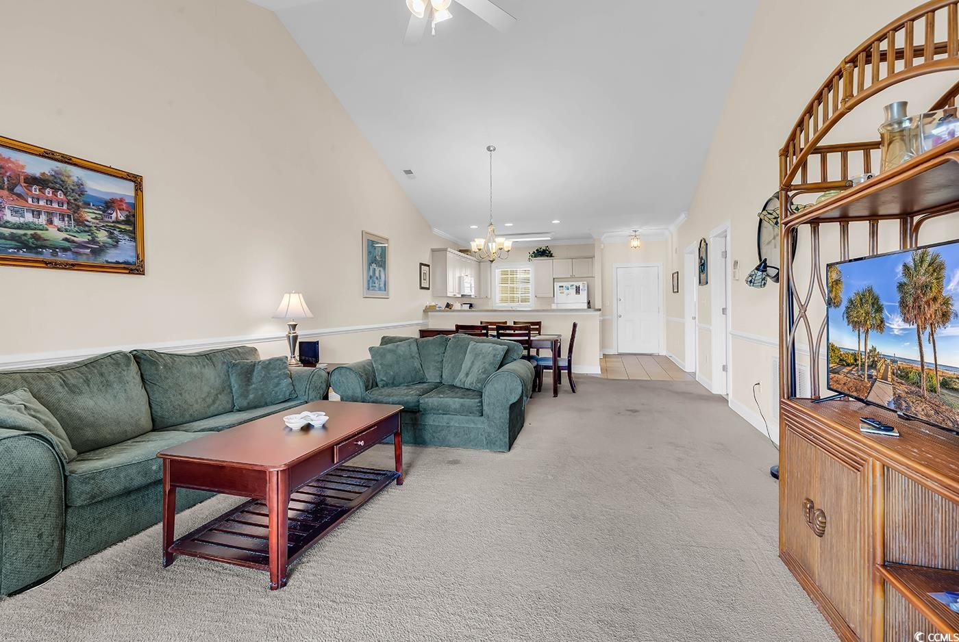 Rare Top-Floor 2BR/2BA Fully Furnished Condo with Water View. Take the elevator right to your front door and step into this exceptional condo at 4812 Magnolia Lake Drive #403. From the moment you enter, you’ll be greeted by the vaulted ceilings and an open floor plan that create a bright, grand feeling. The large kitchen is designed for convenience and style, featuring abundant cabinet and counter space along with a breakfast bar—perfect for casual meals or entertaining. The kitchen flows seamlessly into the dining area, where family and friends can gather after enjoying all that the Grand Strand has to offer. Relax and unwind in the spacious living room with cathedral ceilings, an inviting space for year-round comfort. Both bedrooms are generously sized, with the primary suite boasting a massive walk-in closet plus an additional closet, as well as a double-sink vanity in the en-suite bath. Step out onto your private balcony to take in the beautiful water views—the perfect spot to sip your favorite beverage after a day at the beach or on the golf course. Magnolia Pointe provides an array of amenities for its residents and guests, including multiple pools, grilling stations, a clubhouse, and scenic walking trails. You’ll love the unbeatable location—just five minutes from some of the area’s best beaches, with attractions like Broadway at the Beach, Barefoot Landing, world-class dining, entertainment, golf, and the Myrtle Beach International Airport only a short drive away. Don’t miss this rare opportunity to make 4812 Magnolia Lake Drive #403 your new home at the beach!