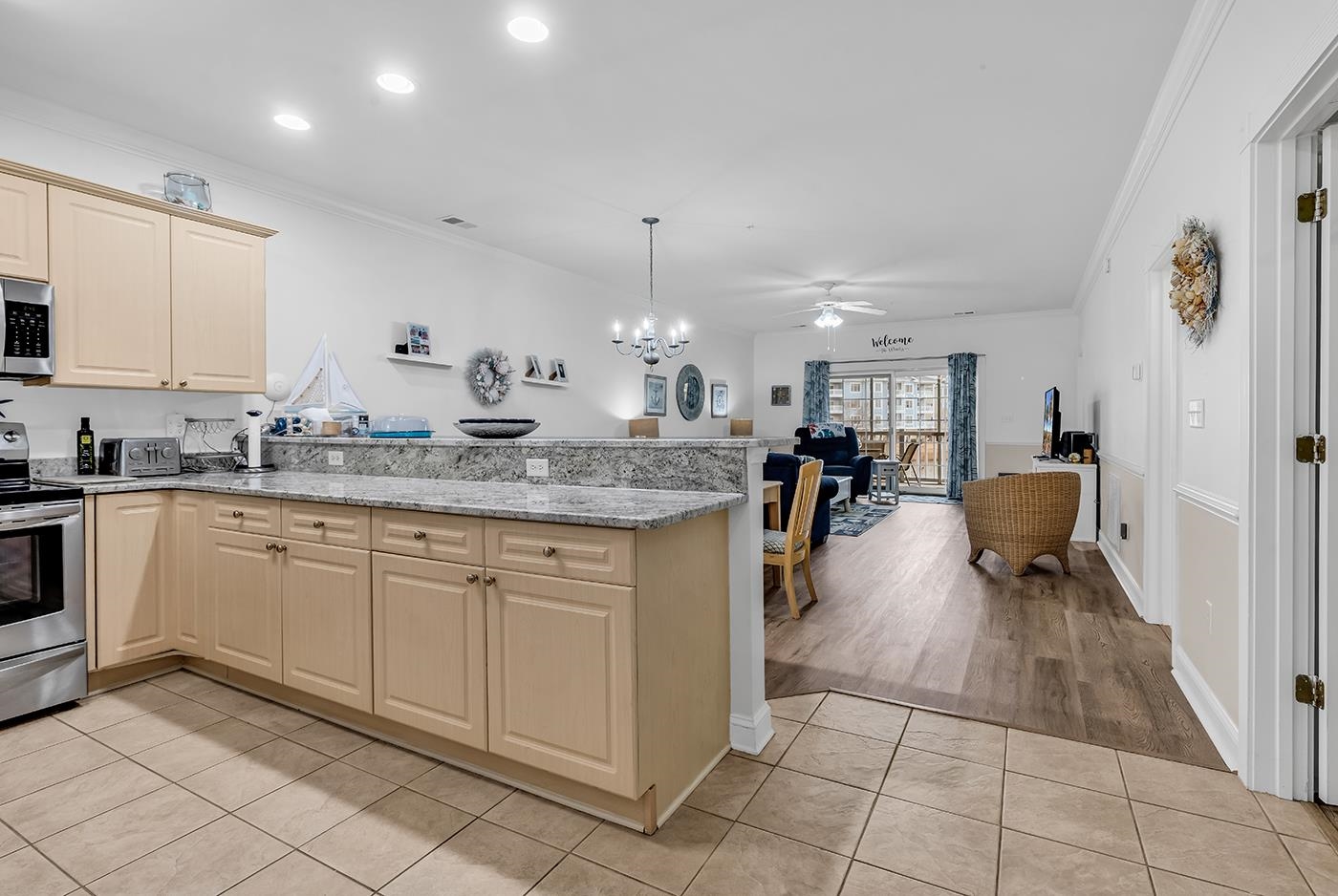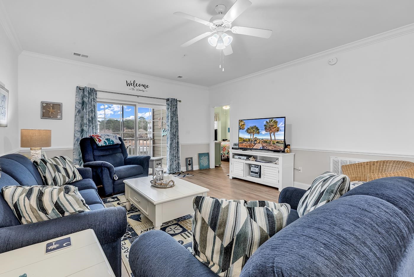 Welcome to your perfect place at the beach! This beautiful 2 bedroom, 2 bath condo has never been rented and has been lovingly maintained, offering stunning water views from your private second-floor screened porch — plus the convenience of an elevator for easy access. From the moment you walk in, you’re greeted by an open and airy floor plan featuring granite countertops, stainless steel appliances, a huge breakfast bar, and an abundance of cabinet and counter space. The spacious dining area flows seamlessly into the oversized living room, creating the perfect space for entertaining or simply relaxing after a day at the beach. Luxury vinyl plank flooring and smooth ceilings add a clean, modern touch throughout. The primary suite is a true retreat with a massive walk-in closet and an en-suite bath complete with double sinks and plenty of storage. The guest bedroom is generously sized and offers private access to the second full bath, making it ideal for visitors. Enjoy peaceful water views from your screened porch, perfect for morning coffee or evening unwinding. Located just a short drive from the beautiful beaches of Myrtle Beach and all that the Grand Strand has to offer, you’re also minutes from Broadway at the Beach — known for its top-tier dining, shopping, and entertainment. If you’ve been searching for the perfect beach home whether as a primary residence, second home, or investment.... this is the one.