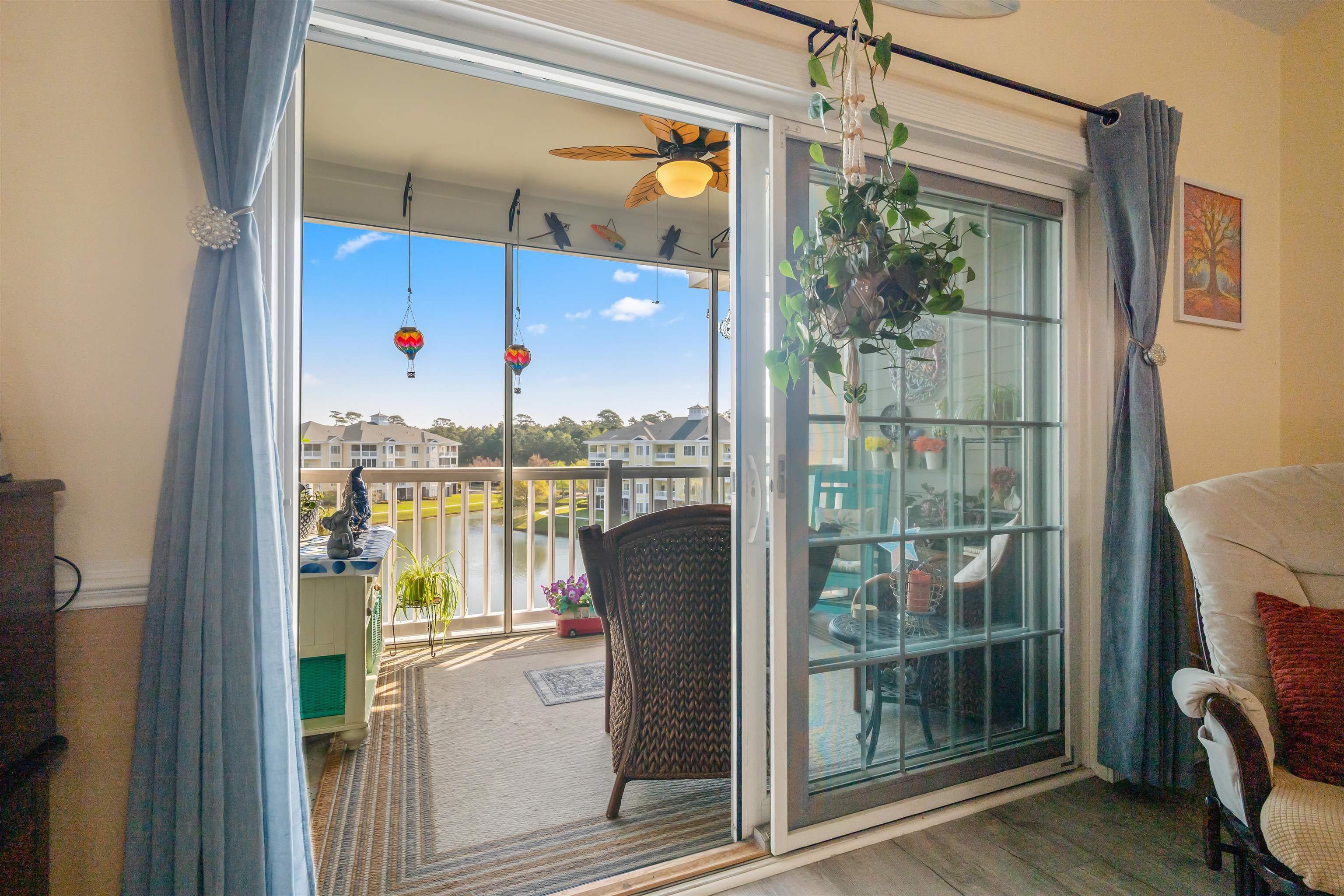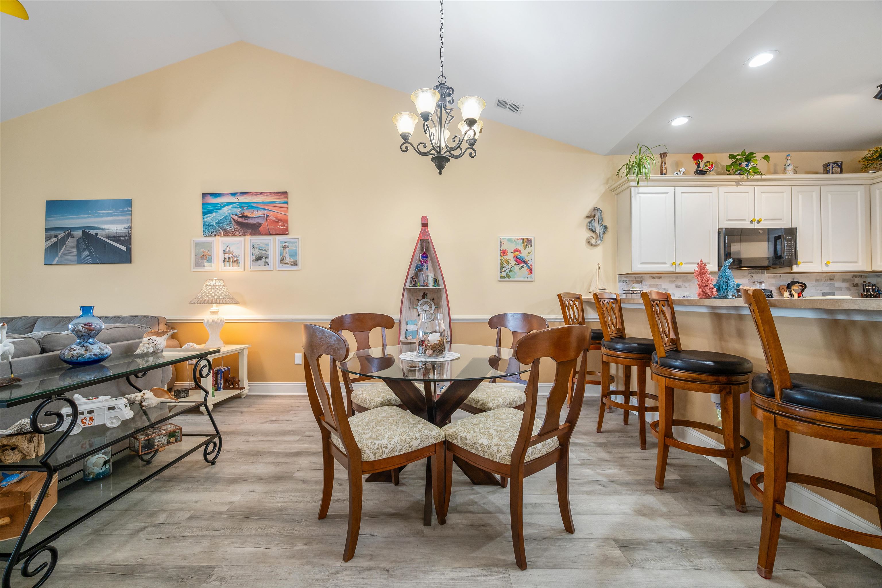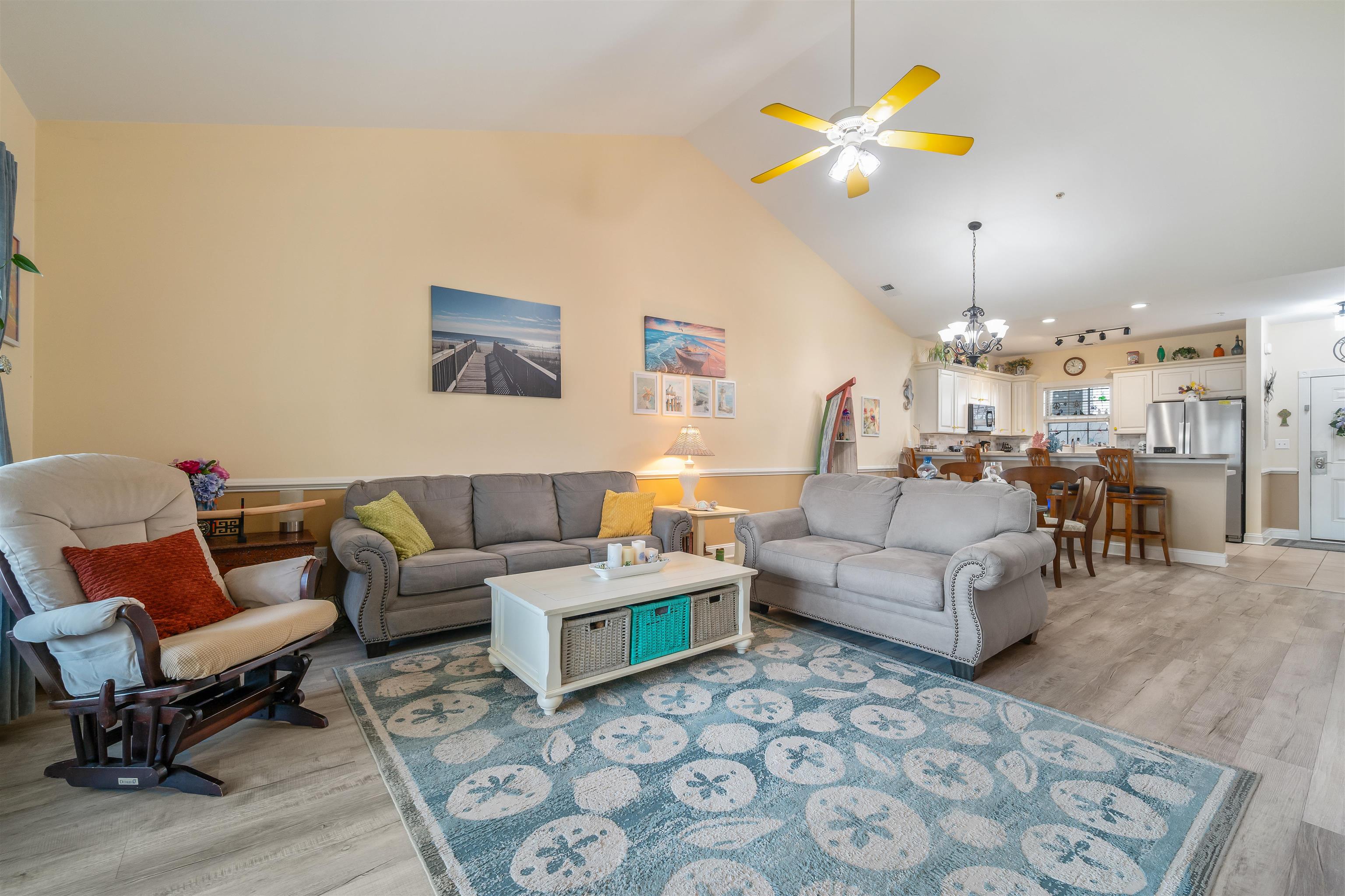 Located in the sought after Magnolia Pointe community in Myrtle Beach, this top floor, single level condo offers low maintenance living with a beautiful lake view and a layout that feels open, comfortable, and easy to enjoy. Vaulted ceilings enhance the main living area, while the combination living and dining space creates a natural flow for everyday living and entertaining. Luxury vinyl plank and tile flooring add style and durability, and the split bedroom plan gives the primary suite added privacy. The kitchen is equipped with a breakfast bar and a full appliance package including range, microwave, dishwasher, refrigerator, and garbage disposal. The primary bedroom features a walk in closet, ceiling fan, and private bath with tub and shower combination. A welcoming foyer entry adds character, and the screened porch is the perfect place to start the day or unwind in the evening while taking in the peaceful lake and pond view. This condo also offers valuable practical features including an exterior elevator, attached outside storage closet, storm door, and washer and dryer connection. Even better, the HVAC was replaced this year and the ductwork was professionally cleaned, giving buyers added confidence in the care and maintenance of the home. Residents of Magnolia Pointe enjoy access to multiple community pools and 2 clubhouses, and the HOA includes water/sewer, internet and cable, lawn maintenance, landscaping, trash pickup, common area maintenance, elevator service, and management. With a location inside city limits, within a golf course community, and just minutes from shopping, dining, golf, and the beach, this property is well suited for a primary residence, second home, or a rental investment. It offers a smart combination of comfort, convenience, and recent improvement in one of Myrtle Beach’s most popular communities.