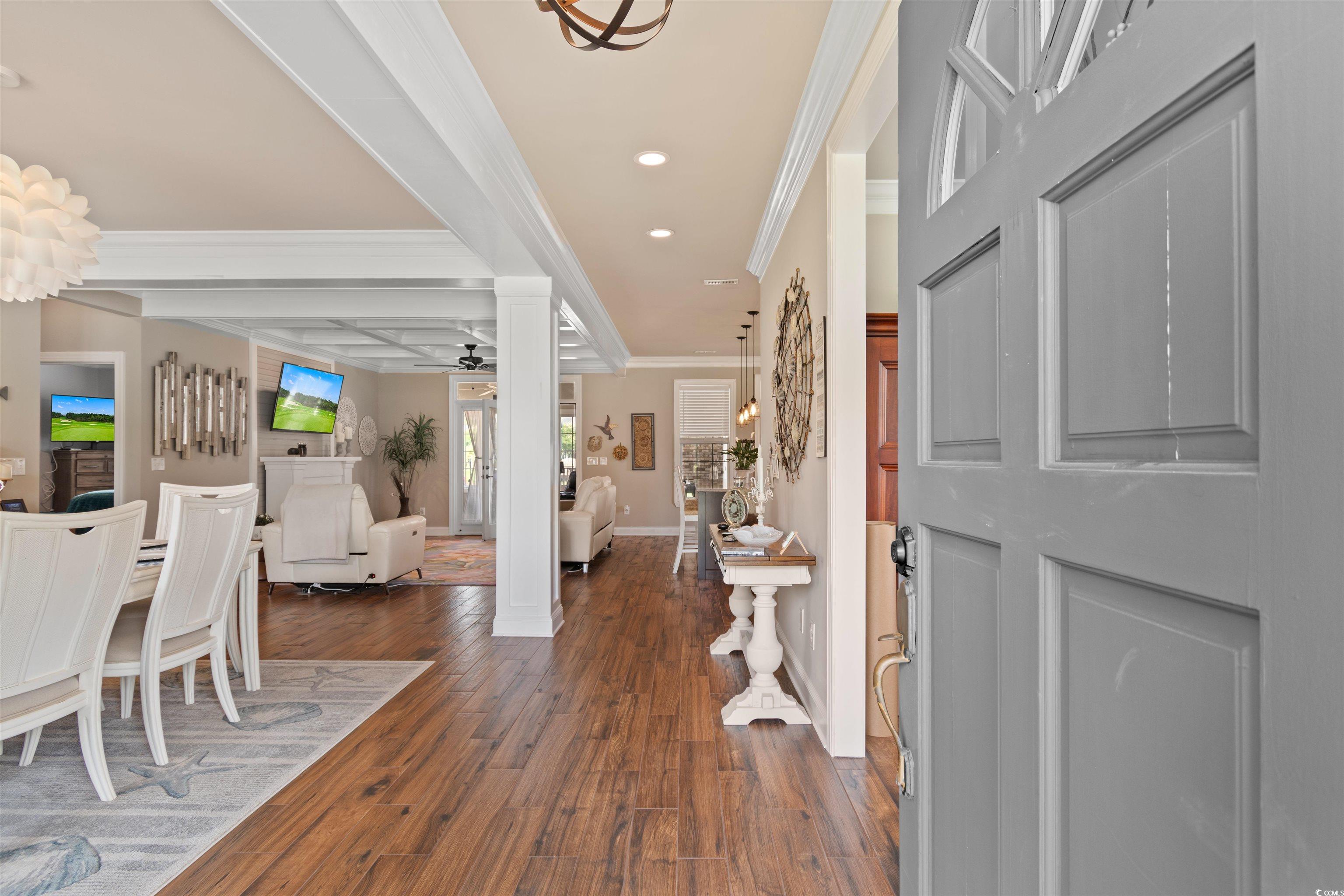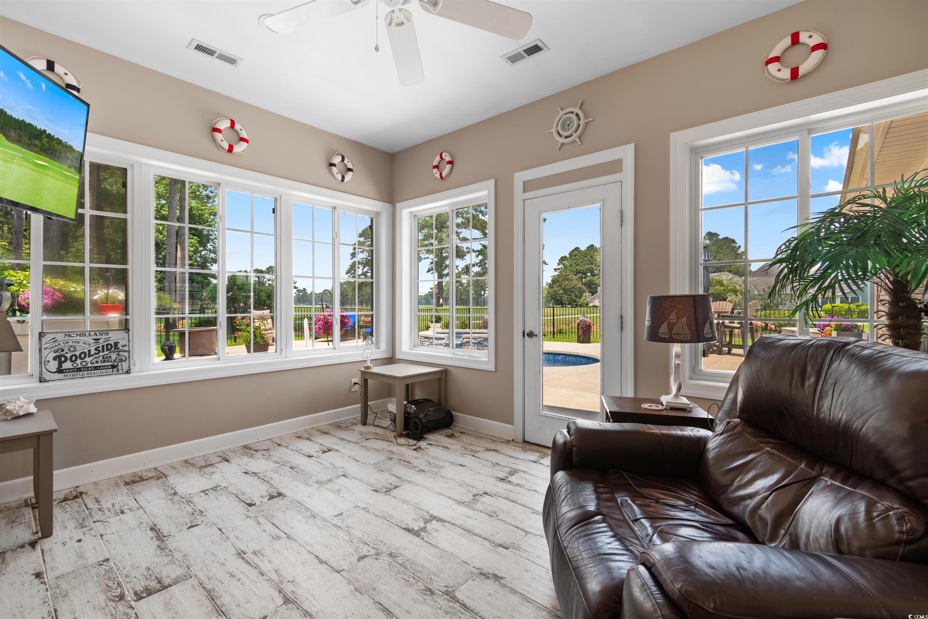 Welcome to 4826 Keet Ct., a stunning 3-bedroom, 3-bath all-brick home located on the 17th hole of the Man O War golf course, in the highly desirable Waterford Plantation community of Myrtle Beach. Situated on more than 1/2 an acre, this property stands out for its expansive lot size—offering extra space, privacy, and potential in an already incredible location. This luxurious residence offers exceptional curb appeal and refined interior finishes, including crown molding and recessed lighting throughout. Step inside to find a bright and open main living space that flows seamlessly into a formal dining room—perfect for hosting gatherings. The kitchen is a chef’s dream, featuring a large breakfast bar, sleek stainless steel appliances, and beautiful cabinetry, all designed with both function and style in mind. The spacious master suite is a true retreat, boasting a massive walk-in closet and a spa-like ensuite bathroom with a large tiled walk-in shower and dual sink vanity. Two additional bedrooms and bathrooms are equally impressive, with elegant tilework and thoughtful design throughout. A sunny Carolina room provides the perfect place to unwind or enjoy a morning coffee while overlooking your private outdoor paradise. The true showstopper of this home is the backyard oasis. The beautifully landscaped yard surrounds a sparkling private inground pool, ideal for hot summer days or evening entertaining. With over half an acre of land, you’ll appreciate the added space and freedom—something rarely found in such a desirable golf course community. Whether you’re lounging poolside, hosting a BBQ, or simply soaking in the peaceful ambiance, this space is your personal slice of paradise. The backyard also includes an attached storage area and covered carport, perfect for keeping all your outdoor essentials organized and easily accessible. Waterford Plantation offers top-tier amenities, including a community pool, tennis courts, and basketball courts, all nestled within a tranquil, tree-lined neighborhood. Between the large lot, prime community, and ideal Myrtle Beach location, this home combines luxury, comfort, and convenience. Don’t miss your opportunity to own this exceptional home in one of Myrtle Beach’s most sought-after communities. Schedule your private showing today!