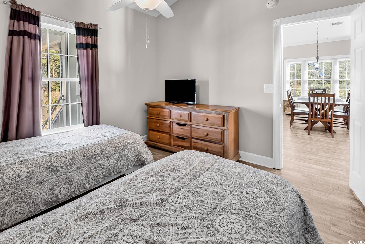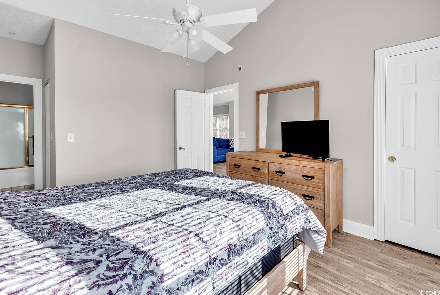 This fantastic three-bedroom/two-bathroom condo is one of the few units that has its own private garage. This is great for storage or when you decide to fly into town for an extended weekend. The unit is located adjacent to the beautiful Myrtlewood Golf Club and is centrally located to Myrtle Beach's finest attractions. The condo is an end unit and offers tons of natural light and an open floor plan with a large space for entertaining friends and family. You will be pleasantly surprised from the moment you enter the condo as your eyes are drawn to the high cathedral ceilings, nice furnishings, and new laminate flooring. The white, crisp, clean kitchen has all your cooking needs with all major appliances and accessories. The split bedroom plan offers privacy for you and your guests. The primary bedroom features vaulted ceilings, a walk-in closet, and a linen closet. The second bedroom is connected to the guest bathroom, which contains the washer and dryer. Enjoy relaxing on the balcony overlooking one of Myrtle Beach's finest golf courses. Magnolia North offers several pools and gas grills located throughout the complex for enjoying the outdoors. The community is located approximately 3 miles from the beach and two miles from Myrtle Beach's biggest attraction, Broadway at the Beach. Whether you are looking for a primary home, a home away from home, or an investment opportunity, this checks all of the boxes.