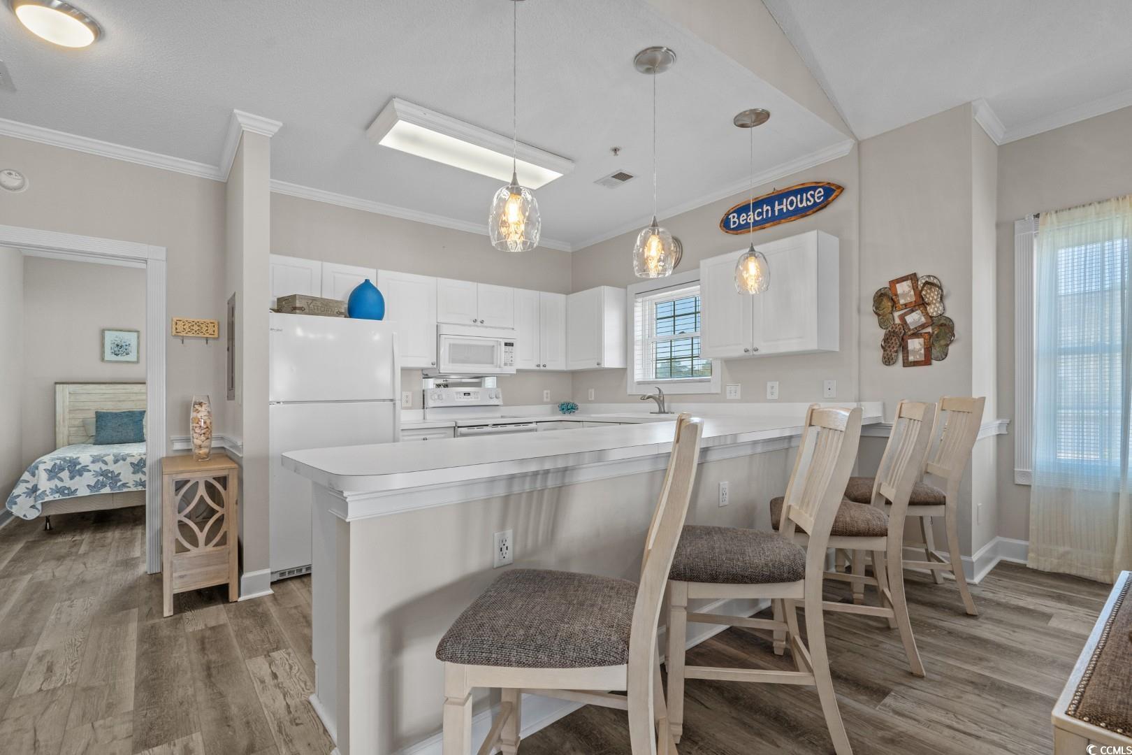 Location! Location! Location! Rare Opportunity in Magnolia North at Myrtlewood Golf Course! Don't miss your chance to own this beautiful 3-bedroom, 2-bath condo, located in the highly sought-after Magnolia North community. This end-unit gem offers a peaceful courtyard view and comes fully furnished. In addition, there is a 1 car garage as well. 1,300 sq ft of living space with LVP flooring throughout (including in the closets!) Freshly painted and meticulously maintained. Vaulted ceilings that add a touch of elegance and spaciousness. End-unit with no units above for extra privacy and peace. Rare building, only 2 other buildings in the community with this design! The open floor plan connects the living, dining, and kitchen areas, making it perfect for entertaining or relaxing with family. Whether you're enjoying your morning coffee or watching the sunset, this condo offers the ideal setting to unwind. A short golf cart ride (only a mile) to the beach or if it's the pool you enjoy there are four to choose from at Magnolia North! Convenient to Broadway at the Beach, downtown amusements, and a variety of restaurants, shopping and entertainment options. If golf is your passion, welcome to the Golf Capital of the World! At Magnolia North's prime location, you'll be perfectly positioned near all the best courses north or south so you can enjoy every fairway Myrtle Beach has to offer. Whether you're looking for a primary home, vacation getaway, or investment property, this is an opportunity you won't want to miss.
