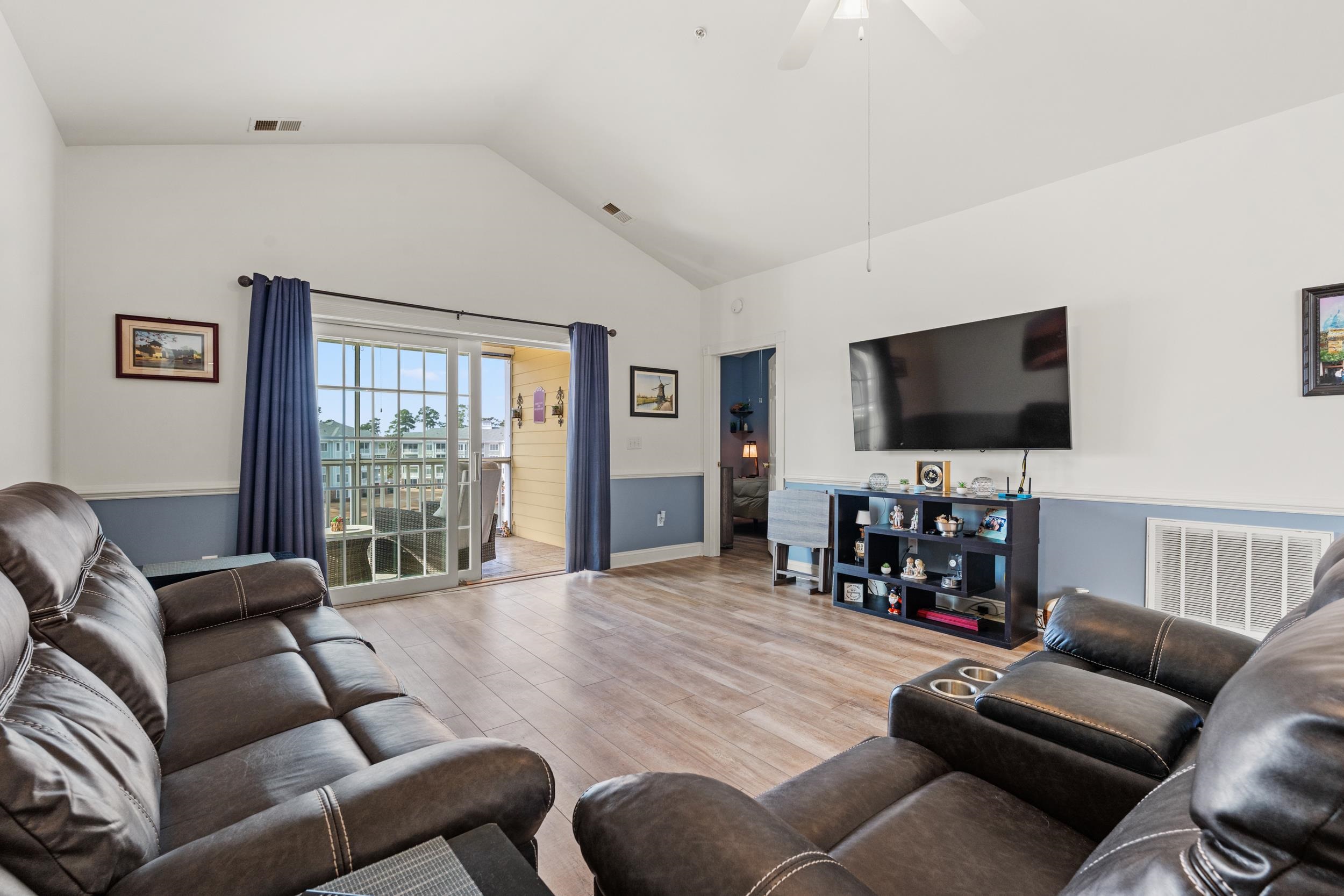 Welcome to this spacious and beautifully maintained 3-bedroom, 2-bathroom top-floor corner condo located in the highly desirable Magnolia Pointe community in the heart of Myrtle Beach. This light-filled unit offers an open and inviting floor plan enhanced by vaulted ceilings, creating a bright and airy atmosphere throughout the main living space. As a corner unit, the condo enjoys added privacy and natural light, making it feel even more expansive and comfortable. The thoughtfully designed layout features a generous living and dining area that flows seamlessly into the kitchen, making it ideal for entertaining or relaxing after a day at the beach. The home includes custom cabinetry that provides valuable additional storage space, a feature rarely found in many condos in the community. The condo also offers a designated laundry area with a full-size washer and dryer, adding everyday convenience and functionality. The property features a recently renovated bathroom, adding a modern touch and enhancing the overall appeal of the home. Each bedroom is well-sized with comfortable living space, making this condo perfect for a primary residence, vacation getaway, or investment property. Enjoy peaceful views of the community pool from your unit and take advantage of Magnolia Pointe’s beautifully maintained grounds and amenities. Located in the sought-after Myrtlewood Golf community, Magnolia Pointe is just minutes from the Atlantic Ocean, as well as Myrtle Beach’s top attractions including championship golf courses, shopping, dining, entertainment, and Broadway at the Beach. Whether you're looking for a full-time residence, a second home, or a short-term rental investment, this top-floor corner unit offers the perfect combination of comfort, location, and coastal lifestyle. Don't miss the opportunity to own a piece of paradise just moments from the beach.