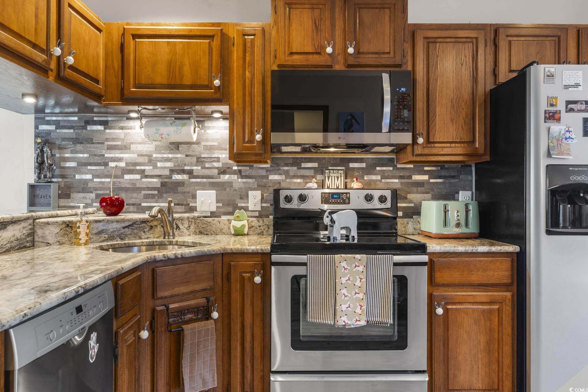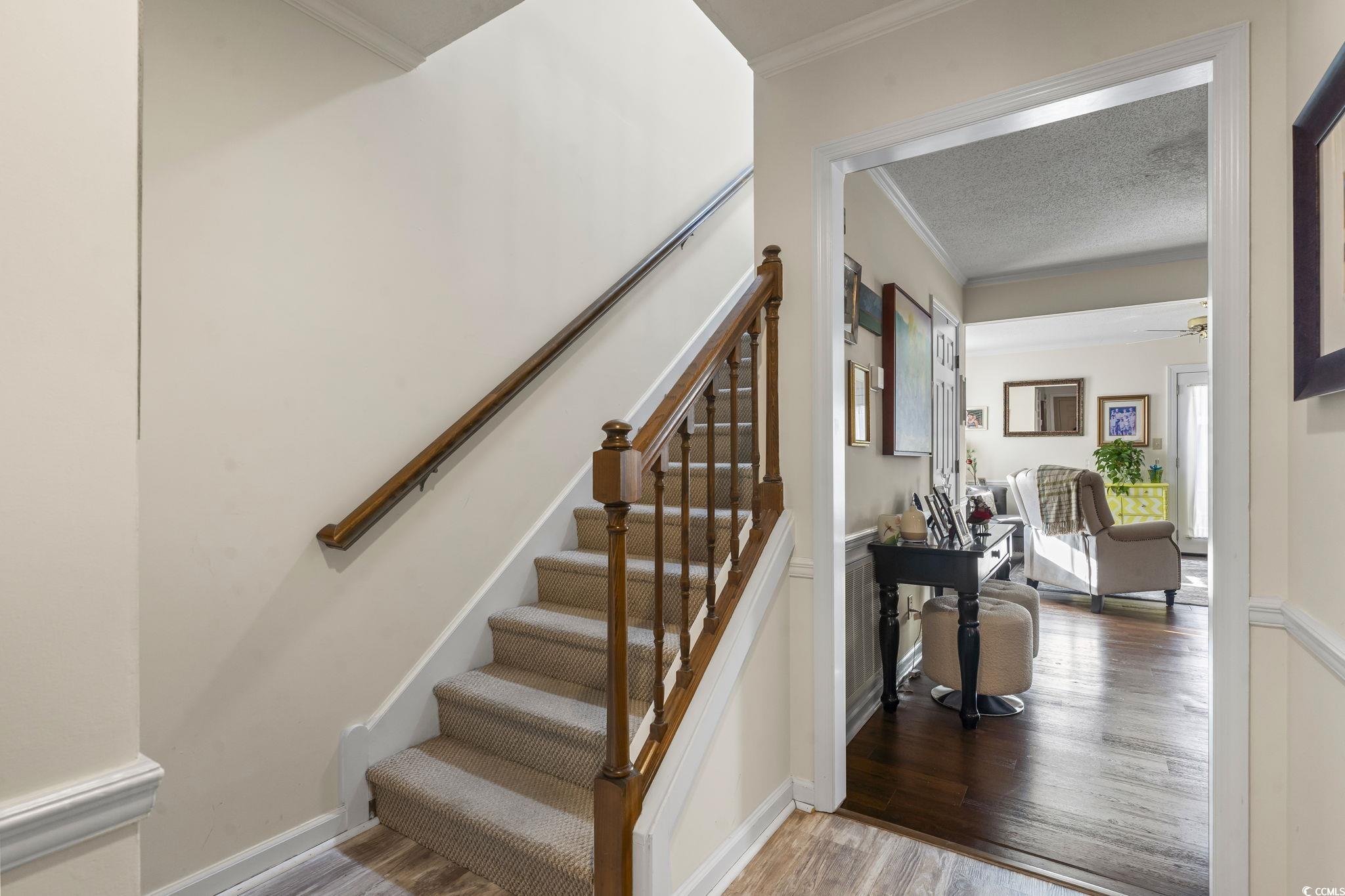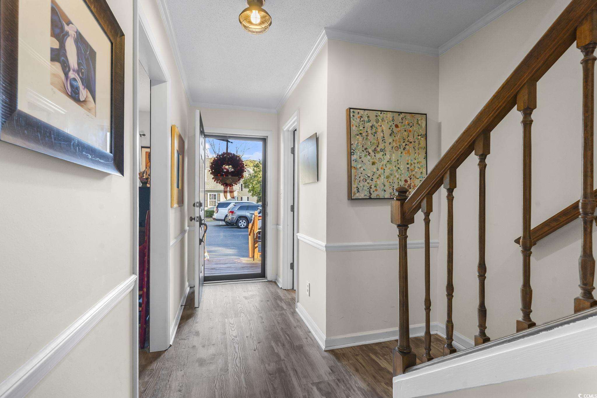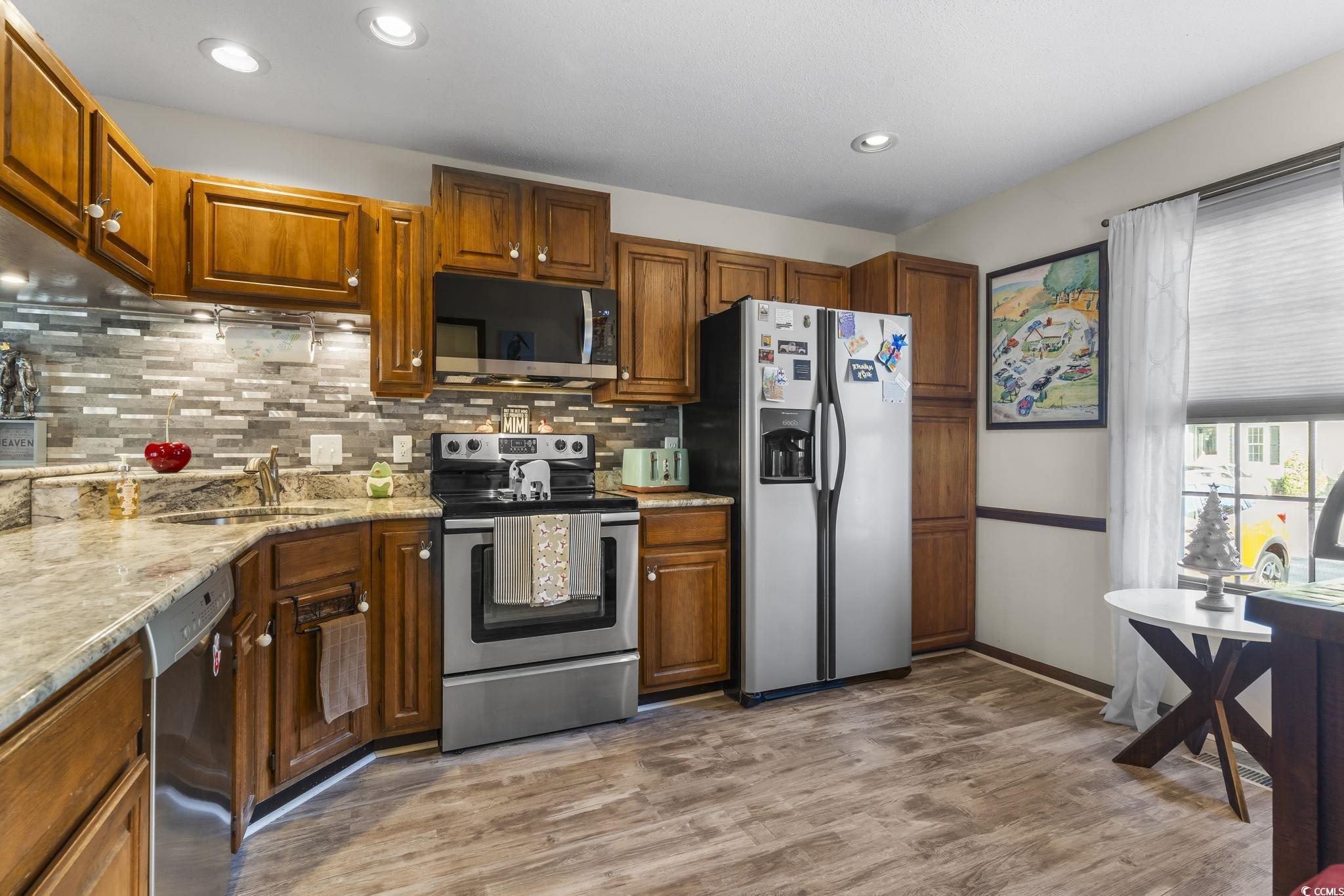 A must see end unit townhome in the heart of Murrells Inlet. The 2 bedroom, 2-1/2 bath townhome offers dual masters each with their own private bathroom. This townhome has recent updates including stainless steel appliances, new HVAC system, LVP flooring, new roof, new energy efficient windows, water heater and lighting. They encapsulated the crawl space and added a dehumidifier. A large deck off of the living room overlooking a pond view. The cozy but spacious neighborhood of Moss Creek boasts mature live oaks, and is located only steps from the Murrells Inlet bike path, Murrells Inlet Marshwalk with spectacular waterfront dining, shopping, hospital and other healthcare facilities, as well as the nationally acclaimed Brookgreen Gardens and Huntington Beach State Park. This unit won't last long. Schedule your appointment today.