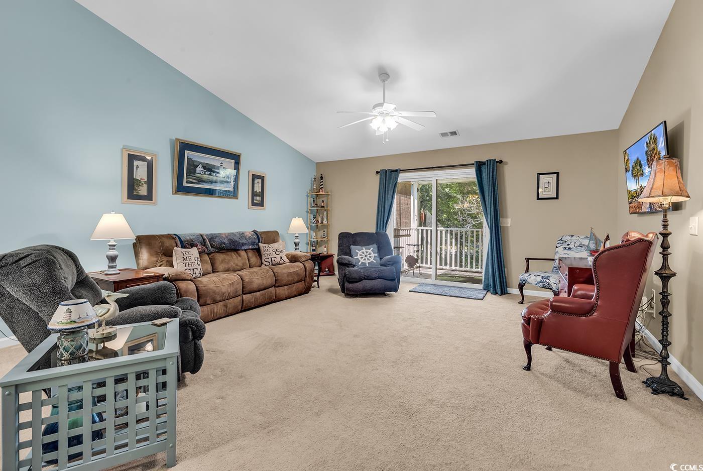 Welcome to this spacious 3-bedroom, 2-bathroom condo in the desirable Bay Meadows community. Located on the 3rd floor with cathedral ceilings, this home offers an open and airy feel, complemented by tasteful furnishings that make it move-in ready. The primary suite features its own ensuite bath and private access to the large screened-in back porch, which is also accessible from the great room—perfect for relaxing or entertaining. With an elevator in the building, a dedicated storage room, and a sparkling community pool, comfort and convenience are built right in. Living in Bay Meadows means more than just a beautiful condo—it’s about location. Nestled in Carolina Forest, you’ll be just minutes from premier shopping, dining, golf, and entertainment. Plus, the sandy shores of the Atlantic Ocean are only a short drive away.