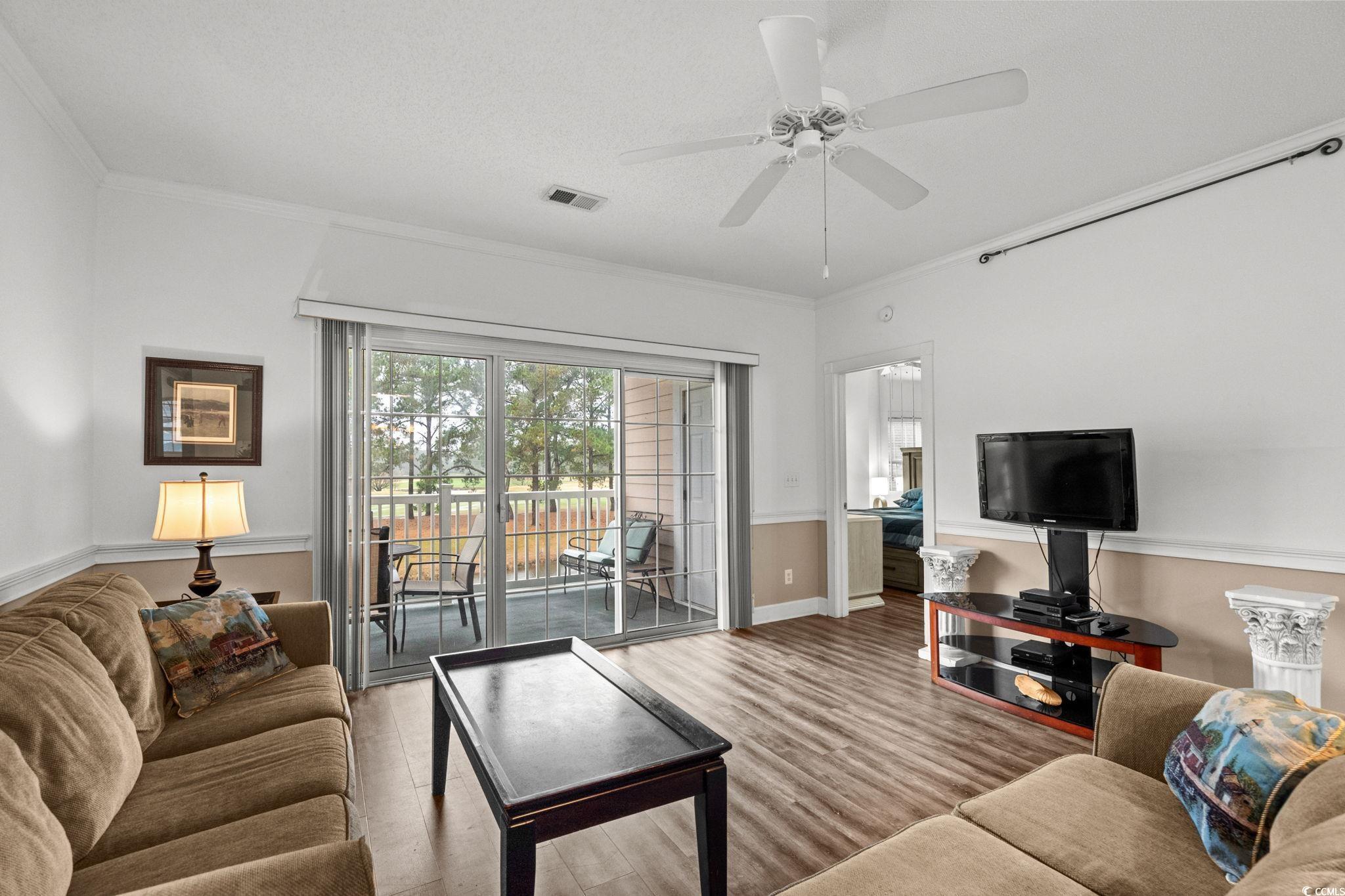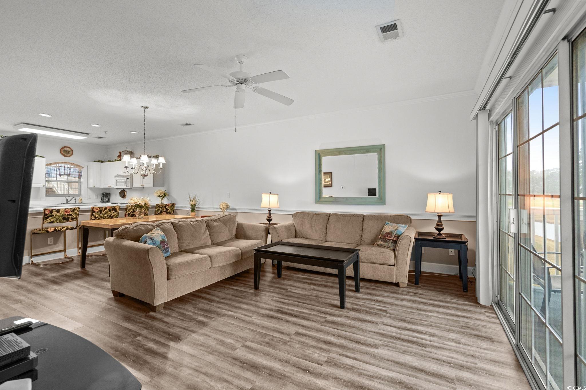WOW! What a view! Start enjoying this fully furnished 2 BR / 2BA condo in Magnolia North with expansive fairway, lake and sunset views from the balcony and primary suite. The open layout connects the kitchen, dining, and living areas, making the space feel bright and comfortable. The primary bedroom includes two closets—one lockable for owner storage. Just over a mile to the beach and minutes from Broadway at the Beach, dining, shopping, and entertainment. A refined, low-maintenance option for a second home, rental investment, or easy coastal getaway. Don't delay - arrange a tour today!