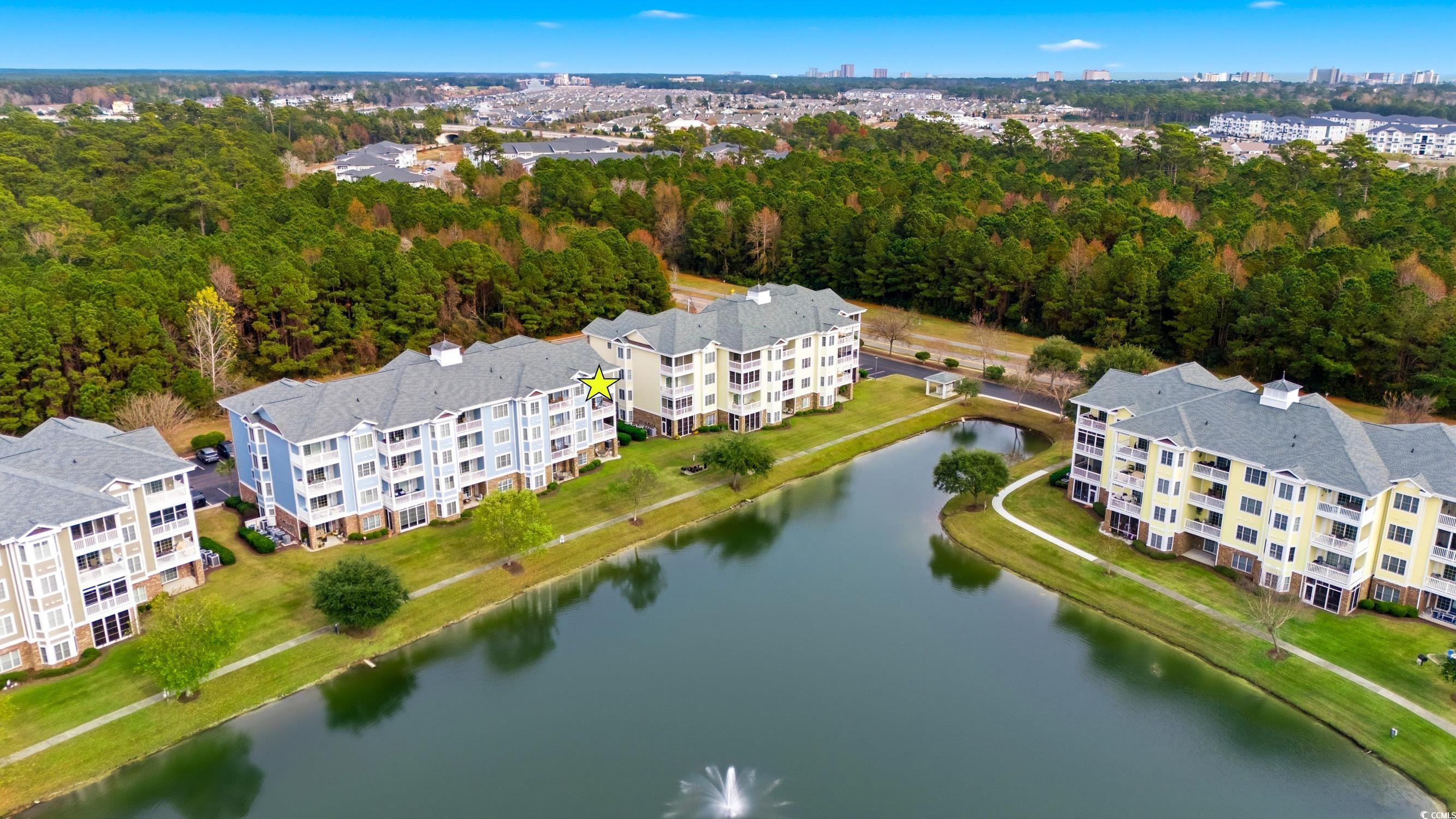 Top floor corner 3-bedroom condominium at Magnolia Pointe. These 4th-floor residences are favorites in this elevatored building for their vaulted ceilings and superior views. The spacious corner balcony, living room, and primary bedroom all overlook a scenic lake and the nearest pool area. The open floor plan is enhanced by a bay window in the living room, flooding the space with natural light. When the current owner purchased the condo and made it his home in 2019, he made several updates, including a new Samsung full-sized washer/dryer (which conveys), and stainless steel appliances (range, refrigerator, and oven). In 2020, he installed a new HVAC system and hot water heater. The kitchen and bathrooms feature granite countertops and upgraded cabinetry. The primary bathroom has two sinks. Luxury vinyl plank flooring flows throughout the living areas, with tile in the kitchen and baths. Although the condo is currently furnished, the furniture will be removed before the sale, leaving it unfurnished for the new owner. Whether you're looking for a forever home, a vacation retreat, or an investment property (short or long-term rentals allowed), this condo offers flexibility and potential. Magnolia Pointe allows pets and golf carts, a rare find in the area, adding convenience for beach trips. The building looks amazing! New roofs were installed throughout the development in 2024 and many other improvements are ongoing. Amenities include 7 beautifully landscaped pools, 2 clubhouses, multiple grilling areas, and walking trails around the community lakes. The location is unbeatable, just a few miles from Broadway at the Beach with shopping, dining, entertainment, and golf courses, and the beach is only a mile away. The monthly HOA fee includes water/sewer, trash collection, basic cable, internet, and pest control. All information is deemed correct, but it is the responsibility of the buyers and their agent to verify all information.