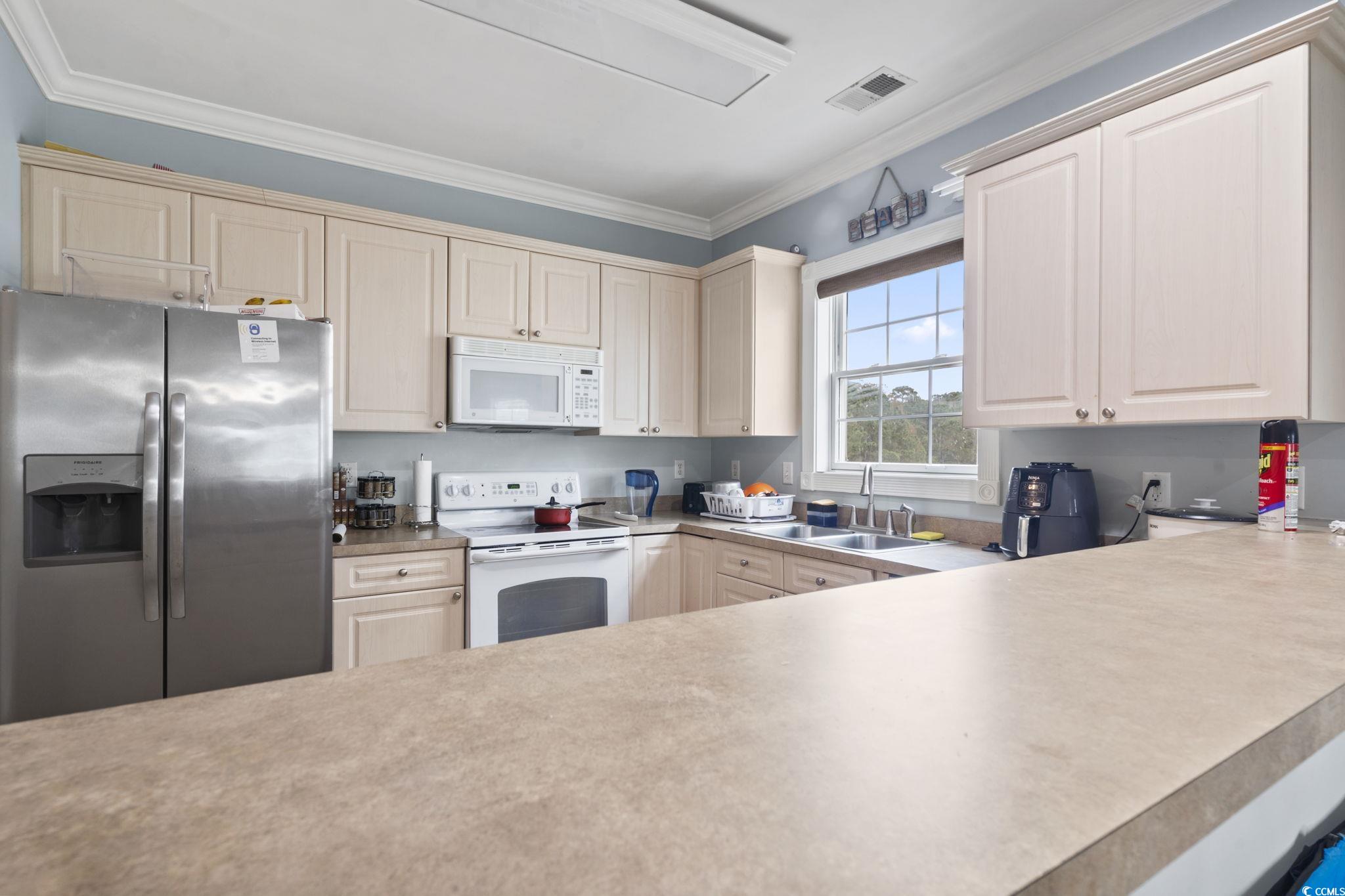 Step into this beautifully updated 3 bedroom, 2 bathroom condo offering direct pond views in one of the area’s most desirable golf-centric communities, Magnolia Pointe! Located in an elevator-equipped building, this spacious unit blends comfort, convenience, and coastal living just minutes from the beach. Inside, you’ll find new LVP flooring throughout most areas, providing a fresh, modern feel and easy maintenance. The open-concept living and dining space flows seamlessly to a private balcony overlooking the water—perfect for morning coffee or unwinding after a day on the course or at the beach. The home features a brand new washer and dryer, and peace of mind comes with a HVAC system only 2 years old. With three bedrooms, two full baths, and plenty of natural light, this condo works wonderfully as a primary residence, second home, or investment property. Even better—this community allows both short-term and long-term rentals, making it a fantastic opportunity for investors looking to maximize rental potential. Residents enjoy access to multiple community pools, and beautifully maintained grounds. Whether you're seeking relaxation, recreation, or the ideal coastal lifestyle, this property truly has it all. Don’t miss your chance to own a move-in-ready condo with water views and flexible rental options in a prime location!