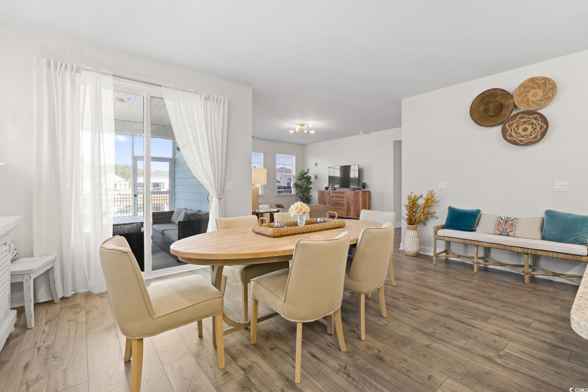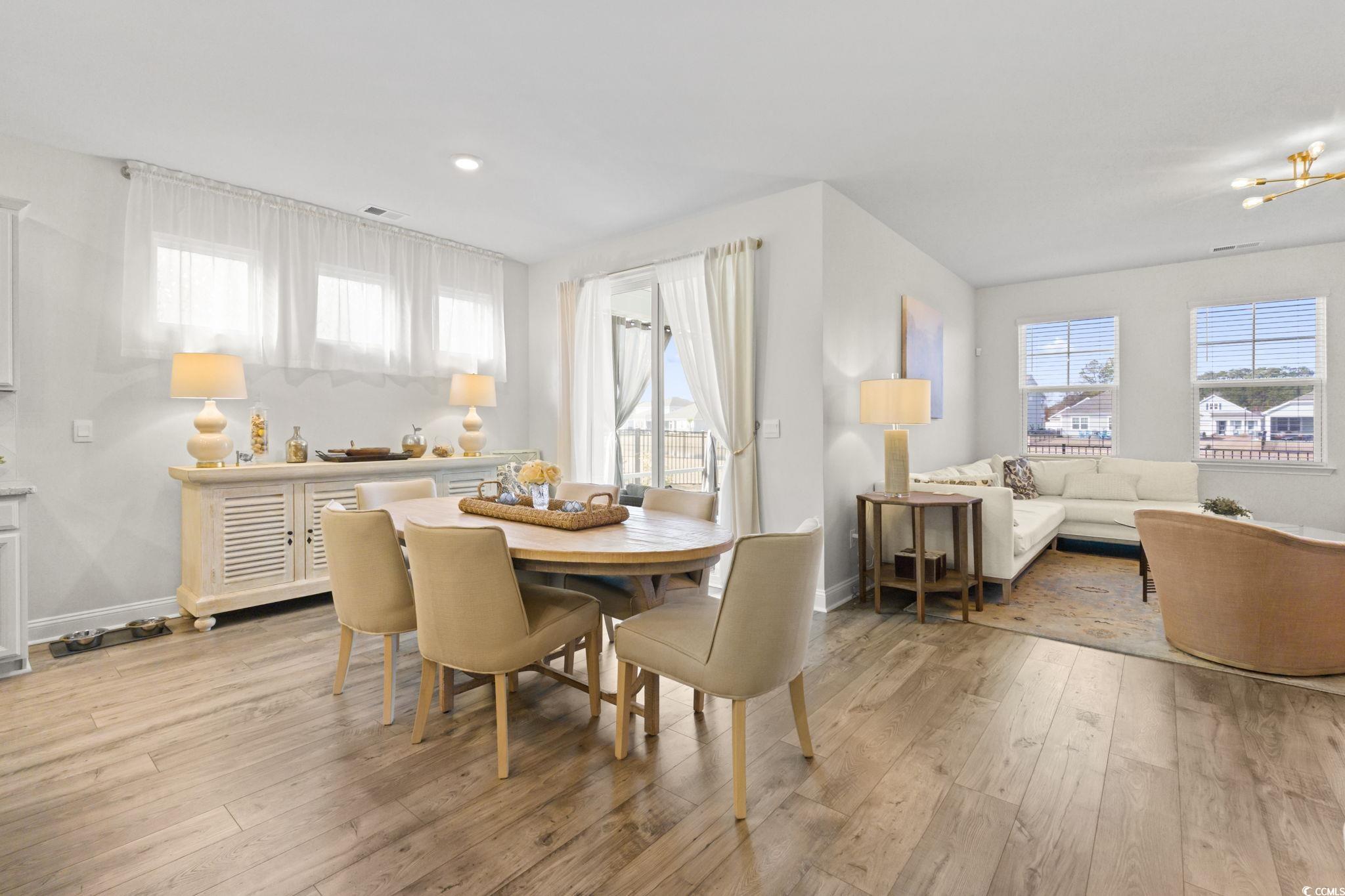 3-bed home with flex room, pond views, and screened patio near Murrells Inlet with pre-paid HOA fees through 2026! Looking for a move-in-ready home with flexible space, peaceful views, and a great location near the coast? This 3-bedroom, 2-bathroom home with a flex room and attached 2-car garage is located in The Lakes community along the Grand Strand, offering a balance of comfort, style, and everyday convenience close to Myrtle Beach. From the moment you arrive, the welcoming front porch sets a warm tone for the home. Inside, the bright foyer opens to a thoughtfully designed floor plan that feels open yet private. A guest bedroom and full bathroom are located near the front of the home, creating a comfortable space for visitors. Just beyond, a versatile flex room offers endless options as a home office, hobby space, or additional sleeping area, while a second guest bedroom with extra storage sits nearby. The heart of the home is the open-concept living, dining, and kitchen area, designed for easy living and entertaining. The kitchen features granite countertops, stainless steel appliances, a walk-in pantry, and a large work island that doubles as a breakfast bar. Natural light fills the space, and the flow into the living room makes gatherings feel effortless. Step outside to the covered, screened patio, where you can enjoy quiet mornings, fresh air, and serene pond views that create a calming backdrop. The primary suite is tucked away at the rear of the home for added privacy and feels like a true retreat. It includes a spacious walk-in closet and an elegant ensuite bathroom with dual sinks and a custom-tiled step-in shower. The fenced backyard overlooks the pond and offers space to relax, entertain, or unwind at the end of the day. Additional features include a finished and painted 2-car garage, and all appliances conveying with the property, including the washer and dryer. The home is located in The Lakes, a scenic community known for majestic oak trees, peaceful lakes, a community pool, and a clubhouse (available with an annual access fee). The location provides easy access to shopping, dining, golf courses, schools, major roadways, and area attractions, with the Atlantic Ocean just minutes away. Whether you are searching for a primary residence, vacation home, or investment opportunity, this home offers the lifestyle, location, and features buyers are looking for along the Grand Strand. Measurements are not guaranteed; buyer is responsible for verification.