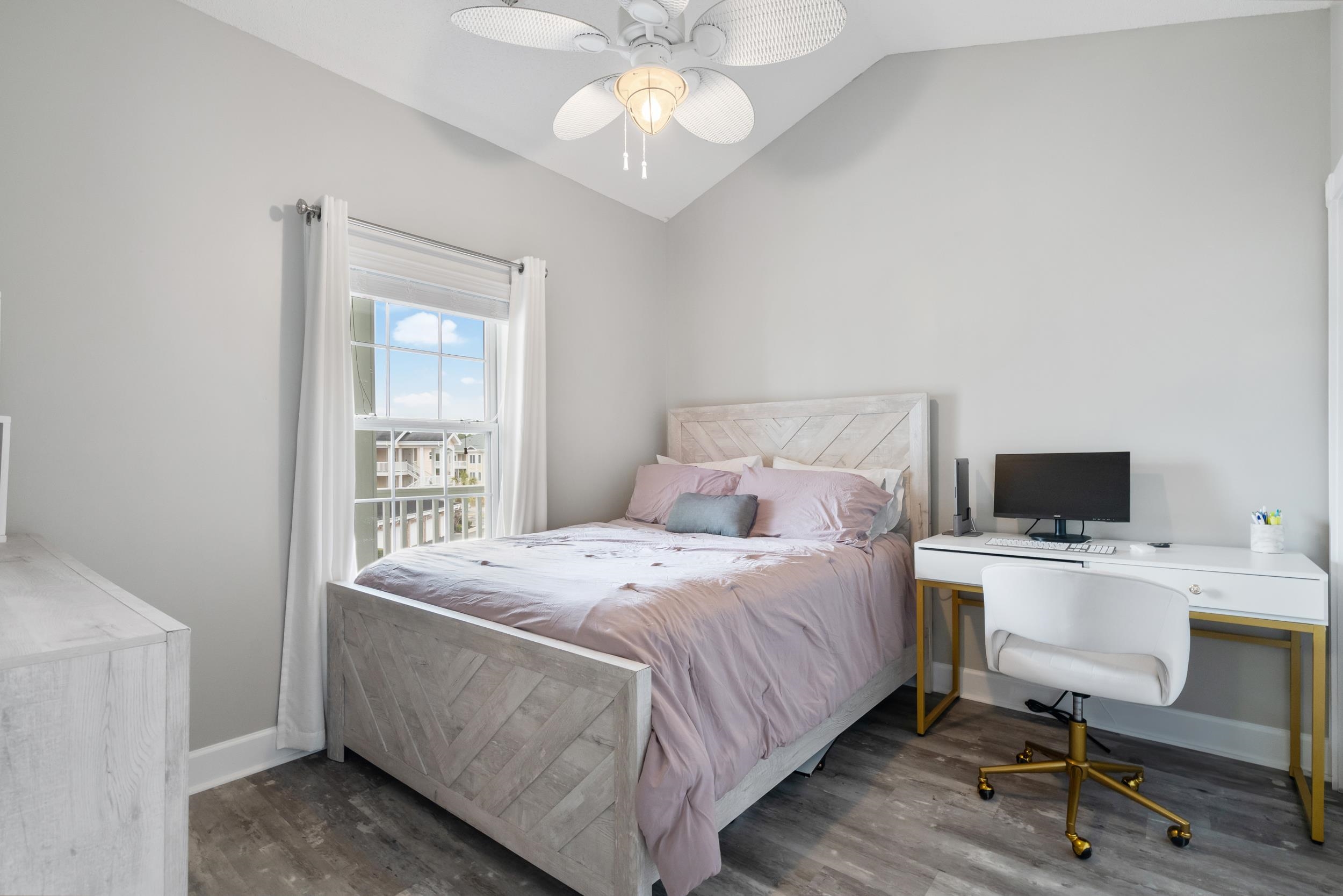 Welcome to 4870 Dahlia Ct #304, a furnished top floor end unit condo just a short golf cart ride from the beach. This is the perfect condo whether you are looking for a primary home, secondary home, or investment property. The kitchen is finished with granite countertops and stainless steel appliances. The living room/dining room, primary bedroom and second bedroom all have cathedral ceilings, offering a more open and brighter space. The primary suite has both a walk in closet and coat closet for ample clothing space. Balcony overlooks one of the quieter pools in the neighborhood and has a storage closet to keep all your pool and beach gear in. New roof was installed in March 2025. Conveniently located nearby many restaurants, grocery stores, entertainment and quick access to highway 31 to get you anywhere in the Grand Strand. *Seller is licensed SC Realtor