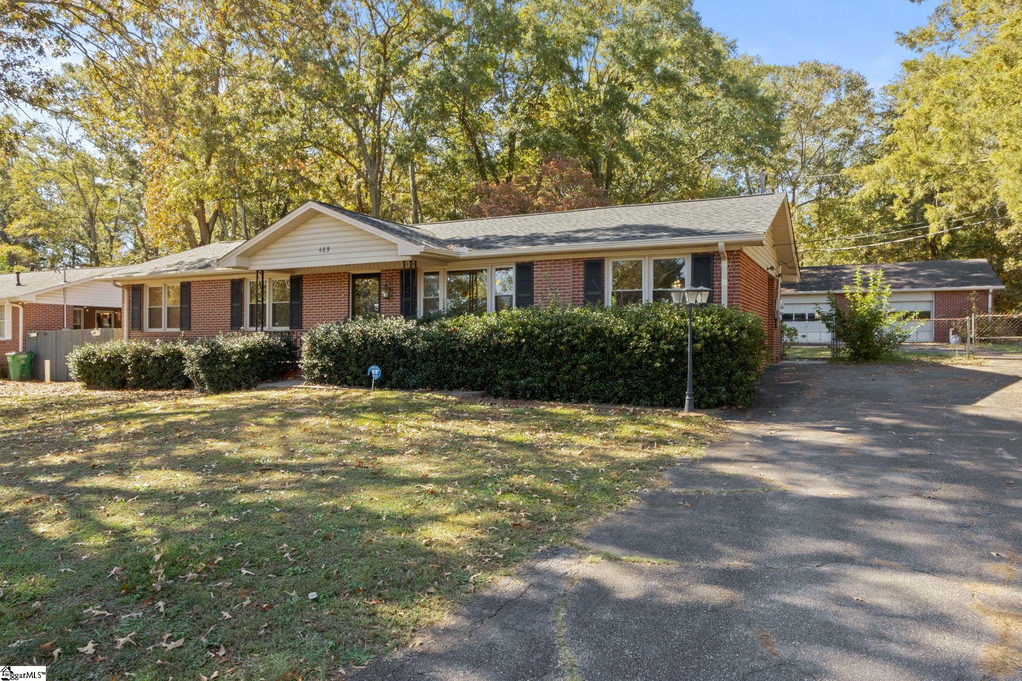 Minutes from Downtown Spartanburg! Discover this classic brick ranch home with a 30x40 detached garage/workshop, perfectly situated on a spacious lot. Inside, you’ll find hardwood floors in the bedrooms and den, freshly painted walls and ceilings, and a brand-new roof for added peace of mind. The eat-in kitchen offers plenty of cabinet space, a generous dining area, and easy access to the back patio—ideal for outdoor entertaining. The former carport has been enclosed to create a second den, perfect for a home office, playroom, or workout space. The primary bedroom includes a private half bath, while the additional bedrooms share a centrally located full bath. Outside, the fenced backyard provides a safe and spacious area for pets or children to play. The detached 30x40 garage features two overhead doors, a personal entry door, and is stubbed for a bathroom, offering endless potential for hobbyists, mechanics, or additional storage. A wonderful location close to downtown Spartanburg—this home combines classic charm with modern updates and versatile spaces!