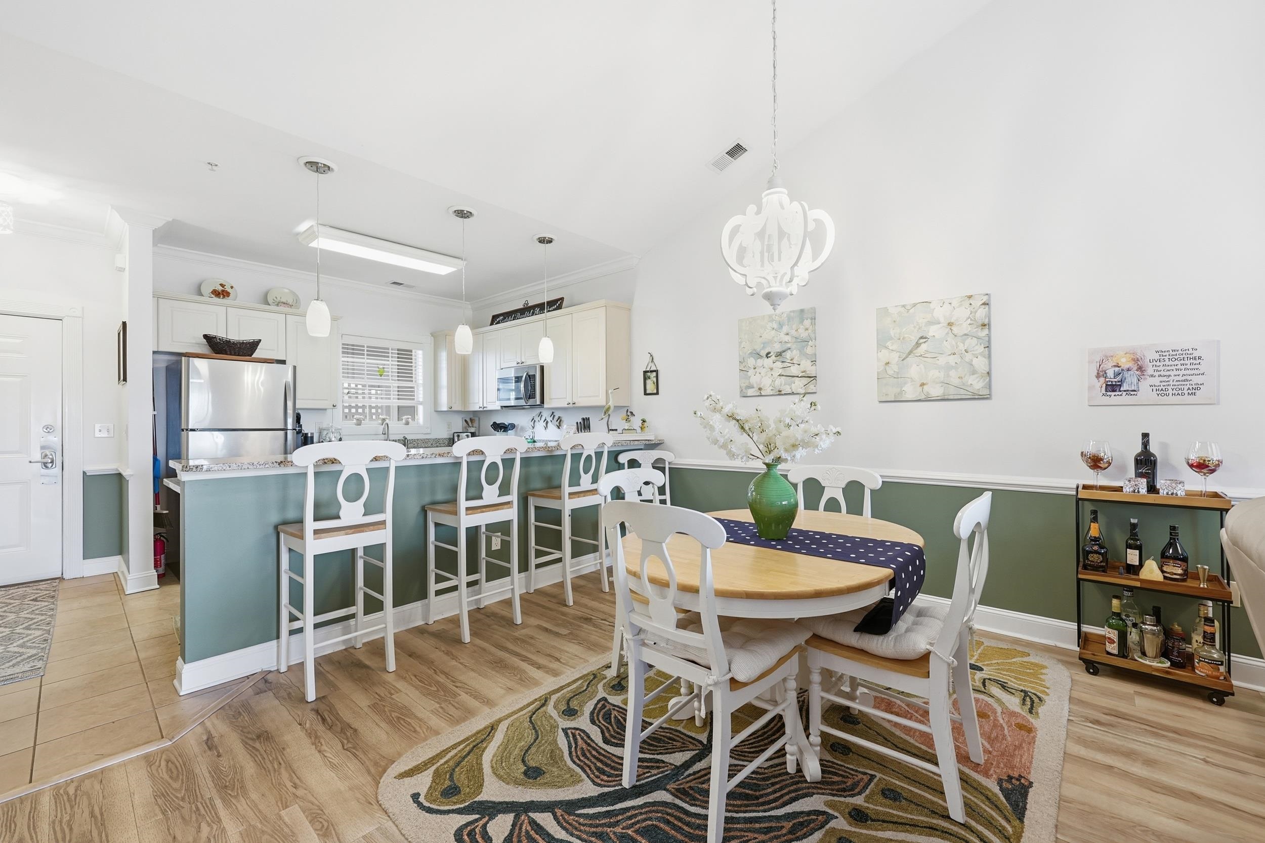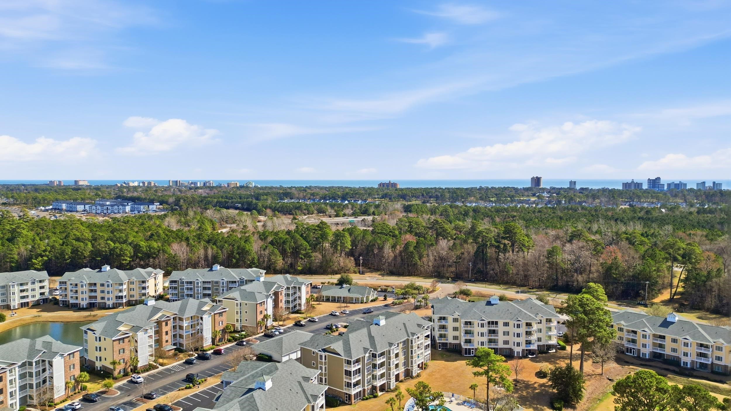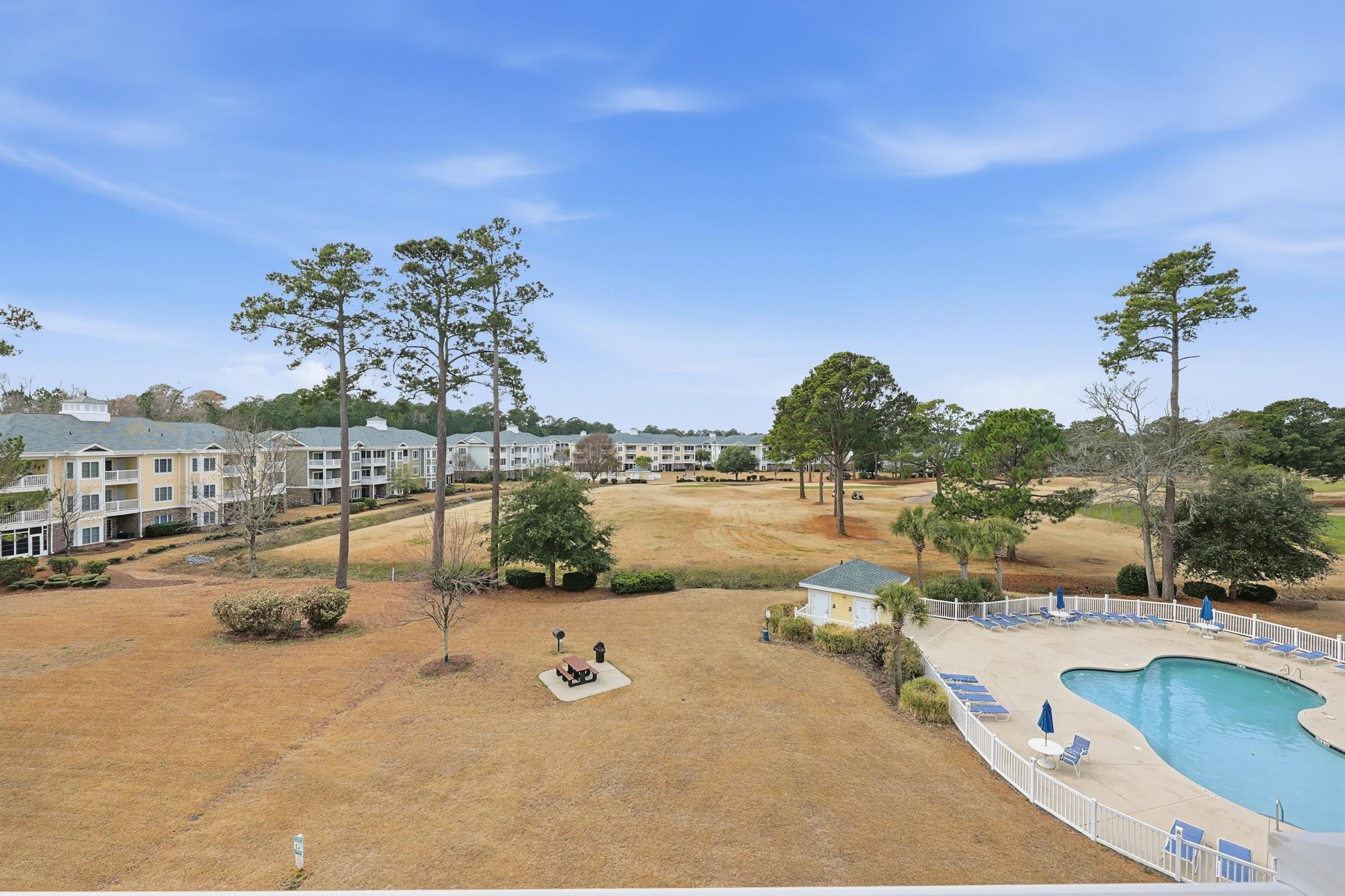 Located within the highly desirable Magnolia Pointe community at Myrtlewood Golf Course, this top-floor 2-bedroom, 2-bath residence offers elevated views, natural light, and a thoughtfully updated interior in one of Myrtle Beach’s most central locations. Positioned on the fourth floor with convenient elevator access, the unit enjoys the added benefit of vaulted ceilings that create a more open, airy feel throughout the main living space. Large windows and sliding glass doors frame expansive golf course views while bringing in abundant natural light. The kitchen features solid-surface countertops, stainless appliances, and a breakfast bar that flows seamlessly into the combined living and dining area that’s ideal for both everyday comfort and entertaining. Recent interior updates include fresh paint throughout, updated lighting, and newer appliances, contributing to a clean, move-in-ready presentation. The primary suite offers generous proportions, vaulted ceilings, a walk-in closet, and an ensuite bath with dual sinks and a tub/shower combination. A well-positioned second bedroom and full bath provide privacy for guests or flexible use as a home office. Step onto the private balcony overlooking the golf course and community pool making it a peaceful setting for morning coffee or evening relaxation. Magnolia Pointe offers well-maintained grounds, multiple pools, elevator buildings, and a prime central location just minutes from the beach, Broadway at the Beach, dining, shopping, Myrtle Beach Airport, and major road access for convenient travel throughout the Grand Strand. Whether as a primary residence, second home, or long-term investment opportunity, this property combines location, condition, and top-floor positioning in a highly sought-after golf course setting.