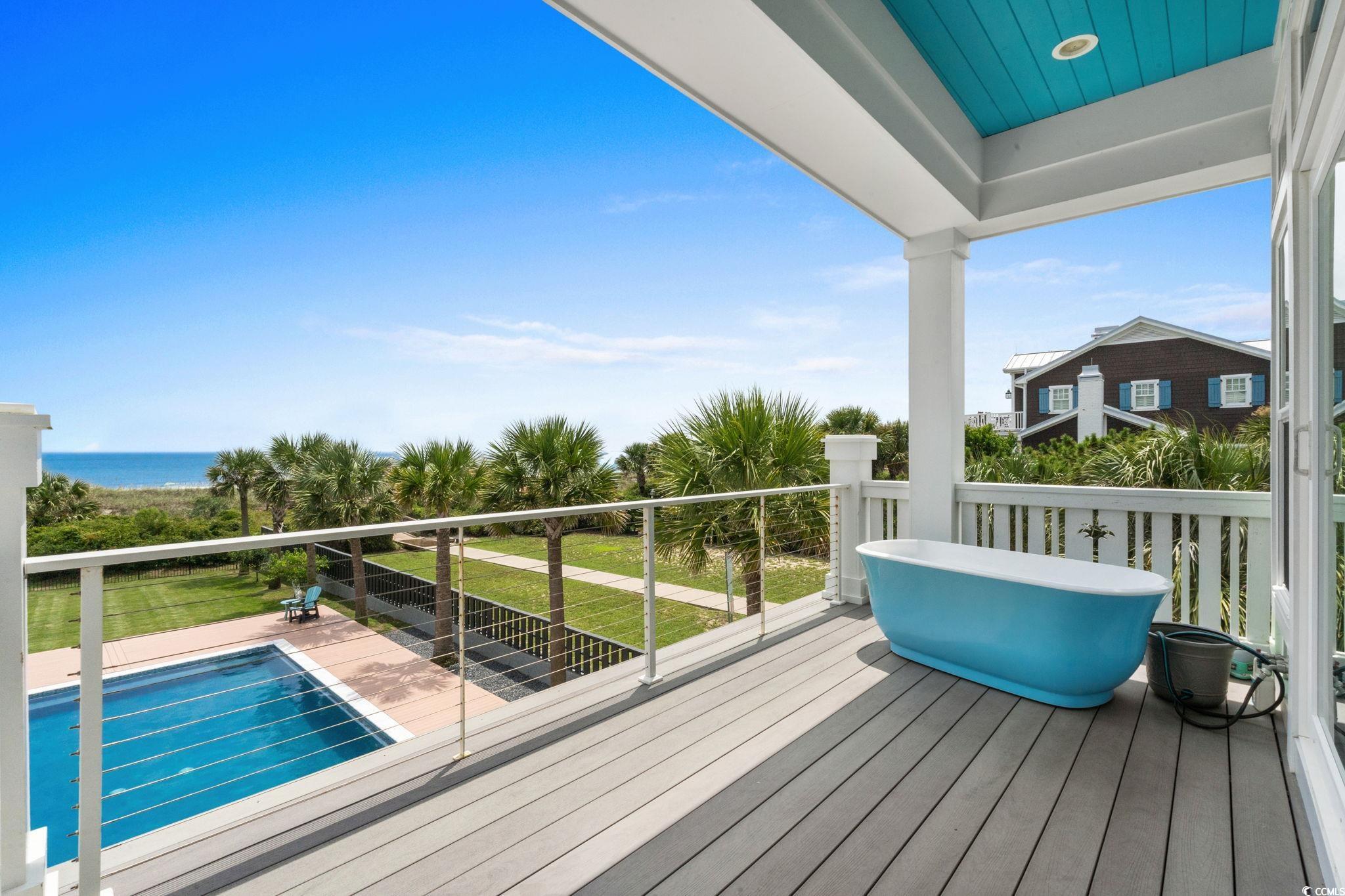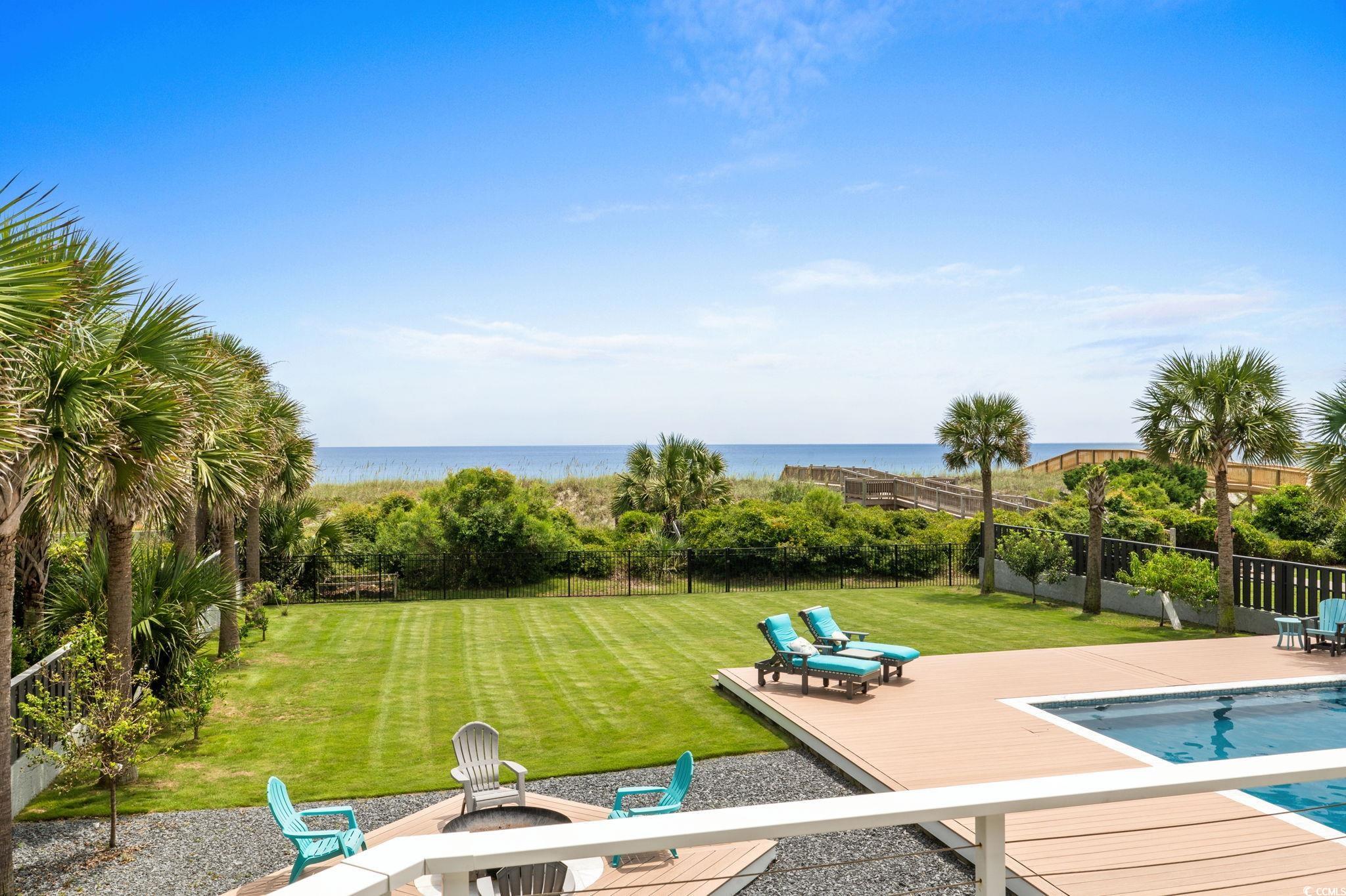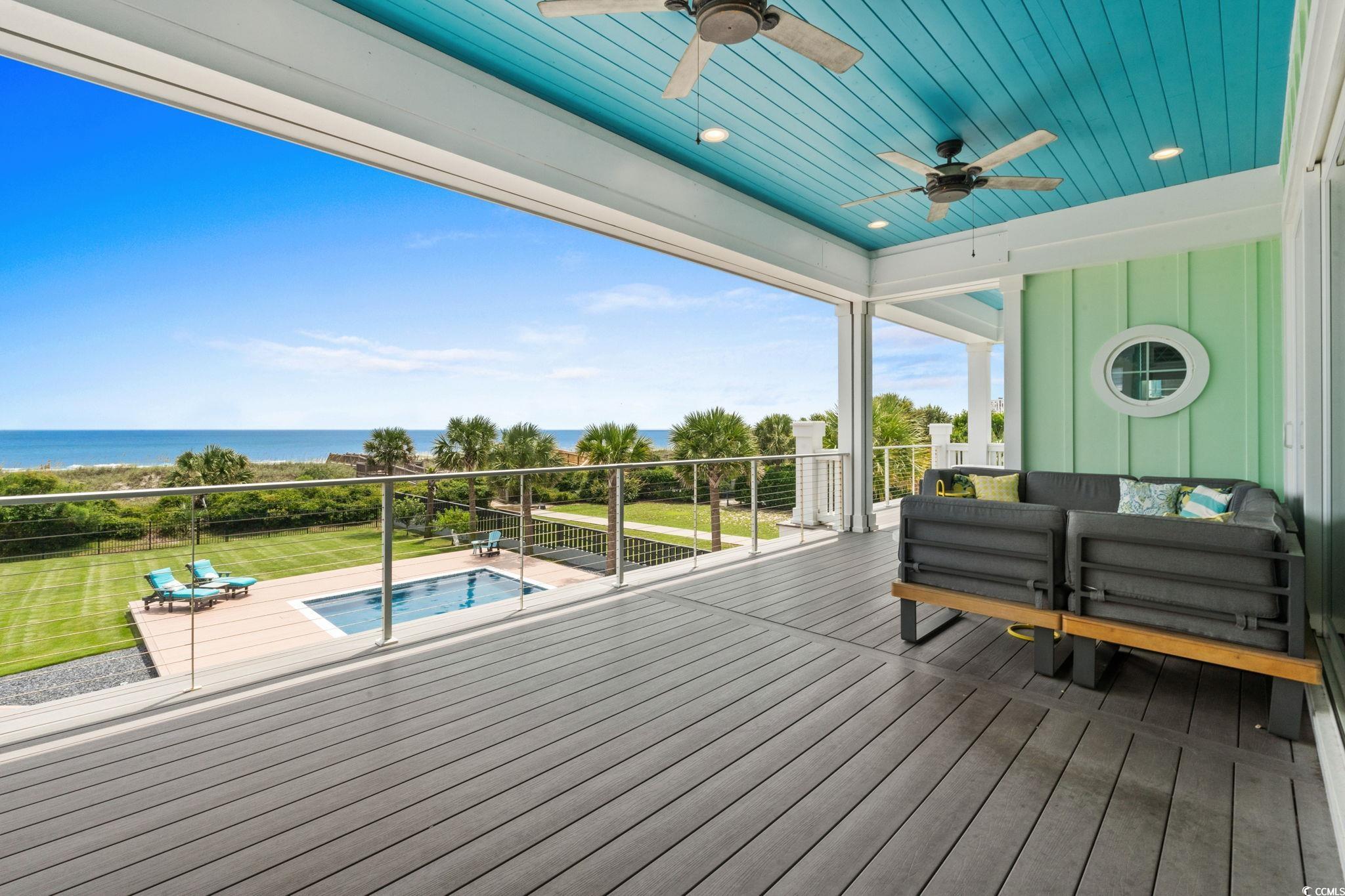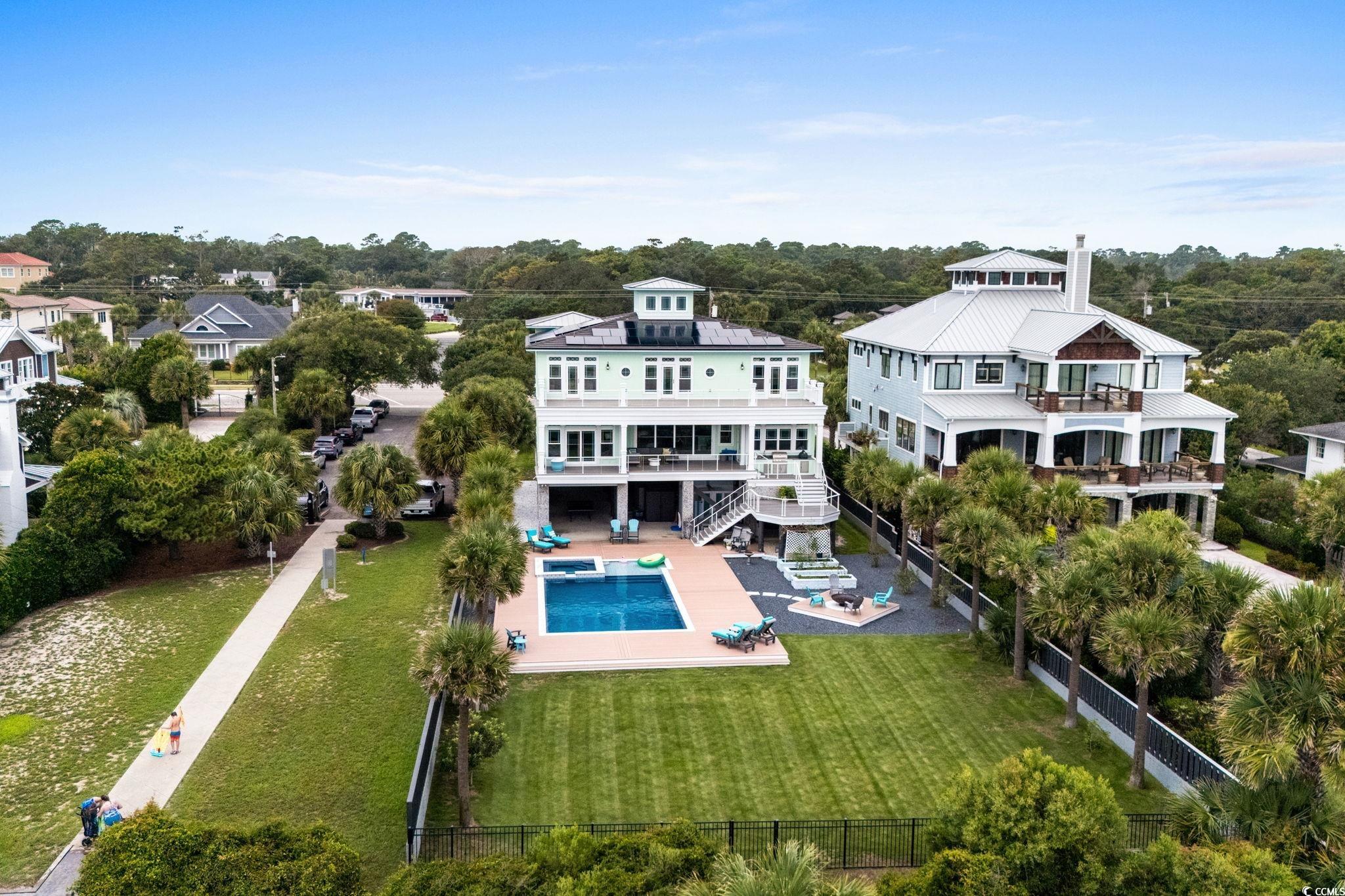 If you have ever dreamed of oceanfront ownership then this signature masterpiece is now available. An ocean lover's paradise nestled on over half an acre on one of the most sought after stretches of beach on the Eastern seaboard. This stunning custom built 5 bedroom, 5.5 bathroom house is only 5 years old and a treasure trove of luxury, elegance, and breathtaking ocean views. Architecturally striking and built like a fortress, this one is loaded with everything you can imagine, featuring hurricane-proof windows, a 100-year concrete tile roof, and a 21kW solar panel system, stucco and Hardi plank siding, decking made from low heat composite boards, whole home water softener system, and so much more. Inside, eclectic finishes and exposed wood beams bring warmth and character to the airy interiors. The living room’s gas-vented fireplace creates a warm focal point for gathering, while expansive balconies and a large oceanfront patio offers breathtaking spaces for dining, lounging, and savoring the sea breeze. The details are amazing, 120 gallon saltwater fish tank, 3 washer dryer rooms, must see 3rd floor cupola with 360 degree windows, all 5 bathrooms have heated floors!! The list goes on and on. Thoughtfully designed for both relaxation and entertainment, the home includes a dedicated media room with reclining seats, 5.4 Dolby surround sound and a 120' projection screen for cinematic experiences. The ground level garage provides parking for 6, ample storage, a full workshop, a 30-amp RV outlet, and wiring for an 80-amp EV charger—perfect for modern coastal living. Outside, the oceanfront lifestyle unfolds with a private saltwater pool, multiple decks for sunrise coffee, Summer kitchen area to die for, blaze grill and X-Large Green Egg included and direct beach access for barefoot escapes. This is more than a home—it is a statement of elegance, privacy, and the art of living well by the water. Don't miss the chance to own this extraordinary beachfront gem on Myrtle Beach’s golden coast. Embrace the essence of coastal living at 4900 N. Ocean Blvd., where luxury meets the ocean's edge.