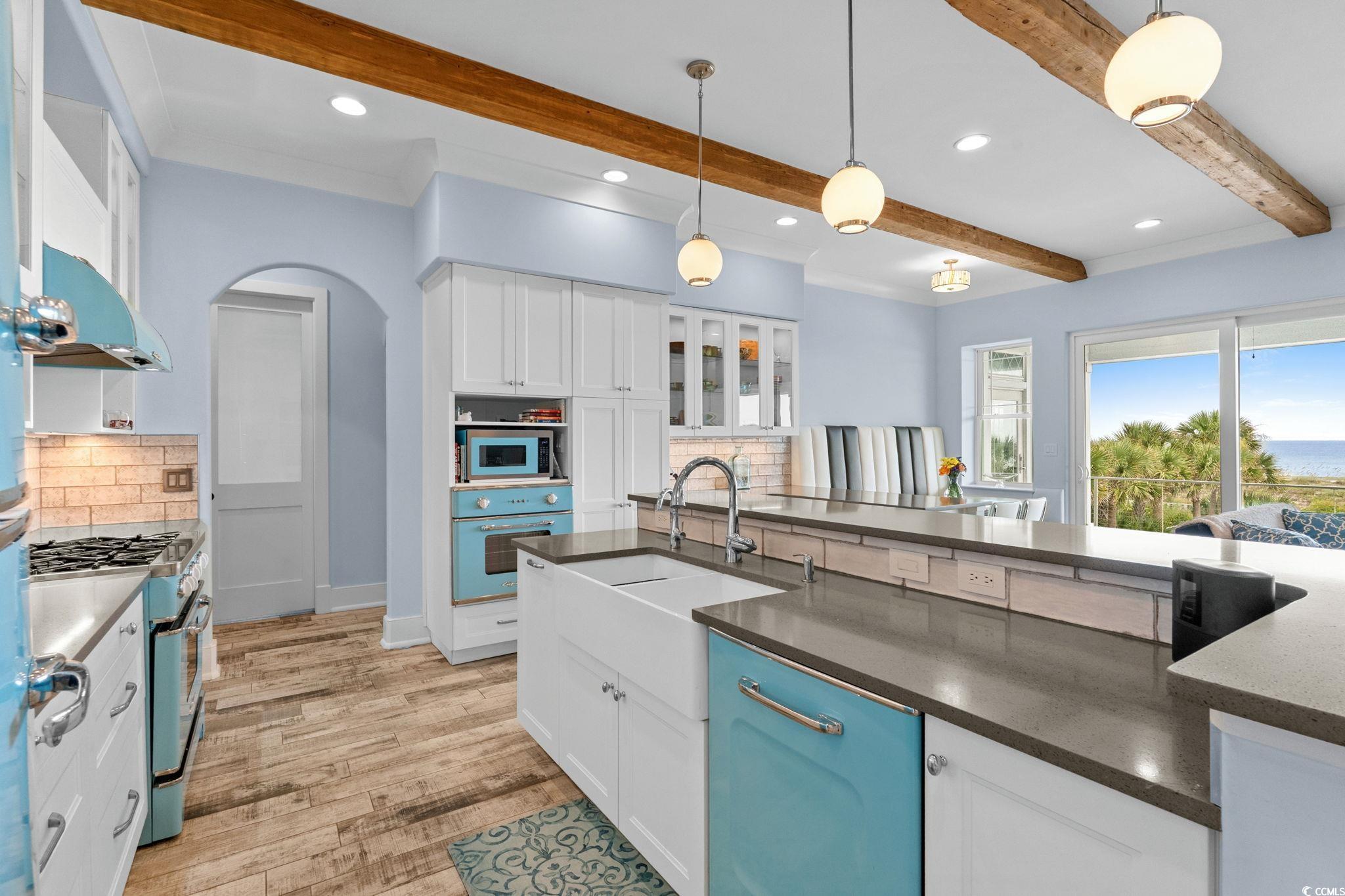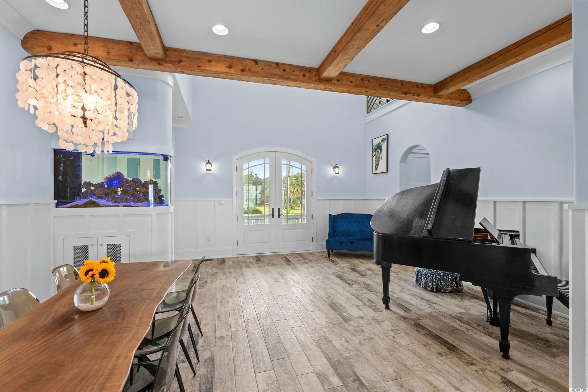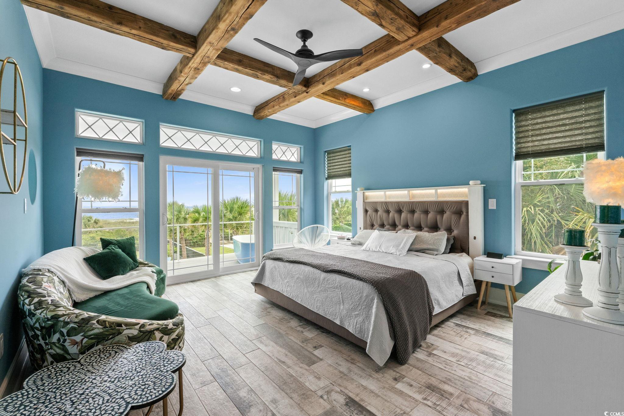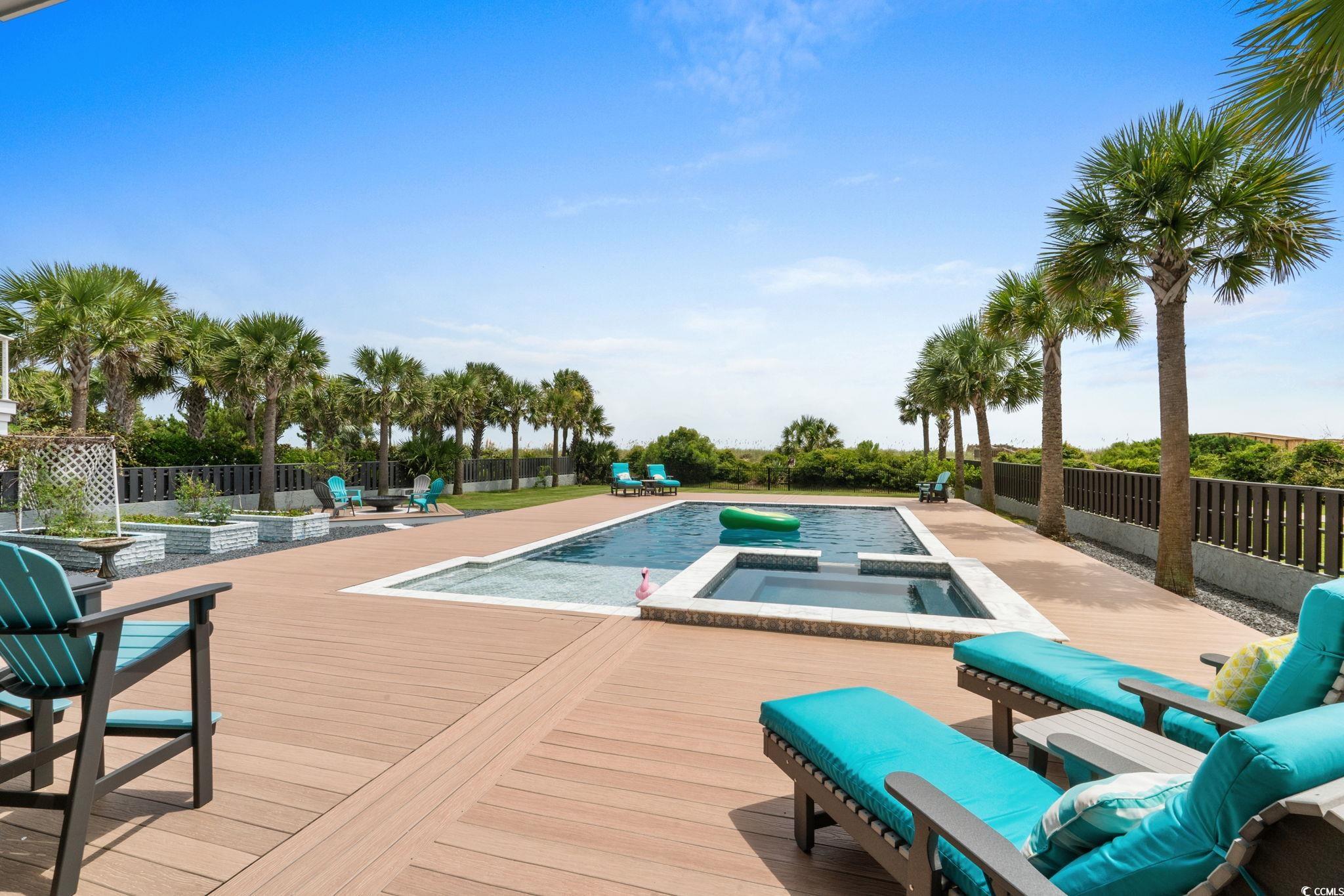 If you have ever dreamed of oceanfront ownership then this signature masterpiece is now available. An ocean lover's paradise nestled on over half an acre on one of the most sought after stretches of beach on the Eastern seaboard. This stunning custom built 5 bedroom, 5.5 bathroom house is only 5 years old and a treasure trove of luxury, elegance, and breathtaking ocean views. Architecturally striking and built like a fortress, this one is loaded with everything you can imagine, featuring hurricane-proof windows, a 100-year concrete tile roof, and a 21kW solar panel system, stucco and Hardi plank siding, decking made from low heat composite boards, whole home water softener system, and so much more. Inside, eclectic finishes and exposed wood beams bring warmth and character to the airy interiors. The living room’s gas-vented fireplace creates a warm focal point for gathering, while expansive balconies and a large oceanfront patio offers breathtaking spaces for dining, lounging, and savoring the sea breeze. The details are amazing, 120 gallon saltwater fish tank, 3 washer dryer rooms, must see 3rd floor cupola with 360 degree windows, all 5 bathrooms have heated floors!! The list goes on and on. Thoughtfully designed for both relaxation and entertainment, the home includes a dedicated media room with reclining seats, 5.4 Dolby surround sound and a 120' projection screen for cinematic experiences. The ground level garage provides parking for 6, ample storage, a full workshop, a 30-amp RV outlet, and wiring for an 80-amp EV charger—perfect for modern coastal living. Outside, the oceanfront lifestyle unfolds with a private saltwater pool, multiple decks for sunrise coffee, Summer kitchen area to die for, blaze grill and X-Large Green Egg included and direct beach access for barefoot escapes. This is more than a home—it is a statement of elegance, privacy, and the art of living well by the water. Don't miss the chance to own this extraordinary beachfront gem on Myrtle Beach’s golden coast. Embrace the essence of coastal living at 4900 N. Ocean Blvd., where luxury meets the ocean's edge.