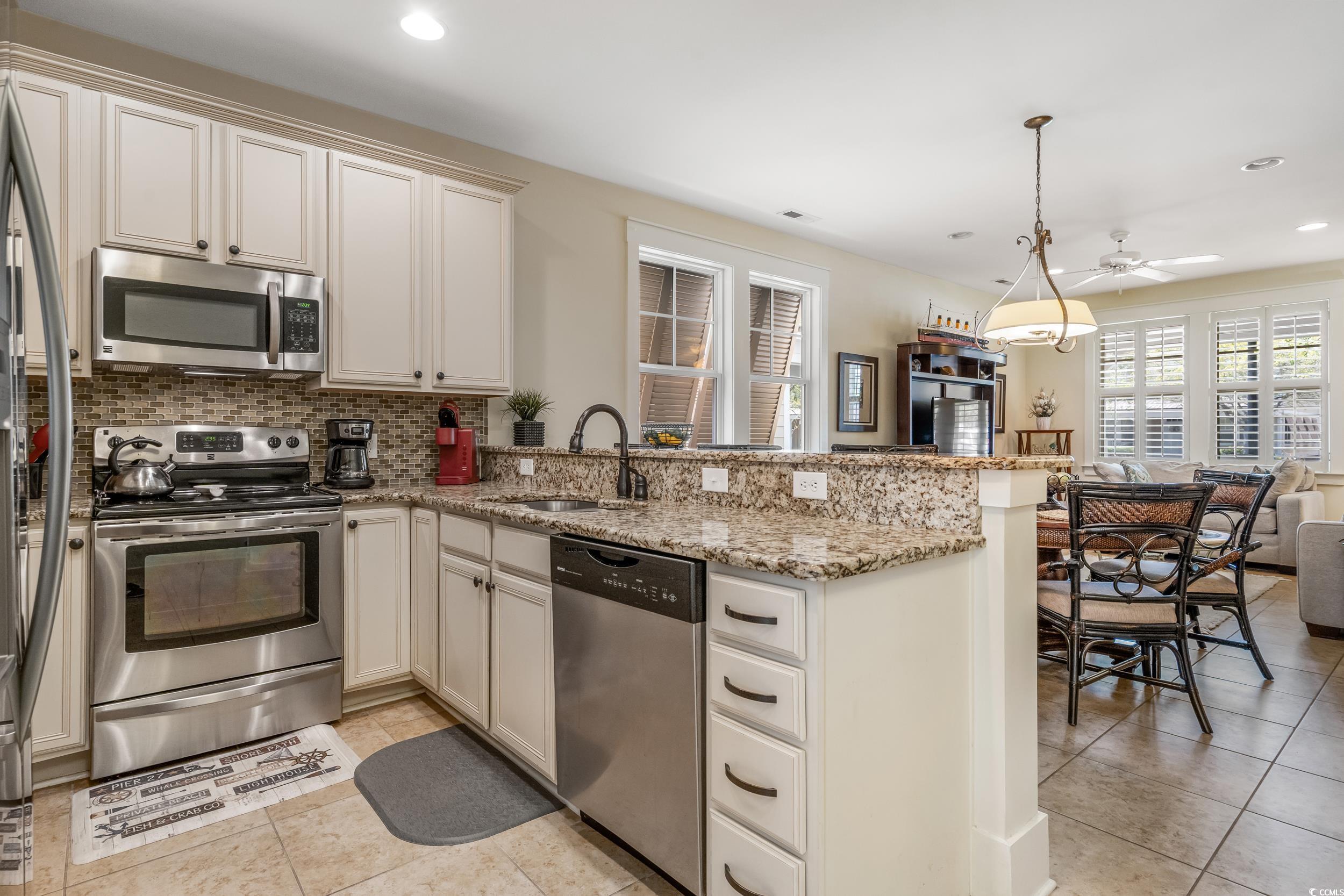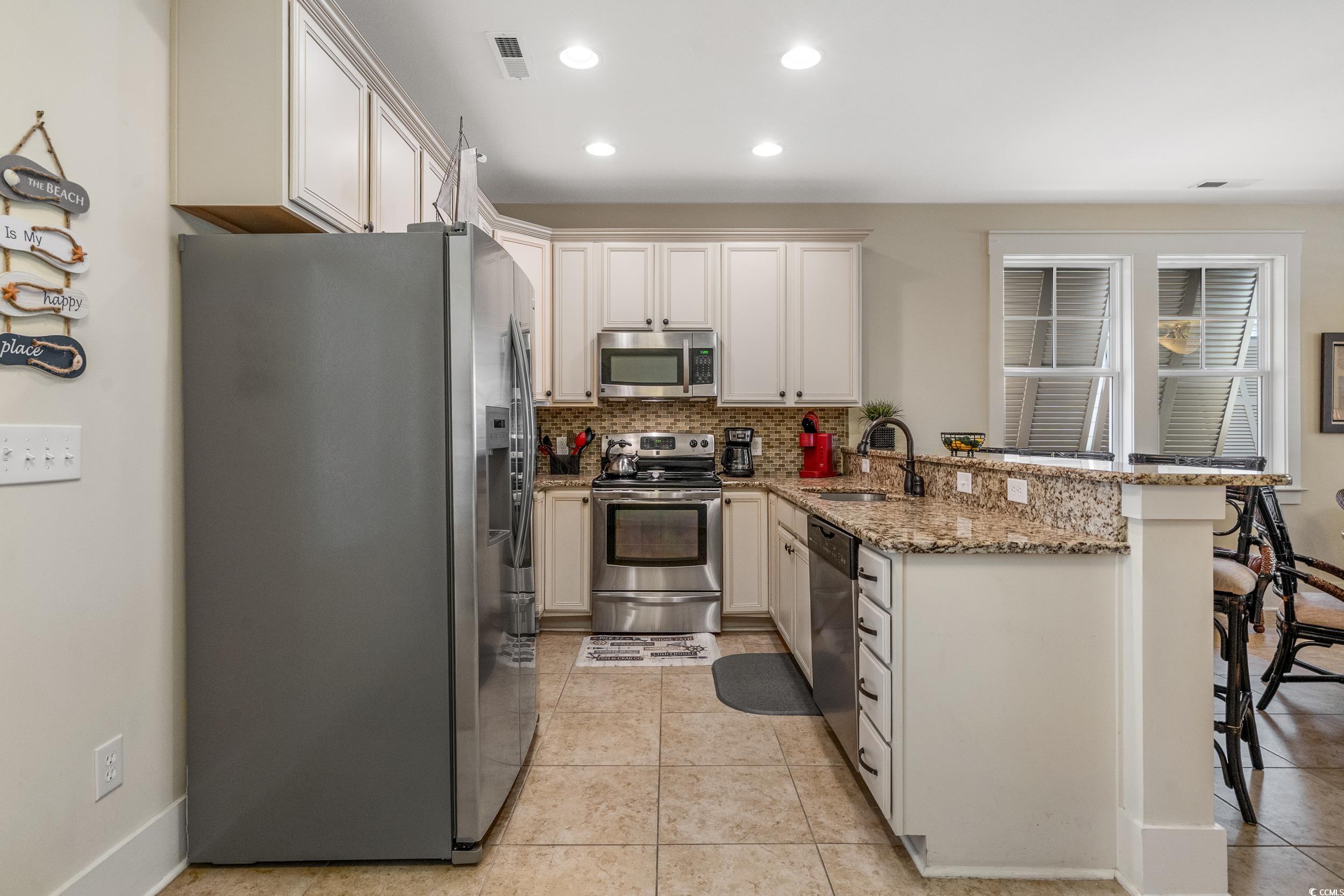 Beautifully furnished 3 BR/2.5BA townhome with a private courtyard, 2-car garage and plantation shutters throughout. Spacious main level boasts a family room adjacent to the kitchen, with its large breakfast bar, granite countertops, and stainless steel appliances. Master bedroom features a tiled shower and double sinks with granite, while the secondary bedrooms offer plenty of room with storage. Enjoy the tranquility of your personal courtyard, with a covered lanai and brick pavers that give access to your personal 2-car garage. North Beach Plantation is a 60 acre oceanfront development with a 2.5 acre pool with swim up bar, 8 pools, 5 hot tubs , lazy river, world class spa, fitness center, shuttle, security and 3 onsite restaurants. Don't miss this one!