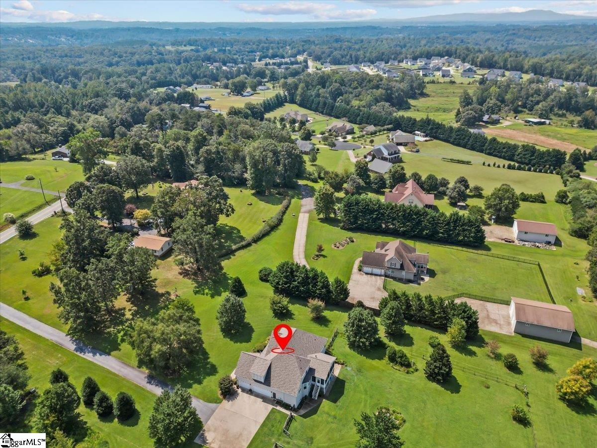 The mountain views, as you come down the driveway, set the tone for looking at this amazing home! BUILT IN 2009, this 5 BEDROOM, 3.5 BATH HOME with a 3 CAR GARAGE is sited on 2.25 ACRES with BREATHTAKING MOUNTAIN VIEWS! A WIDE CONCRETE WALKWAY leads you to the ROCKING CHAIR FRONT PORCH. Step into the FOYER, where to your right you’ll find the FORMAL DINING ROOM with an OCTAGON-SHAPED TRAY CEILING, WAINSCOTTING, and CROWN MOLDINGS. To the left is a versatile BEDROOM/NURSERY/OFFICE with access to a FULL BATH. Straight ahead, the 2 STORY LIVING ROOM showcases a GAS LOG FIREPLACE and opens to the BREAKFAST AREA overlooking the MOUNTAINS and BACK YARD. The CHEF’S KITCHEN boasts GRANITE COUNTERS, a WALK-IN PANTRY, and WARM CHESTNUT CABINETRY. The MAIN LEVEL PRIMARY SUITE offers a TRAY CEILING, DUAL VANITIES, a JETTED TUB, a SEPARATE SHOWER, and a WALK-IN CLOSET. Enjoy year-round comfort in the HEATED AND COOLED GLASSED-IN PORCH, the perfect spot to relax or entertain. Upstairs, a LOFT AREA overlooks the living room and leads to 3 BEDROOMS with a JACK & JILL BATH. Don’t miss the WALK-IN STORAGE AREA under the home—FULLY CONCRETED and offering INCREDIBLE STORAGE SPACE! Additional highlights include 2 ACRES IRRIGATED BY WELL, with CITY WATER also available. As you leave, be sure to check out the view of the horse farm across Jordan Road, should you choose to develop that area.