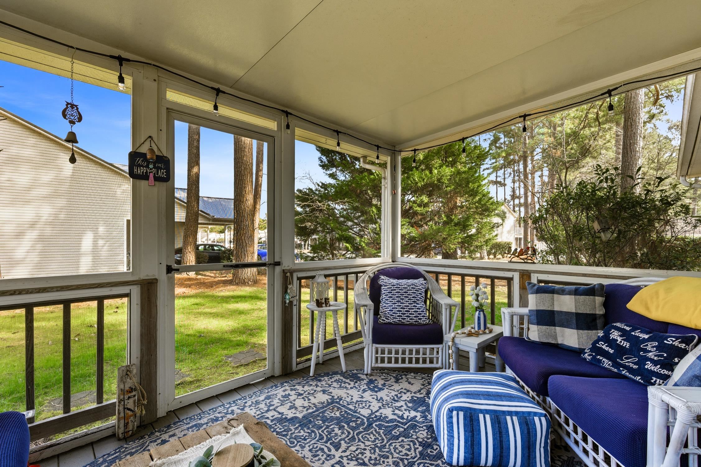 This beautifully maintained 3-bedroom, 2-bath one-story home sits on a corner lot with tee box views of the Colonial Charters Golf Club! This home offers a warm, open layout with a peaceful feel throughout. Features include laminate wood, tile and carpet flooring, a bright Carolina room with chair railing, and a screened-in back porch ideal for relaxing or entertaining. The upgraded kitchen offers ample cabinet and counter space, a pantry, stainless steel smooth-top range, built-in microwave, dishwasher and a comfortable dining area. The primary suite features vaulted ceilings, a walk-in closet, and private bath with dual sinks and walk in shower. Complete with a two-car garage and patio space, this home is conveniently located near beaches, golf, shopping, dining, and all the everyday essentials along the Grand Strand. Don't Delay! Call today to arrange a private tour!