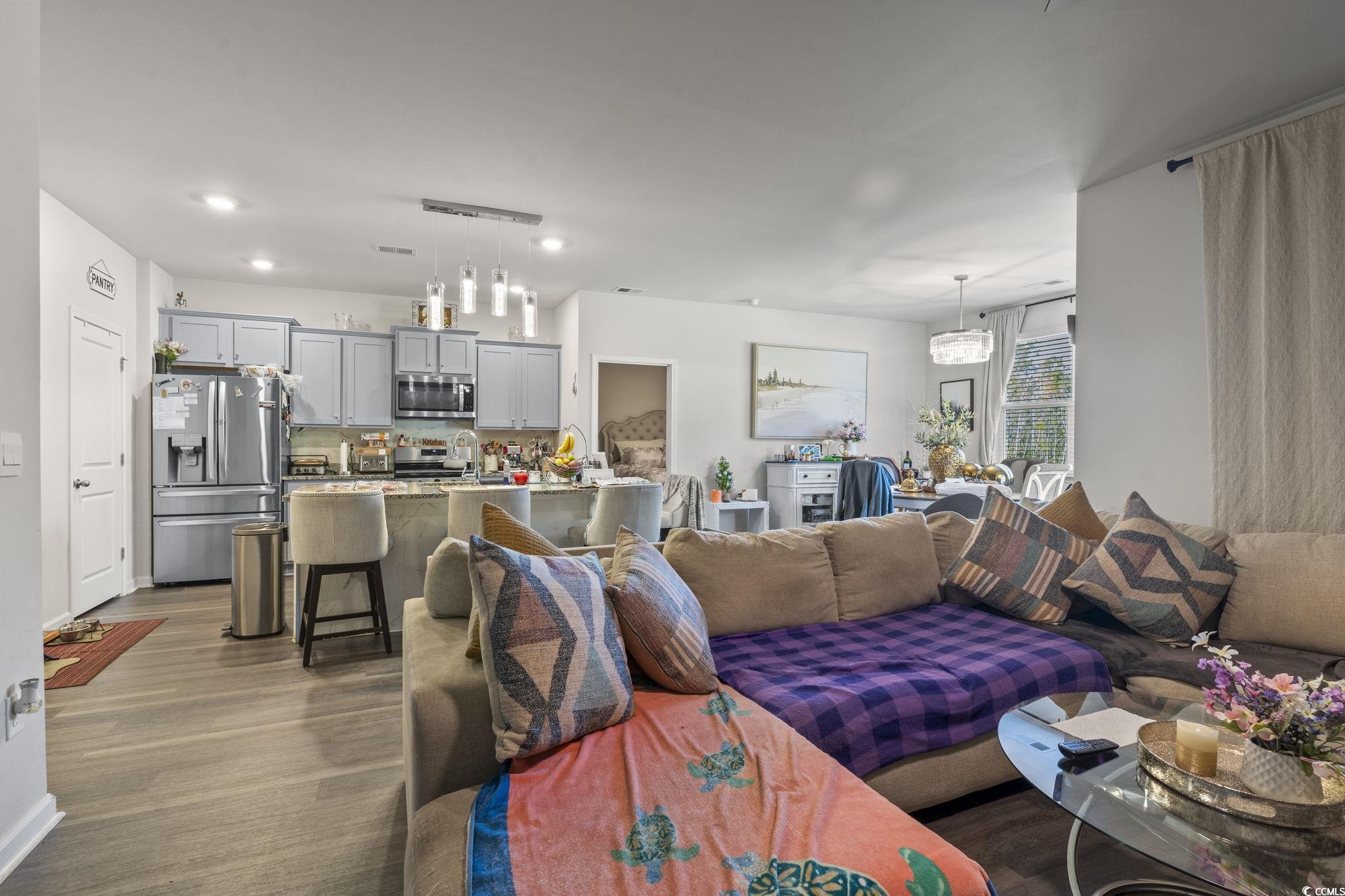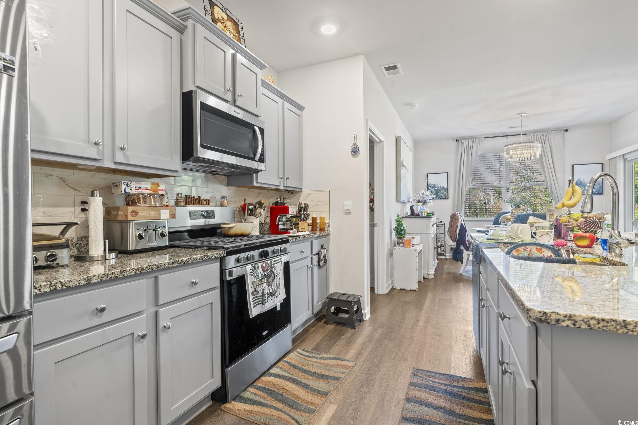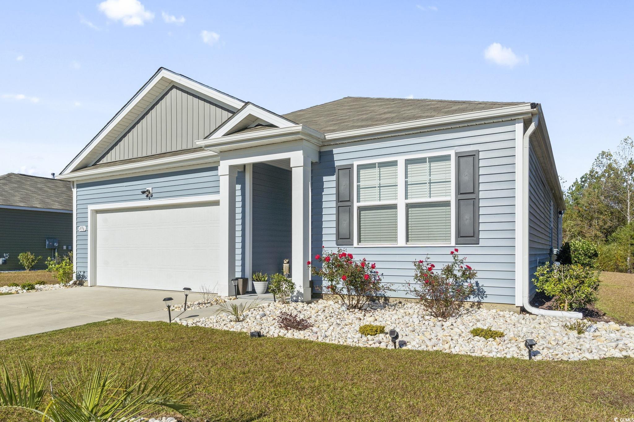 Welcome to this beautiful 3-bedroom, 2-bath single-story home built in 2023, located in the peaceful community of Olde Mill off Hwy 90. This open-concept Aria floor plan offers 1,618 heated square feet of modern living space designed for comfort and style. The kitchen features granite countertops, 36" cabinets, stainless steel appliances, a gas range, and a large island perfect for meal prep or entertaining. Luxury vinyl plank flooring flows throughout the main living areas, complemented by newly added light fixtures in the hall and living spaces for an elegant touch. Ceiling fans have been thoughtfully installed throughout the home, including all bedrooms, ensuring year-round comfort. The spacious primary suite includes a walk-in closet and a double-sink vanity. Step outside to relax on the rear porch overlooking your private, wooded backyard an ideal retreat for peaceful mornings or quiet evenings. This Smart Home includes advanced features for convenience, efficiency, and security, allowing you to manage your home systems with ease. Conveniently located near Hwy 31, Hwy 22, and International Drive, this home offers quick access to beaches, shopping, and dining. Schedule your showing today.