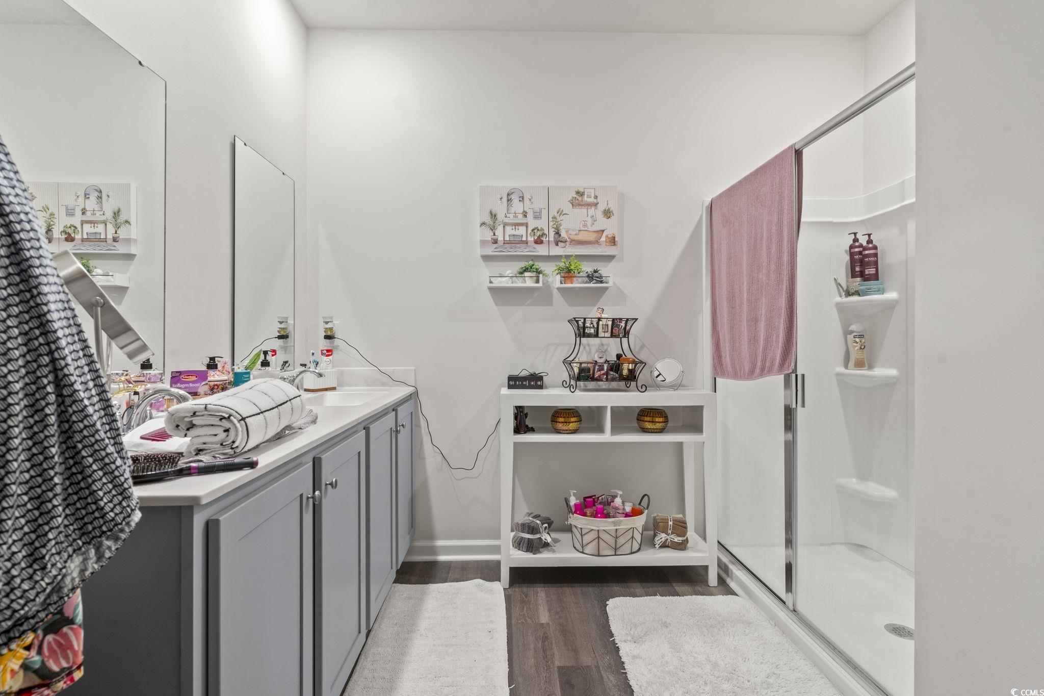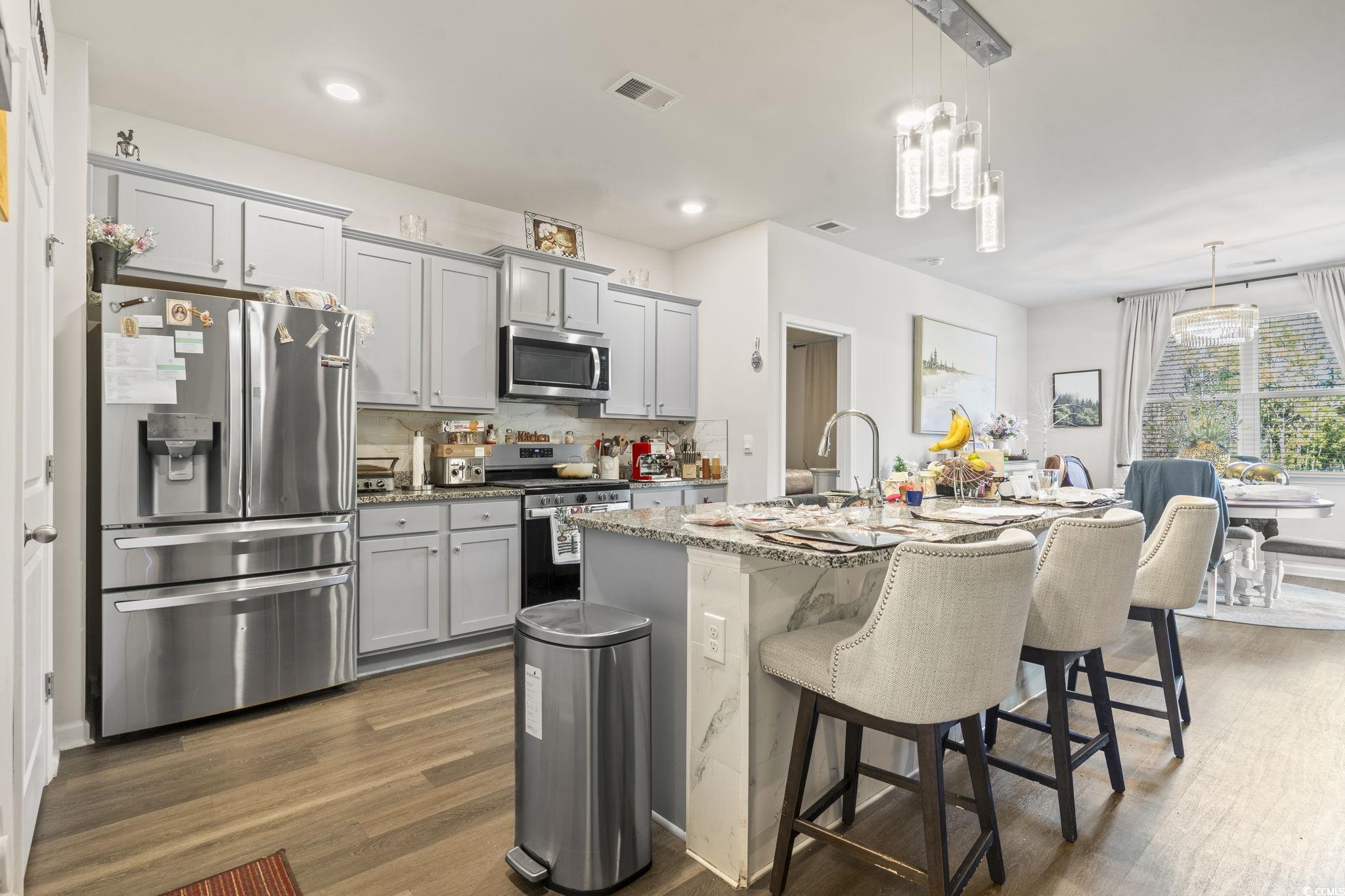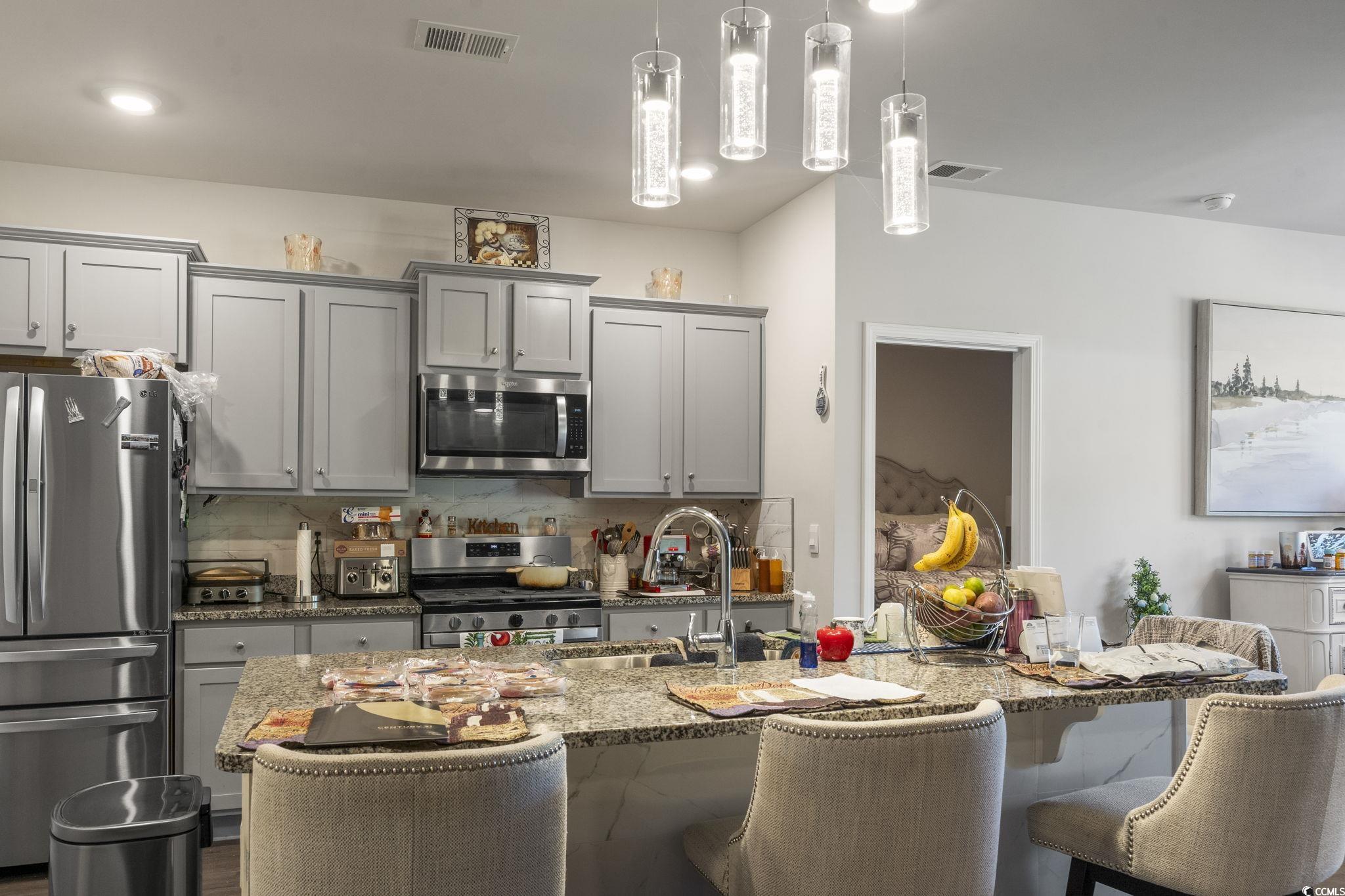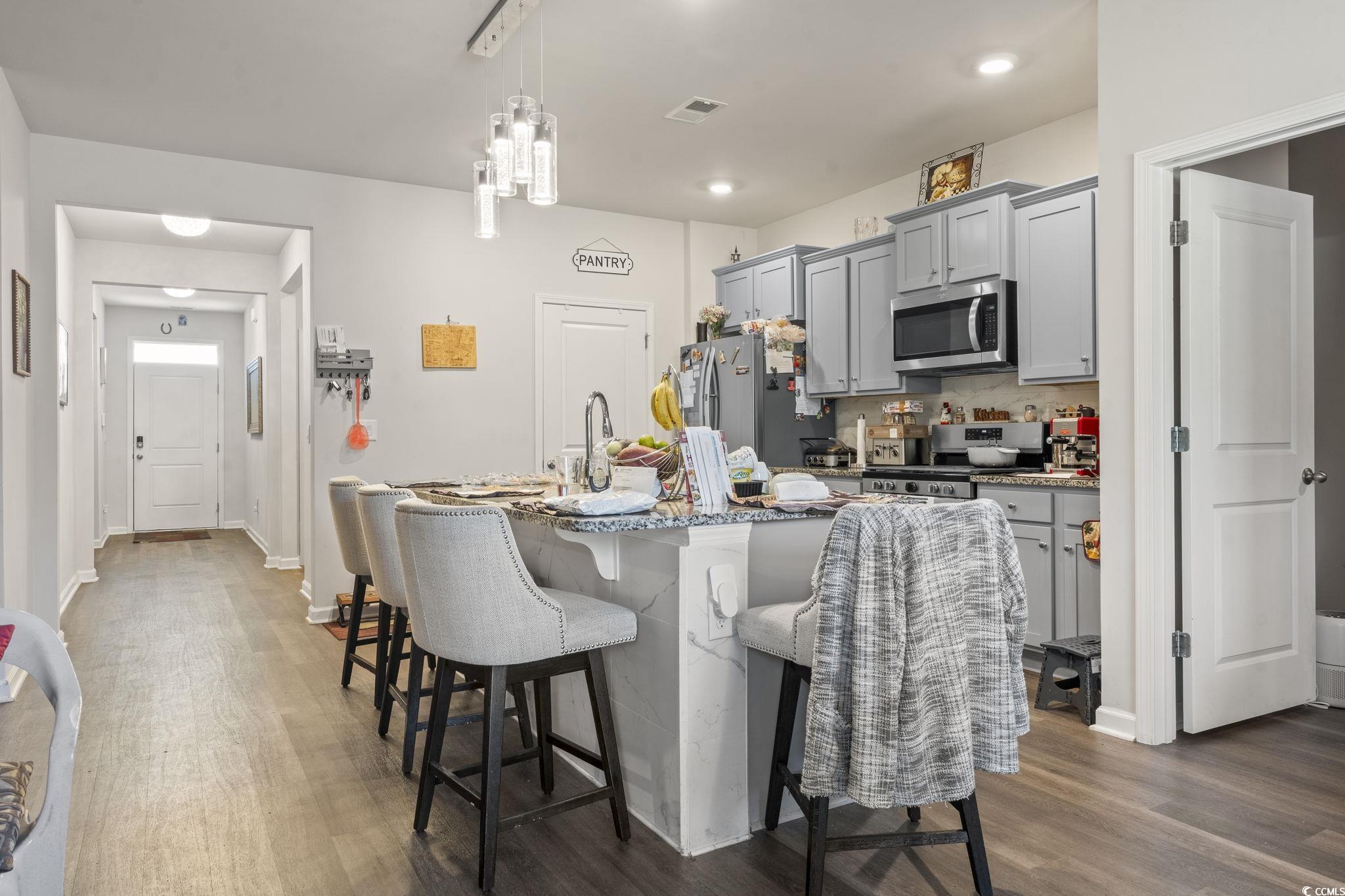 Welcome to this beautiful 3-bedroom, 2-bath single-story home built in 2023, located in the peaceful community of Olde Mill off Hwy 90. This open-concept Aria floor plan offers 1,618 heated square feet of modern living space designed for comfort and style. The kitchen features granite countertops, 36" cabinets, stainless steel appliances, a gas range, and a large island perfect for meal prep or entertaining. Luxury vinyl plank flooring flows throughout the main living areas, complemented by newly added light fixtures in the hall and living spaces for an elegant touch. Ceiling fans have been thoughtfully installed throughout the home, including all bedrooms, ensuring year-round comfort. The spacious primary suite includes a walk-in closet and a double-sink vanity. Step outside to relax on the rear porch overlooking your private, wooded backyard an ideal retreat for peaceful mornings or quiet evenings. This Smart Home includes advanced features for convenience, efficiency, and security, allowing you to manage your home systems with ease. Conveniently located near Hwy 31, Hwy 22, and International Drive, this home offers quick access to beaches, shopping, and dining. Schedule your showing today.