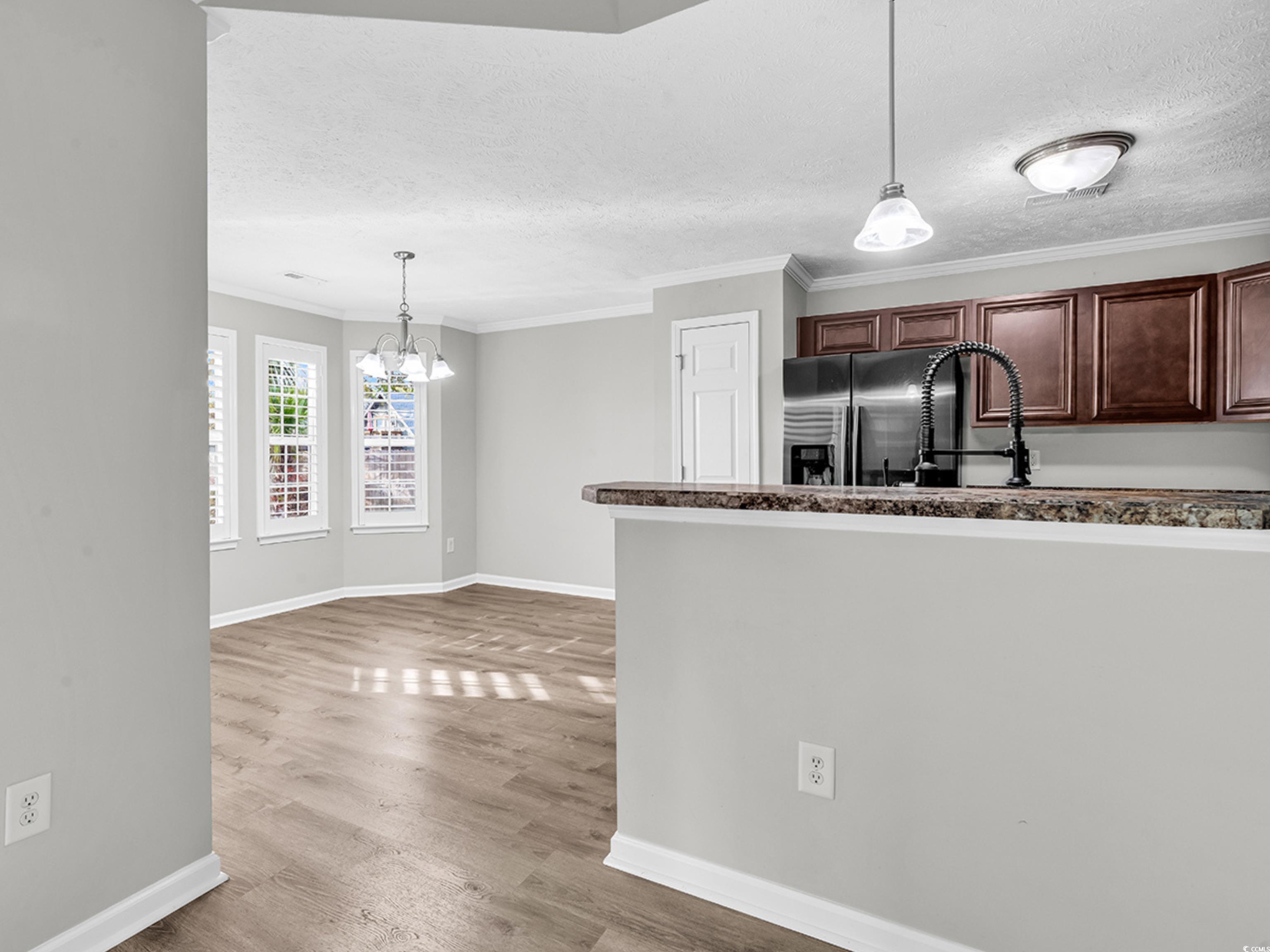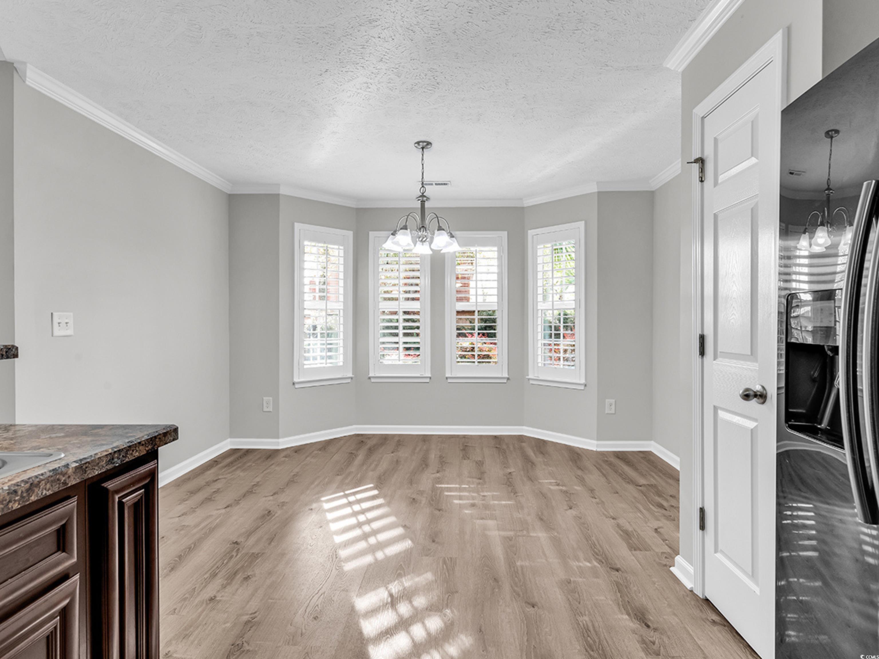 Coastal Charm in Murrells Inlet! No HOA, plenty of parking and spacious lot. This ranch-style home offers a split bedroom open floor plan with three bedrooms and two bathrooms - perfect for comfortable living. Inside, you'll find beautiful LVP flooring throughout and plantation shutters that bring in plenty of natural light. The living room features a tall vaulted ceiling that creates an open, airy feel. The primary bedroom provides a peaceful retreat, with two additional bedrooms for family or guests. Outside, enjoy the fenced backyard with a spacious patio - ideal for barbecues or morning coffee. The location is hard to beat! Close to the famous Murrells Inlet Marshwalk, public boat landing, local shops, grocery stores, and of course great local restaurants serving fresh seafood and offering amazing marsh views.