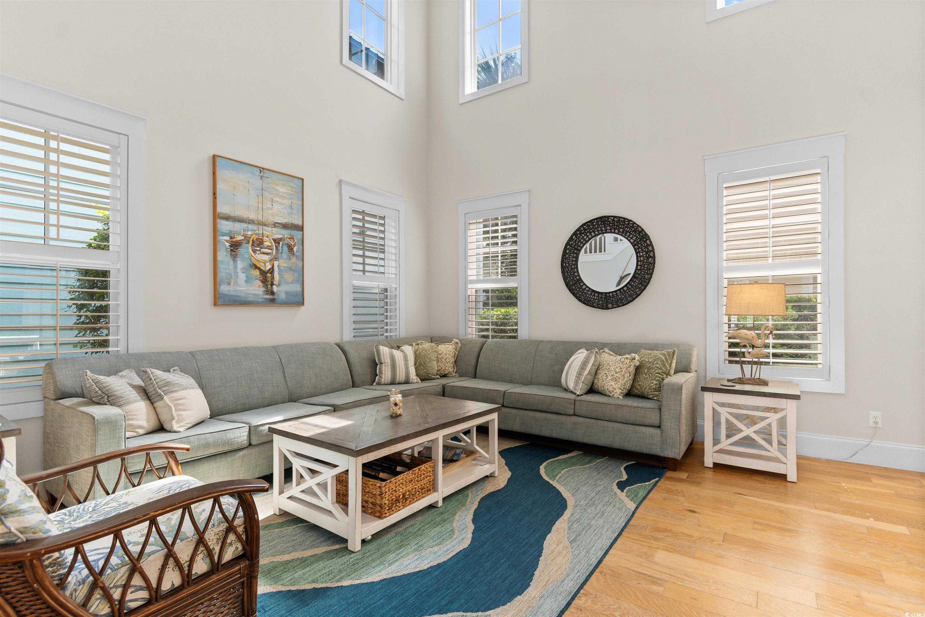 Located 0.3 miles from the beach and directly across from Barefoot Landing, this fully furnished 4-bedroom, 3-bath home with a 2-car garage offers the best of coastal living. Enjoy world-class resort-style amenities, including a 2.5-acre oceanfront pool complex with a lazy river and swim-up bar, eight pools, five hot tubs, the renowned Cinzia Spa, Beach Fit fitness center, dining, seasonal shuttle service, and security. Bright, open living areas feature soaring ceilings, abundant natural light, and beautiful hardwood flooring throughout the first floor. The living and dining areas flow seamlessly into the gourmet kitchen, equipped with granite countertops, stainless steel appliances, and upgraded cream-colored 42” cabinets. A sliding glass door opens to a covered patio and extended outdoor space, perfect for entertaining or relaxing in the coastal air. Finishing out the first floor, you’ll find a versatile bedroom with ensuite bath, ideal as a guest suite or flex space, along with the laundry room. Upstairs, the spacious primary suite includes a private sitting area, a large walk-in closet, and a spa-inspired bath with tiled shower and soaking tub. Two additional bedrooms and another full bath with tiled shower complete the second level, with comfortable carpeting throughout. With its prime location, furnished convenience, and flexible layout, this home is an exceptional choice as a full-time residence, vacation retreat, or investment property in one of the Grand Strand’s most sought-after communities. Schedule a private showing today to experience everything this home and North Beach Plantation have to offer!