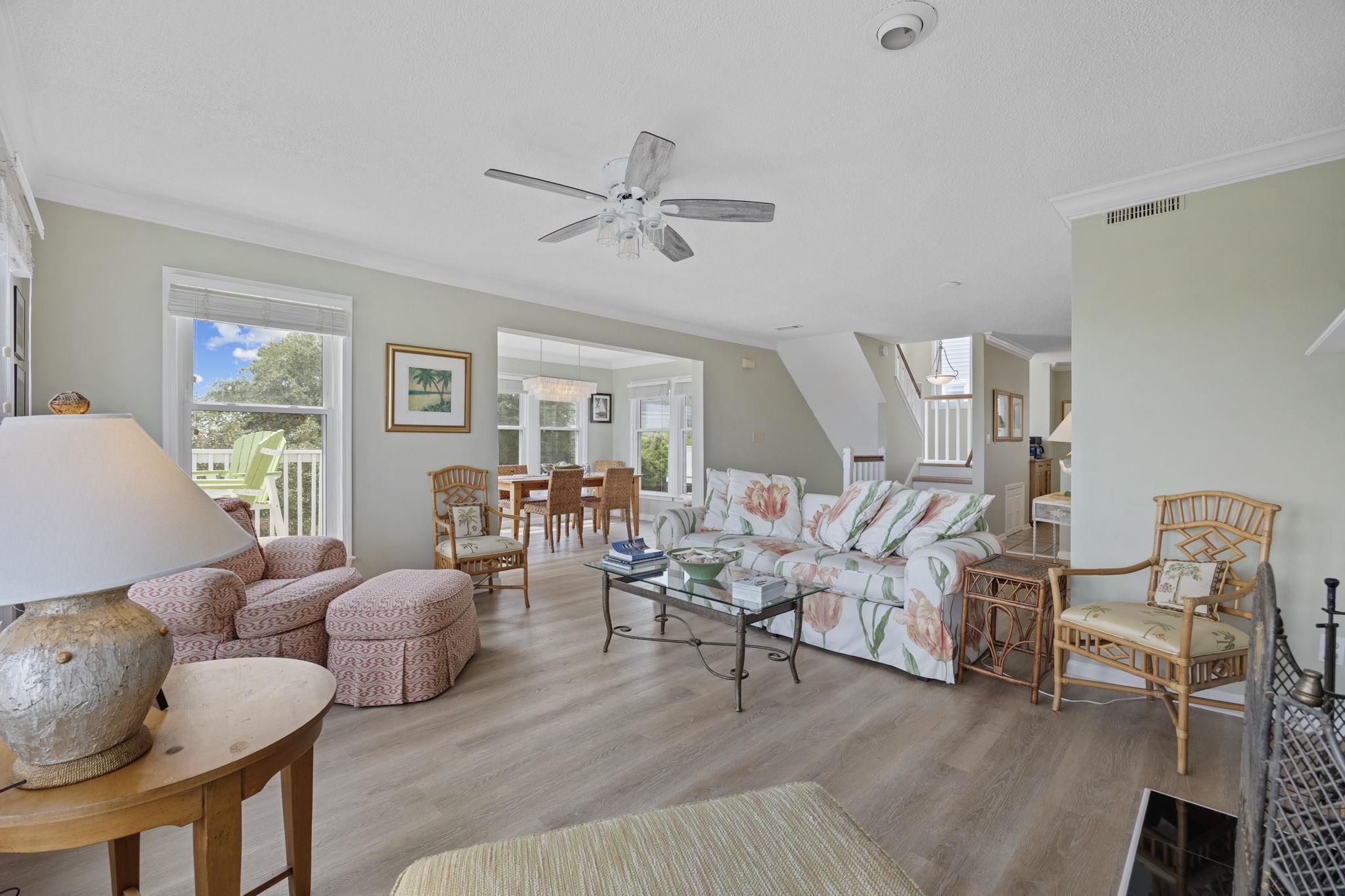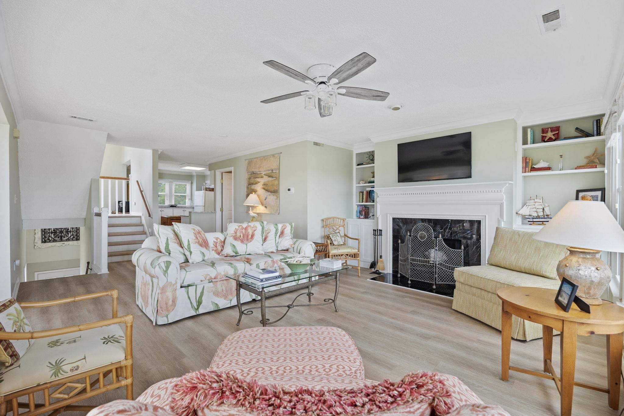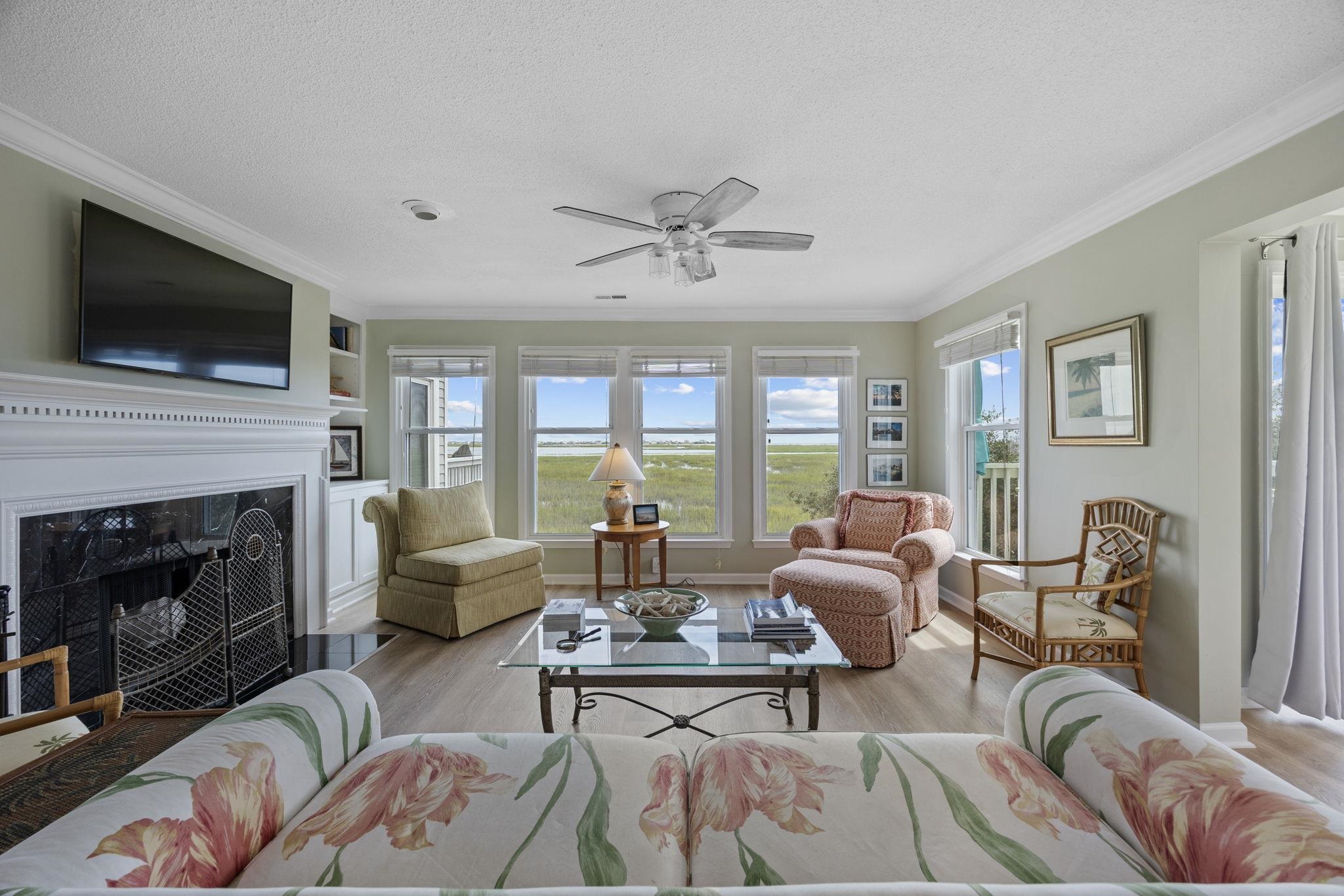 Welcome to this raised beach house style, 3-level end-unit condo in the desirable Blue Heron community of Murrells Inlet. Offering 3 bedrooms and 2.5 baths, this spacious, fully furnished corner unit showcases breathtaking marsh views from multiple vantage points. As you step inside, you’re greeted by a foyer with a coat closet, setting the tone for the thoughtful details throughout. The light-filled living room features crown molding, custom built-in shelves, and a cozy fireplace, while the dining room boasts sliders leading to a rear balcony, perfect for enjoying the coastal breeze. You'll find a half bath that includes the convenience of a laundry room, making everyday living effortless. Upstairs, the primary suite impresses with vaulted ceilings, ample windows, and a bathroom that separates the vanity from the toilet and shower for added functionality. Two additional bedrooms on the third floor share a full bath, offering plenty of space for family or guests. With carpeting in the bedrooms, abundant windows, and natural light throughout, this home radiates warmth and comfort. Outside, residents enjoy private storage under the building, a community pool, and a community grill for outdoor gatherings. Combining coastal charm with a prime location, this condo delivers the ideal balance of comfort, convenience, and lifestyle, whether as a primary residence, second home, or investment property.