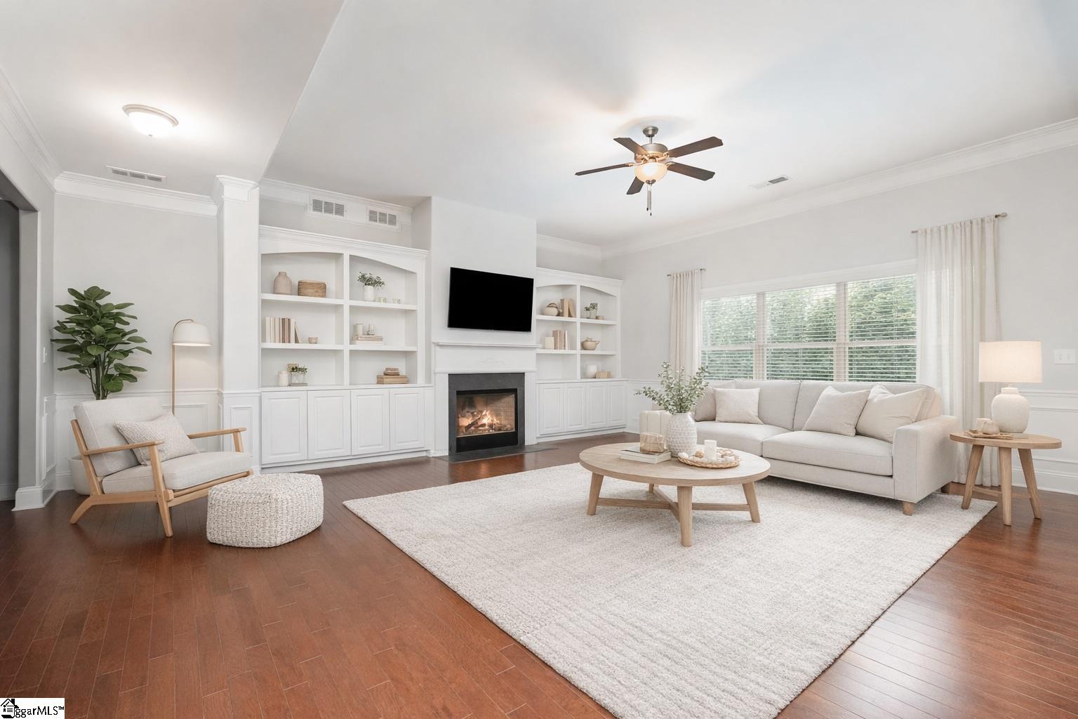 With 6 bedrooms, 3.5 baths, more than 4,100 square feet, a primary suite on the main floor, and Wren schools in the gated Airy Springs community, this truly special home blends elegance and comfort in a way that feels both luxurious and welcoming from the moment you arrive. A long stamped concrete driveway leads you to a beautiful brick, stone, and concrete siding home with manicured landscaping and timeless curb appeal. Step through the front door into a soaring two story foyer where the grand staircase, wainscoting, and rich flooring set the tone for the exceptional details throughout. To the right, a graceful arched opening leads into the formal dining room, where trey ceilings, tall wainscoting, and wide crown molding set a tone of refined luxury. From here, the dining room transitions seamlessly into the open concept kitchen and living area. Imagine mornings in the stunning kitchen, sunlight pouring across the granite countertops as you sip coffee at the large island surrounded by warm espresso cabinetry and stainless appliances. Conversations carry into the bright breakfast area and the spacious living room where tall windows lookout to peaceful views of mature trees. A stunning gas fireplace sits between floor-to-ceiling built-in bookcases and bathes the space in warmth. Whether you are gathered for a quiet night in or welcoming friends for a celebration, you will love the versatility of this open-concept main level. The main level primary suite feels like its own sanctuary with a peaceful sitting room and glow of your private fireplace. The spa style bath invites relaxing evenings with a deep soaking tub, spacious tiled shower, dual vanities, seated makeup area, and an oversized walk-in closet with generous space and his/her separation. Upstairs, the loft style media and recreation room offers endless possibilities with triple archways, a built in wet bar, and room for movie nights, game days, or a play and study space. 5 additional bedrooms and 2 bathrooms provide comfort and flexibility for family, guests, work, and hobbies. Outside, mature landscaping lines the back view that feels peaceful and inviting. Enjoy evenings on the covered patio perfect for grilling and entertaining. A 3 car garage and top tier neighborhood amenities including a large pool, ponds, and walking paths complete the setting. Homes like 5 Knob Creek Court are rare. Space to spread out, to gather, and a feeling that truly welcomes you home.