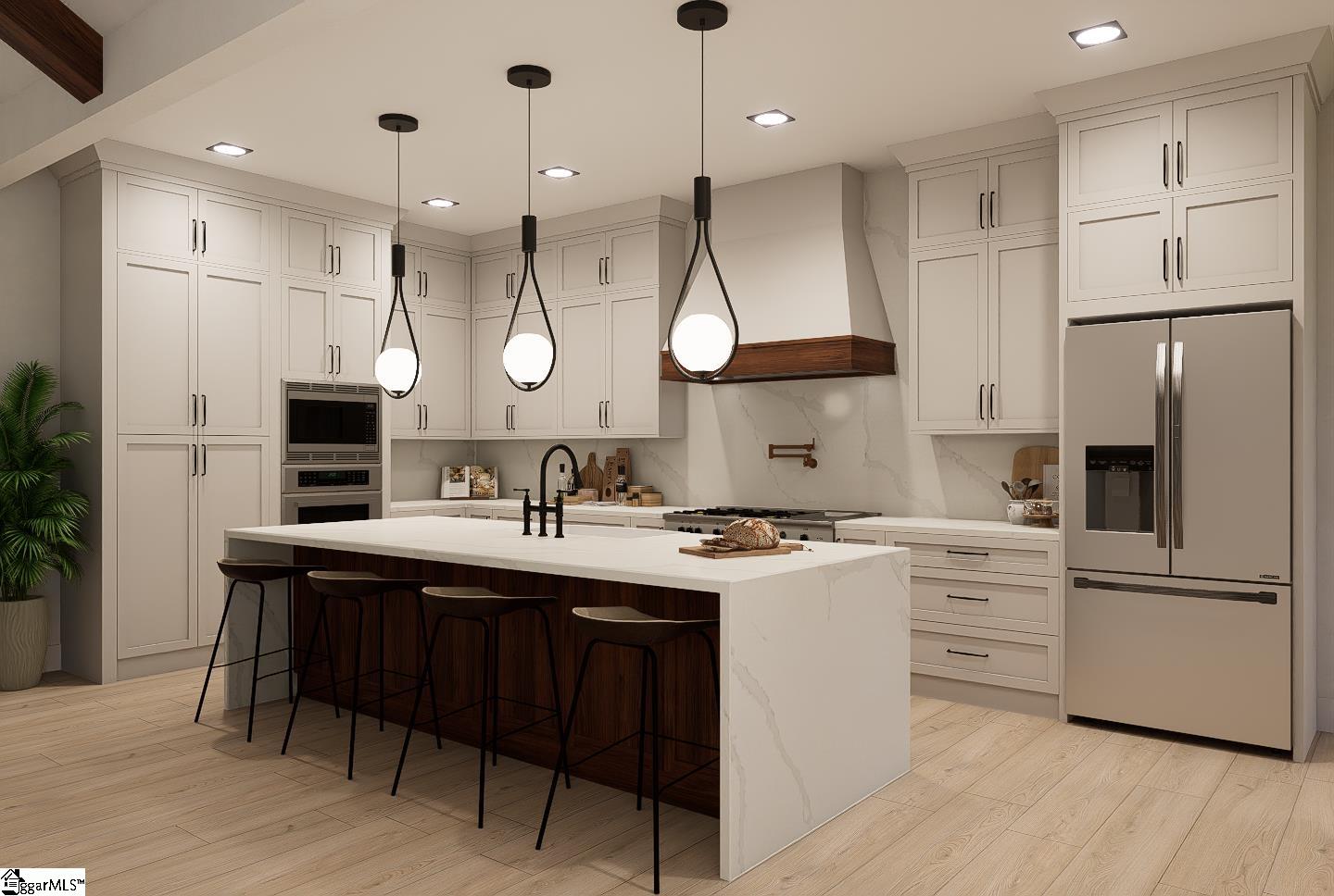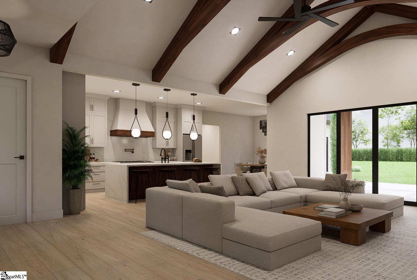 Mini farm freedom meets refined luxury at 5 Martin Road in Fountain Inn, SC—a rare 1.9-acre estate with no HOA, designed for those who want space, privacy, and the ability to build a lifestyle without compromise. Bring your horses, chickens, and vision. Located just minutes from downtown Fountain Inn and less than 25 minutes to downtown Greenville, this is where convenience meets open land. Farm board fencing is being added to create a cohesive, estate-style setting. 5 Martin Road offers approximately 3,782 square feet, 5 bedrooms, 4.5 bathrooms, a bonus room, and a three-car garage, with a layout designed to live well and entertain effortlessly. As you walk through the stained oak double front doors, the home draws up to 16-foot vaulted ceilings with striking A-frame exposed wood beams, anchored by a custom stucco fireplace with finished archway shelving and folding glass doors that extend the living space onto covered outdoor porches with tongue and groove wood ceilings and integrated lighting. The kitchen blends statement and utility with professional-grade gas stainless appliances with custom range hood, wall mounted oven, an oversized quartz waterfall island, custom cabinetry, and a huge hidden walk-in pantry with direct garage access, all conveniently connected to your formal dining room. The vaulted main-level owner’s suite is a true retreat, featuring custom trim work and a spa-inspired en-suite bathroom. The bath includes a fully tiled steam room with dual shower heads, a soaking tub within the enclosure, and backlit niches. Dual walk-in closets, each nearing 200 square feet, connect directly to a spacious laundry hall with custom cabinetry and a tiled pet washing station, all seamlessly tied into the mudroom with built-in storage. With four bedrooms on the main level, each with bathroom access, plus a dedicated large office flex room, an upstairs loft space with the fifth on-suite bedroom and full bath, the home offers both flexibility and privacy. 9-inch luxury vinyl plank flooring runs throughout, complemented by curated fixtures and finishes designed for long-term comfort and elevated everyday living. Enjoy some of the most beautiful sunset views in the Upstate from your vaulted covered porch outfitted with a dedicated gas grill line with public water and engineered septic already designed to support a future pool. This homesite is a true blank canvas—ready for a backyard oasis, garden, or fully realized mini farm. Preferred lender and attorney benefits available, upgraded features like outdoor fireplace, full pool buildout and detached buildings may be added - reach out to listing agent for more information. Built in partnership with the local and reputable Mark Thoennes Builders and Husky Builders, the expected completion is for late summer 2026. Available now for presale! *Access is by appointment only — contact the listing agent to schedule. Unauthorized entry is prohibited.* *Images shown are artistic renderings for illustrative purposes only. Final construction, materials, finishes, and site conditions may vary.*