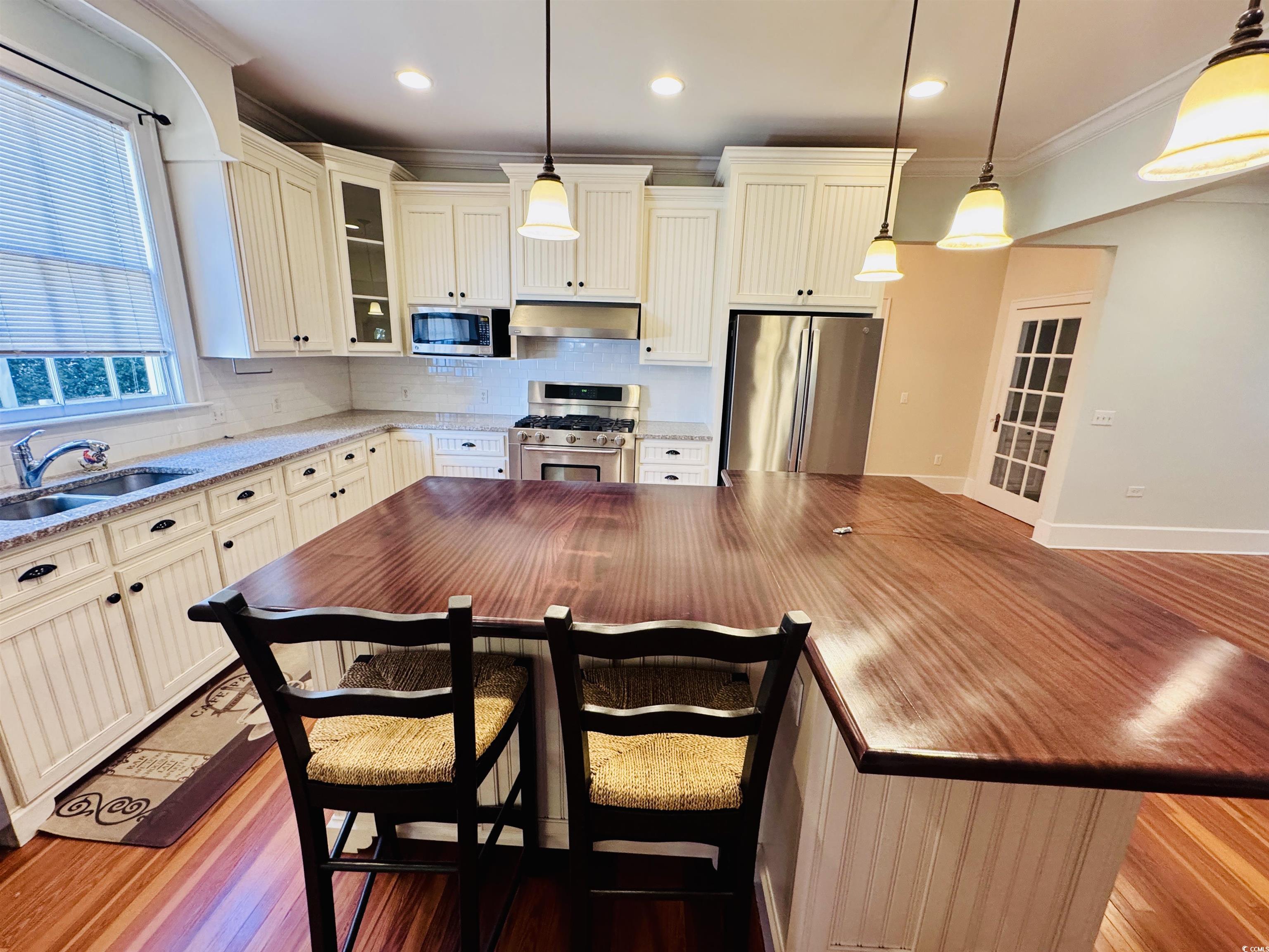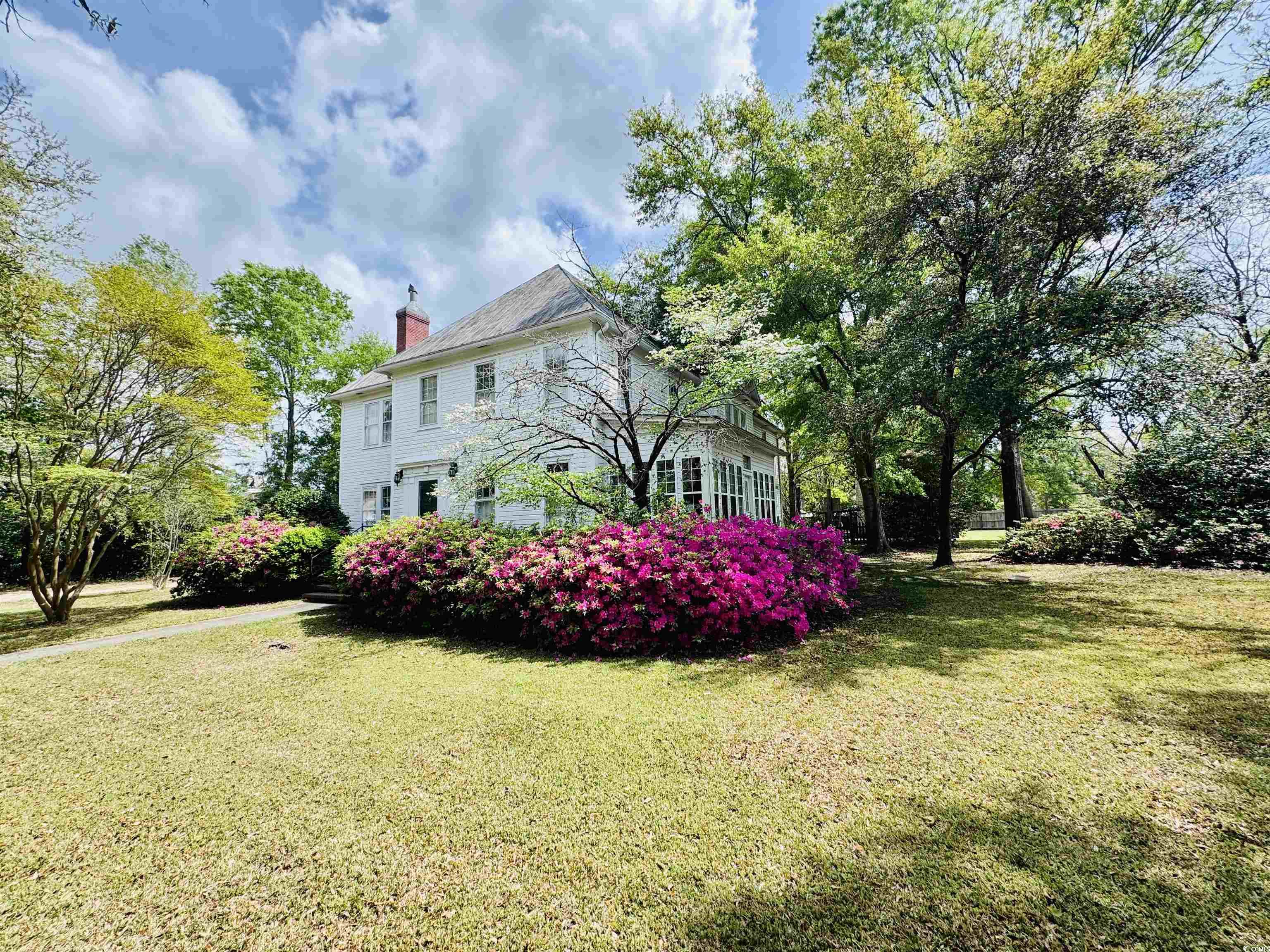 Historic Charm Meets Modern Comfort in Andrews, SC! Step back in time with this beautifully remodeled 1920s home in the heart of Andrews, South Carolina. Immaculately maintained and set on nearly an acre of land across three spacious lots, this six-bedroom, four bath residence blends historic character with modern upgrades for a one-of-a-kind living experience. From the moment you arrive, you'll notice the timeless curb appeal—complete with a newly sealed and repainted metal roof, established landscaping, and a welcoming covered side porch. Inside, rich hardwood floors flow throughout the home, complemented by tongue-and-groove ceilings, elegant crown moulding, and plantation shutters that add a touch of Lowcountry charm. The main level features a fully remodeled primary suite with an en suite bath, offering convenience and style. The updated kitchen is a showpiece, with granite countertops, stainless steel appliances, and a large island perfect for gathering. Custom cabinetry throughout the kitchen, bathrooms, and laundry room adds both function and flair, while built-ins across the home provide thoughtful storage. Six fireplaces each a nod to the home's historic craftsmanship create warmth and character throughout the spacious layout. A bright Carolina room, heated and cooled for year-round enjoyment, offers walls of windows that overlook the private, fenced backyard filled with mature trees and blooming azaleas. Additional highlights include a walk-up attic for storage, two brand-new HVAC units, and a detached shed. The property also includes a garage apartment that can be restored and refinished, opening the door to added rental income or expanded living space. This property combines the best of historic Southern architecture with modern updates, creating a home that is both timeless and move-in ready. With six bedrooms, four full bathrooms, and nearly an acre of landscaped grounds, this is a rare opportunity to own a piece of Andrews history while enjoying today's comforts.