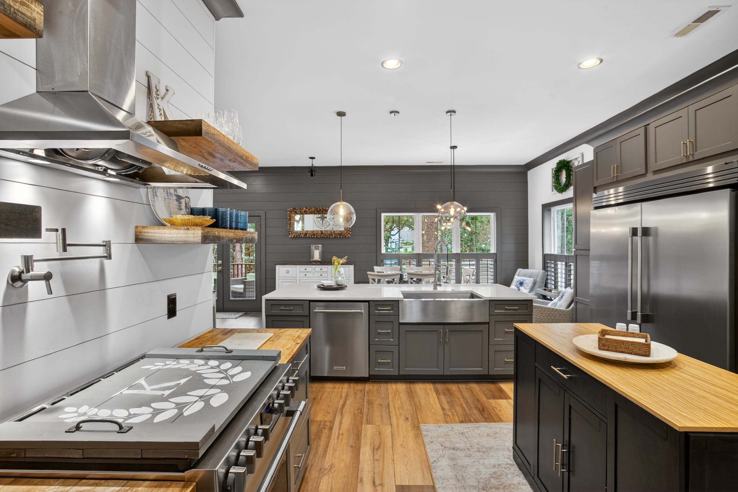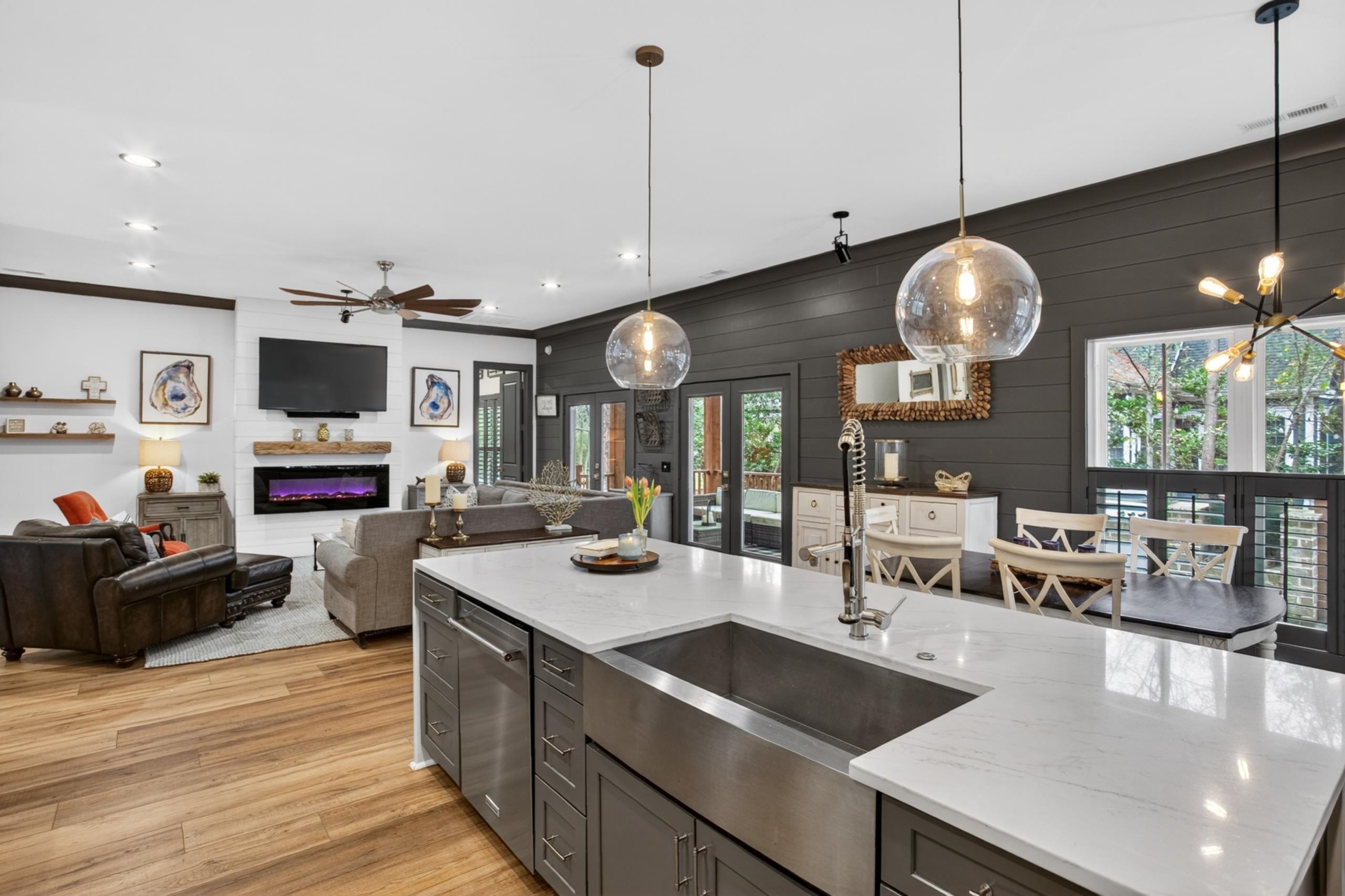 Welcome home to true Southern living at the beach. This stunning Low Country–style residence, built in 2020, showcases exceptional craftsmanship and an array of impressive upgrades throughout. Offering 4 bedrooms and 3.5 bathrooms, the home features a beautifully designed kitchen with quartz countertops highlighted by a waterfall edge, soft-close cabinetry, a HUGE commercial-size refrigerator, natural gas cooking, and 9" wide LVP flooring with no carpet anywhere. The spacious layout includes a dining room, breakfast nook, laundry room, Primary bedroom with two walk-in closets, and abundant windows that fill the home with natural light from wall to wall. Additional interior enhancements include two mounted electric fireplaces and a tankless hot water system. Outdoors, enjoy a built-in kitchen with a built-in BBQ grill, perfect for entertaining. The fenced-in backyard sits on just under half an acre and borders a community common area, creating a rare sense of openness and privacy. Extra-wide garage doors add convenience and functionality. The low HOA fee provides access to a gated amenity center offering a beautiful community pool, half-court basketball area, playground, clubhouse, walking trails through the nature preserve, and a boat dock and landing on Collins Creek, which leads to the Intracoastal Waterway. On-site boat storage is available for an additional fee. Centrally located in the heart of Murrells Inlet, this home is close to boutique shops, grocery stores, outdoor markets, hospitals, Brookgreen Gardens, Huntington Beach State Park, and just 15 minutes from Pawleys Island. A short drive places you on the warm sandy beaches of the Atlantic Ocean. This exceptional property is a true gem—schedule your showing today.