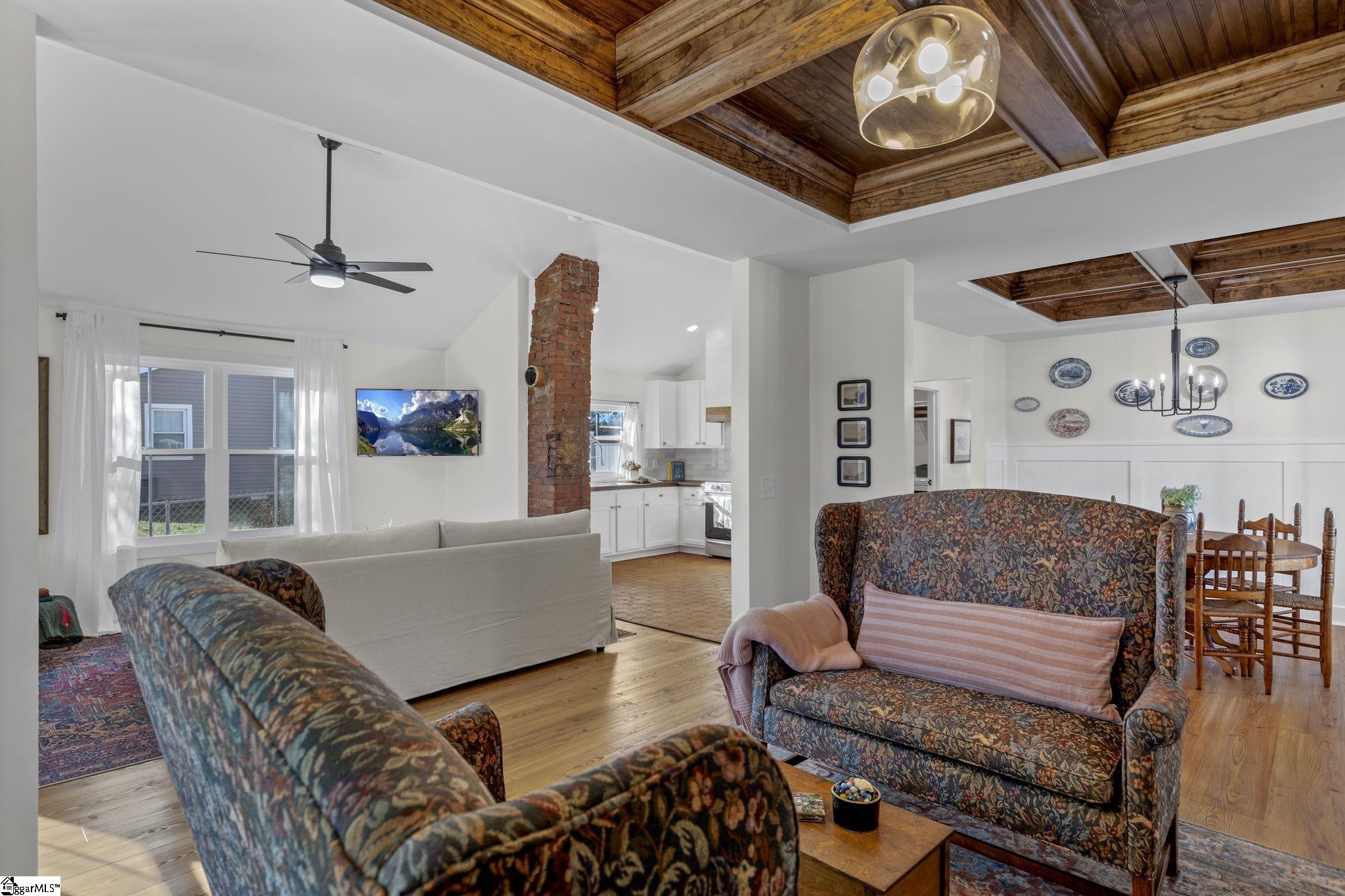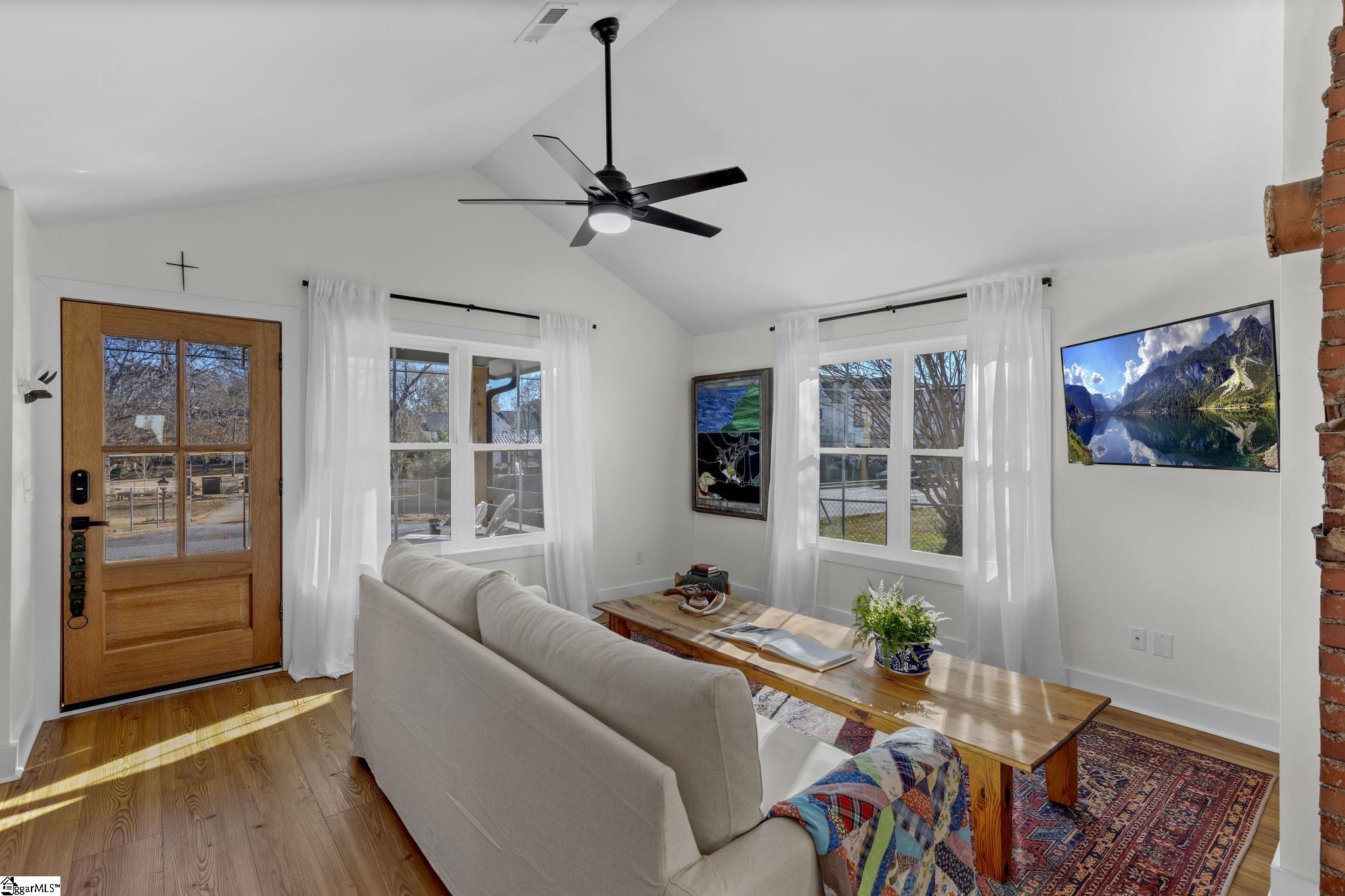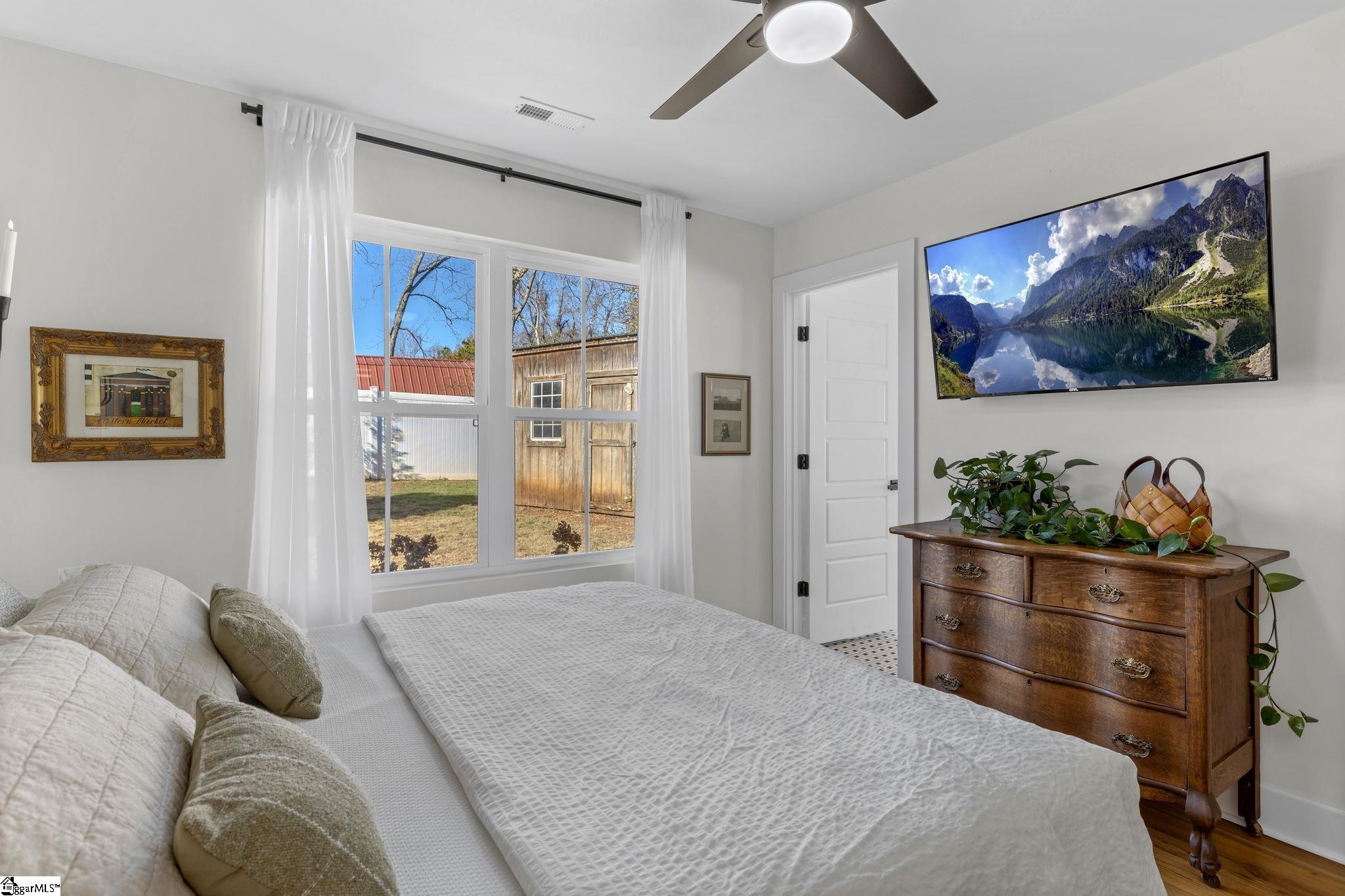 Unique opportunity-City of Travelers Rest-100 yards to the Swamp Rabbit Walking and Biking Trail-3 bedroom-2 bath home- No HOA-Completely remodeled from the studs to the finished product-timeless character with quality craftsmanship-thoughtfully designed for everyday living with comfort and sophistication for your own personal retreat-From the moment you enter from the spacious front porch, you receive a warm welcome with a 60 inch linear gas fireplace and an abundance of natural lighting throughout this open concept craftsman style vaulted and coffered ceiling home-This 3 bedroom, 2 bath home has gorgeous heart of pine wood flooring with tile in the kitchen and bathrooms-The kitchen boasts custom cabinets, cove edge butcher block countertops, a deep cast iron kitchen sink, all new appliances that were installed in 2022 at the completion of this remolded home plus a new addition of over 800 square feet! A convenient walk-in laundry room-Master bedroom with ensuite bathroom featuring an 8 foot walk-in shower, a 6 foot soaking tub and double sinks plus a walk-in closet! As you exit the back door onto the patio you enter a level private backyard that is enclosed with a privacy fence and a storage building. This thoughtfully designed home makes entertaining a pleasure and family living relaxing! The entire property has a full yard sprinkler system! A 24 foot by 24 high ceiling detached metal garage with a finished cement floor, 2 10x8 feet garage doors and an access door sits beside this amazing home! The owner installed a French drain around this garage in order that your valuables would be protected from the any water intrusion that might happen during an extremely heavy rain. The outer areas have been freshly painted with Sherwin Williams paint and the interior has been freshly painted with quality Benjamin Moore paint! Solar panels have been installed for energy efficiency that have been completely paid in full! You will be just steps away from cafes and restaurants, retail galleries and shops, medical and dental offices plus an emergency hospital along with beauty salons and spas!! For outdoor enthusiast, numerous lakes, state and county parks, hiking trails and outdoor activities abound! The NC Mountains are just a short scenic drive to the north and the popular downtown Greenville area a short 15 minute drive! 5 Tolar Road IS NOT a drive-by!! Make an appointment to tour this unbelievable home before someone else makes 5 Tolar Road their new address!!!