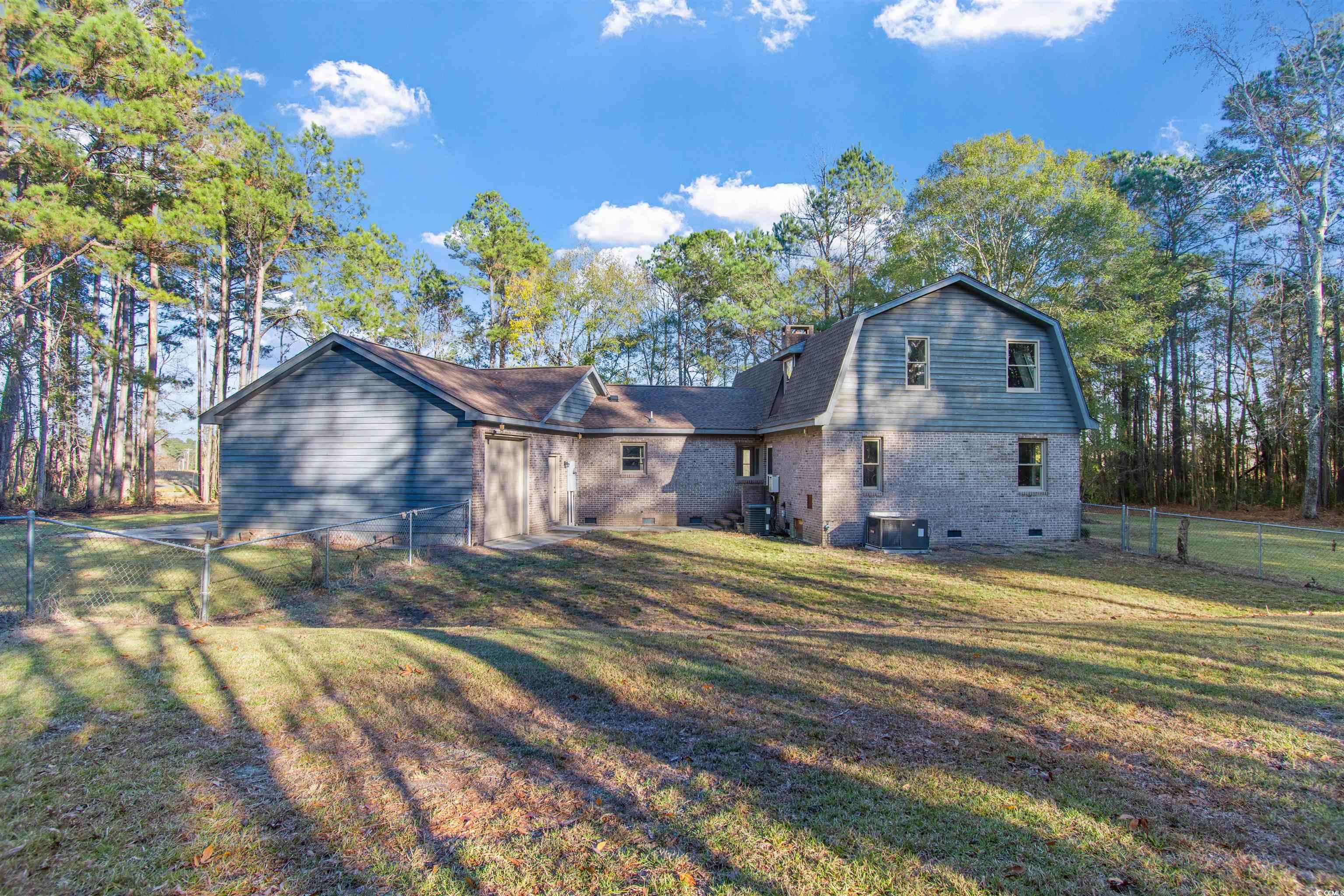 If you want privacy; this is your place! Nestled just behind trees, is where you'll find this home. Newly updated - looks brand new. Roof is new - 2024, HVACs have been replaced -downstairs 2024 and upstairs 2025. Plenty of living space on the main level and includes the primary bedroom with ensuite bath! Upstairs consists of 2 large bedrooms with a large bath separating the bedrooms but easily accessible by each, with shower and separate tub! The home is handicap accessible with a ramp for entry from the garage area as well as, other features inside the home. The 3-car garage makes it easy to not only park your vehicles but consists of a drop-down bay to keep your vehicles clean along with a drive-thru feature for ease and access. Back yard is fenced, floors are hardwood, kitchen cabinets are custom built, and appliances are brand new. This home has excellent storage with every inch utilized for your convenience and ease of living. Last but not least, this home sits on 2.47 acres. Located minutes from the SC beaches, this immaculate, quiet oasis, is just waiting for you!